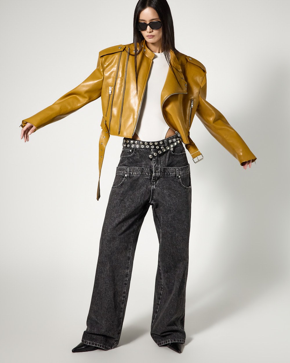 Denim (jeans, coated jeans) and other dark-dyed garments may experience color fading or transfer. Please take extra care before the first wash and while wearing them.