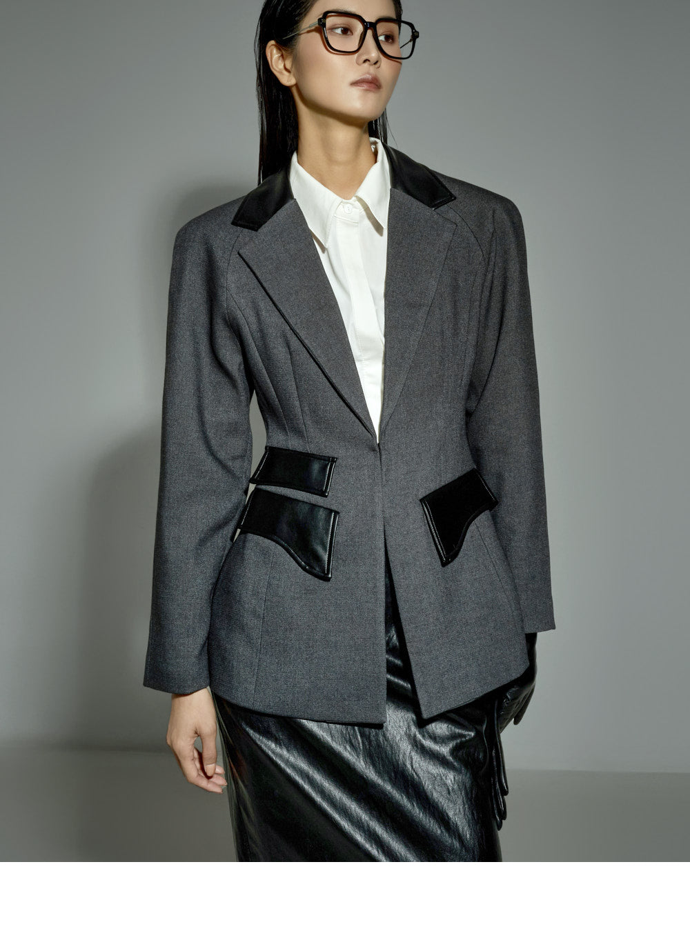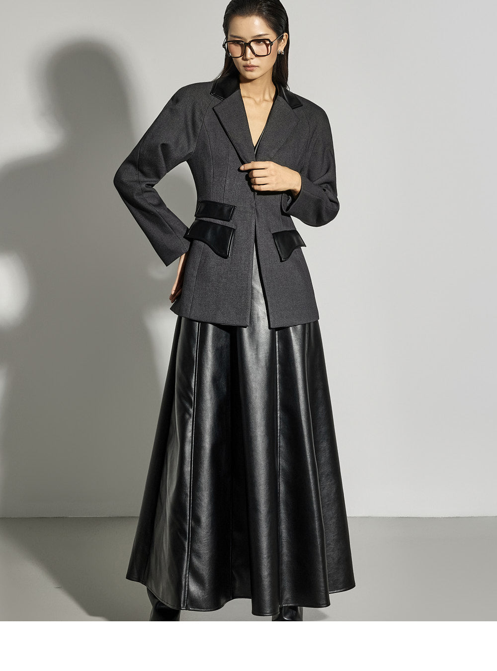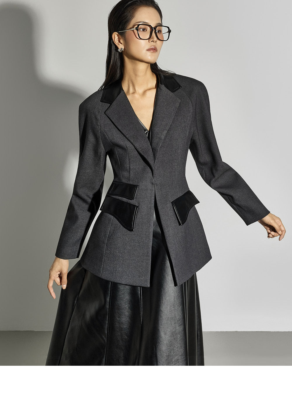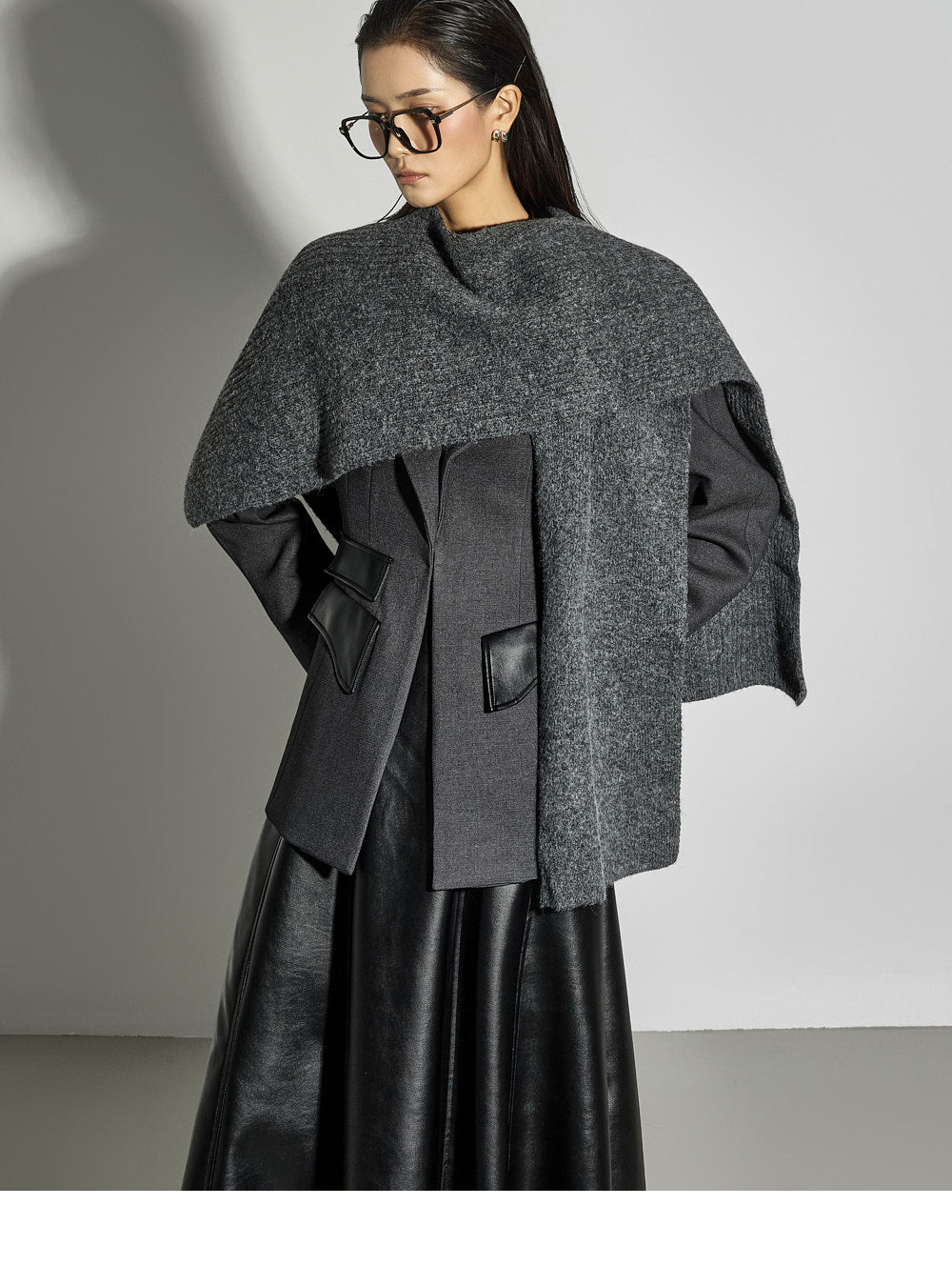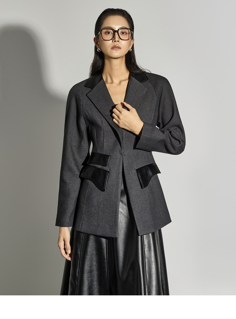 Leather details on the pockets and neckline add a sophisticated touch.