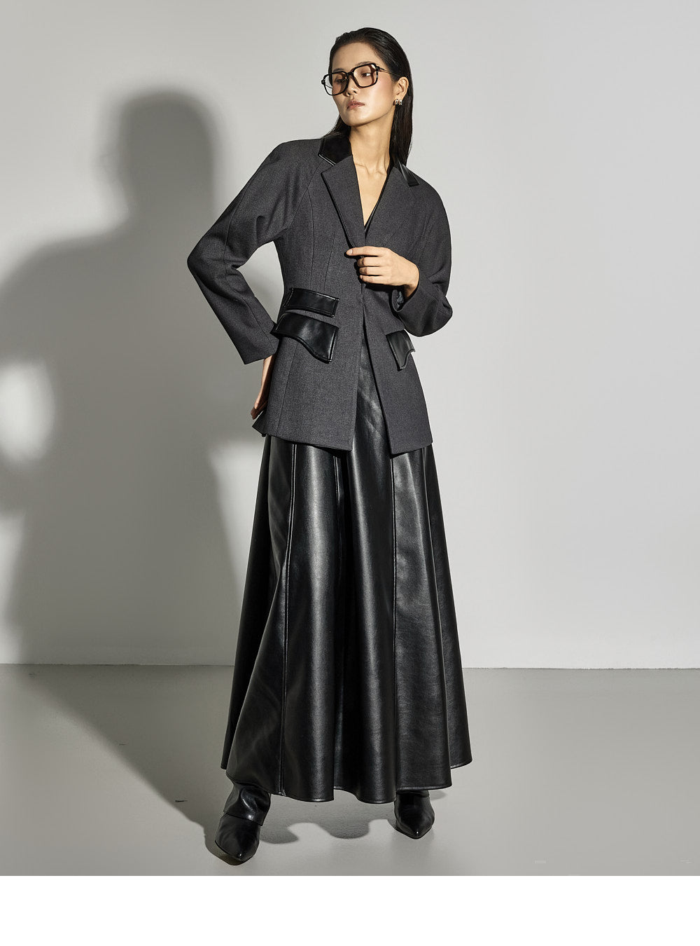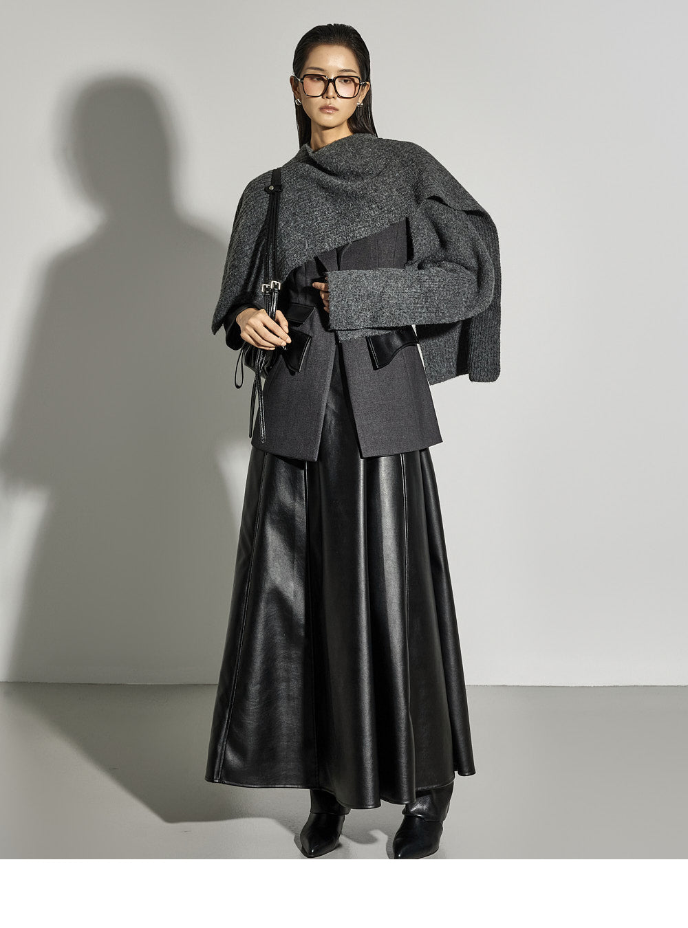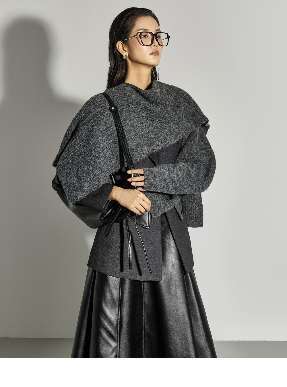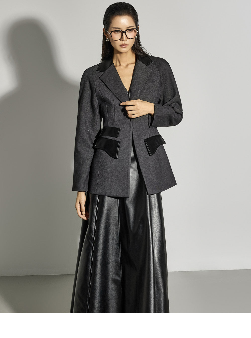Leather details on the pockets and neckline add a sophisticated touch.