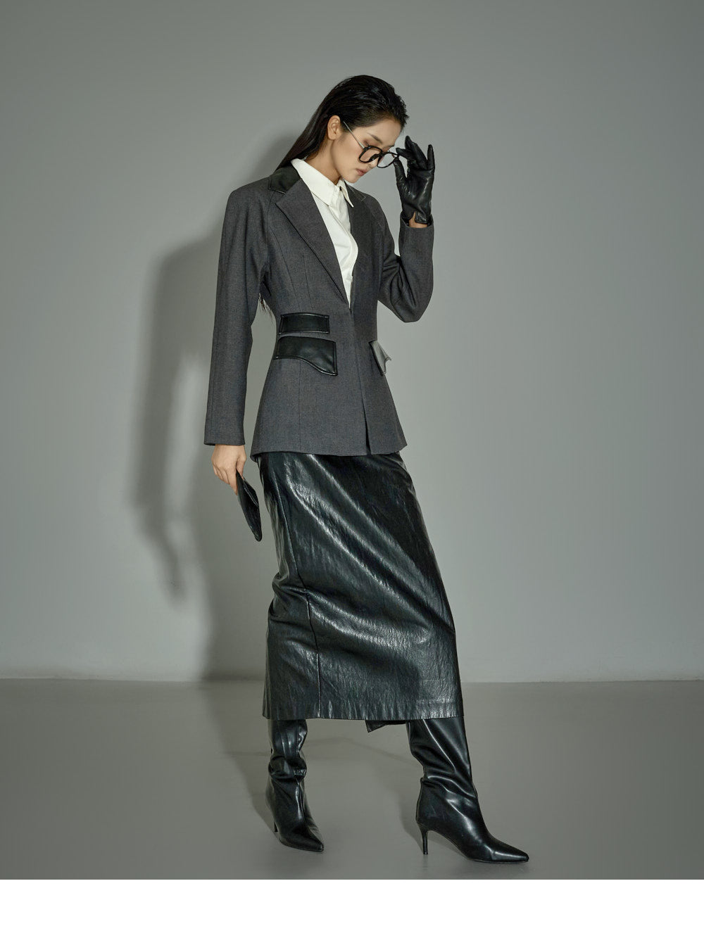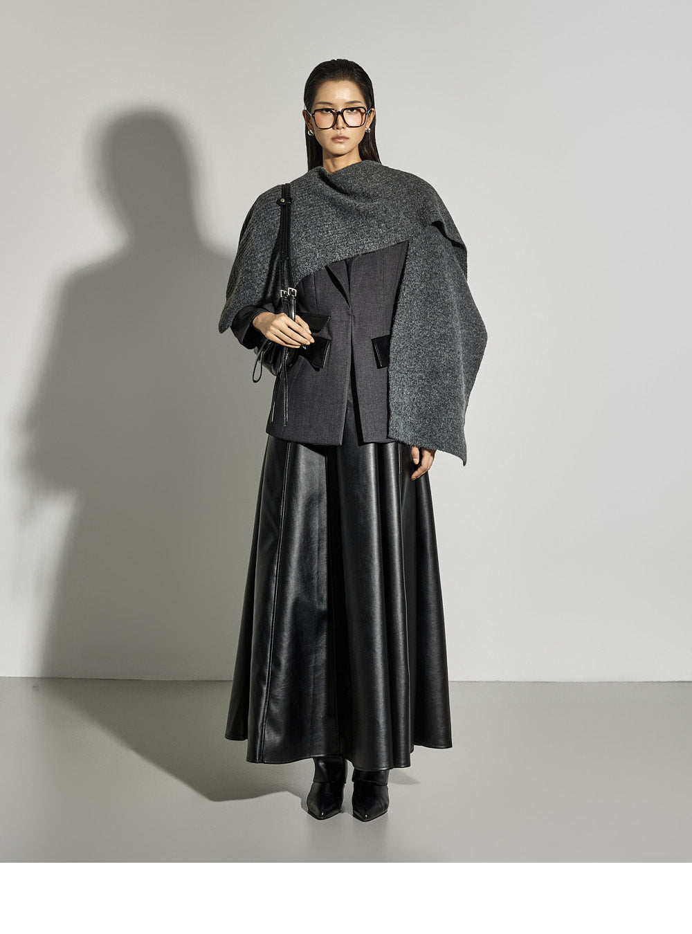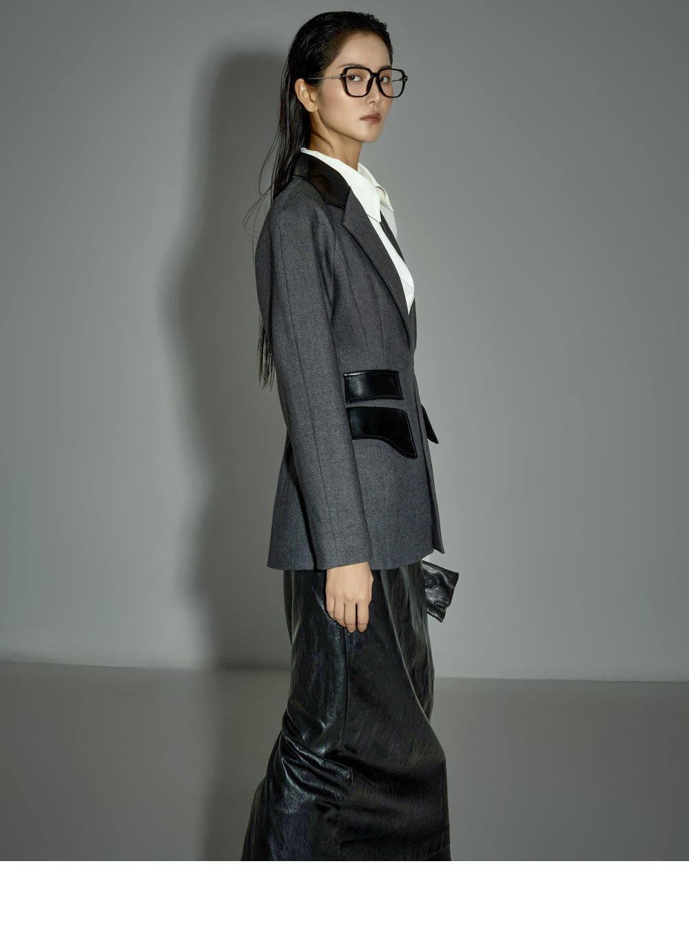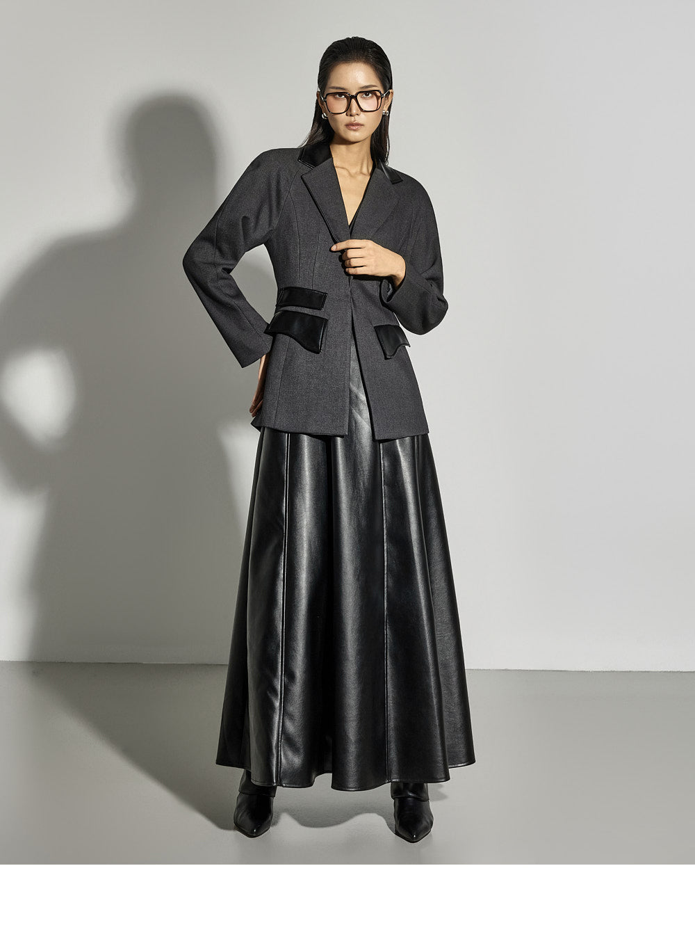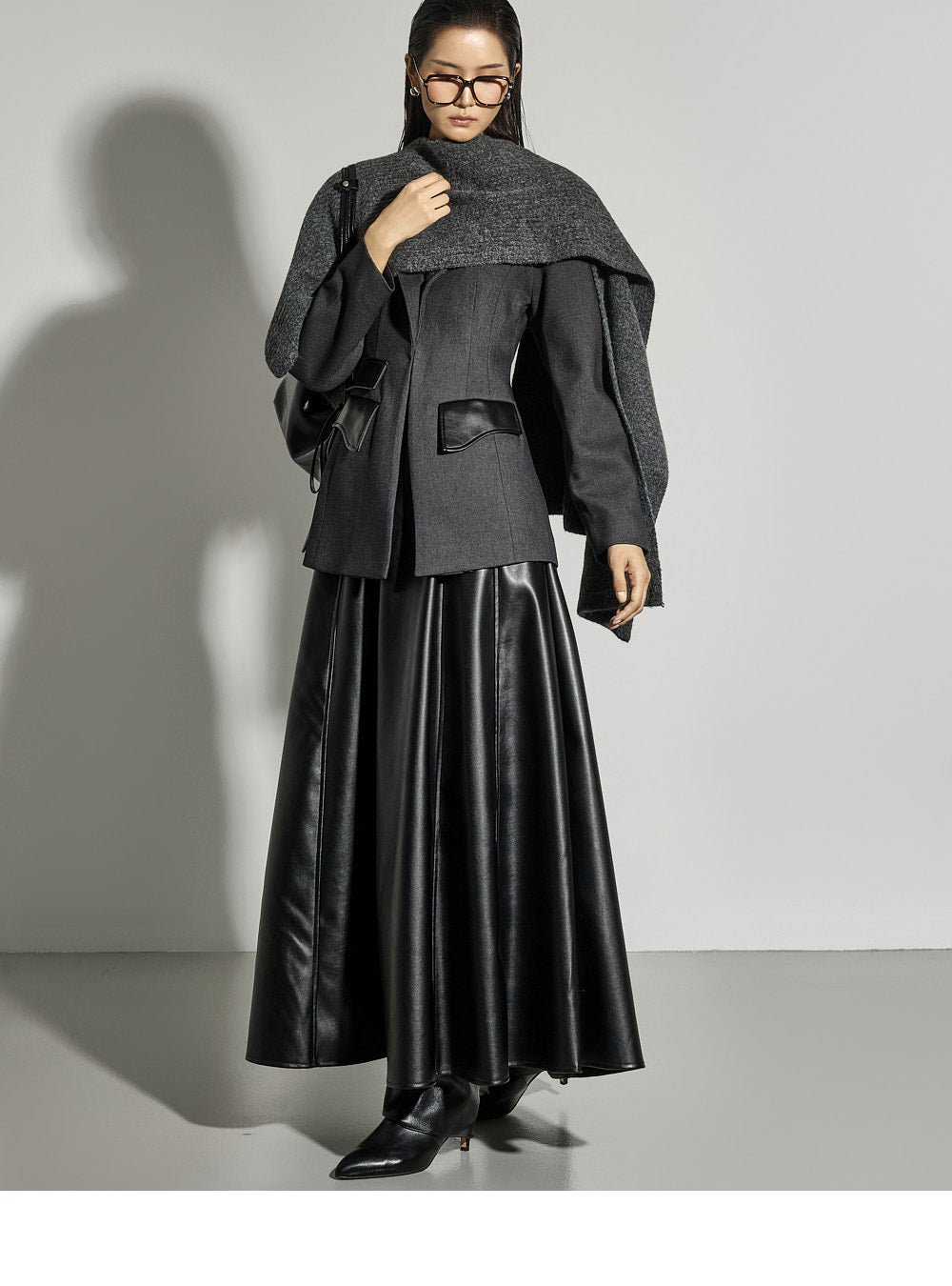 Leather details on the pockets and neckline add a sophisticated touch.
