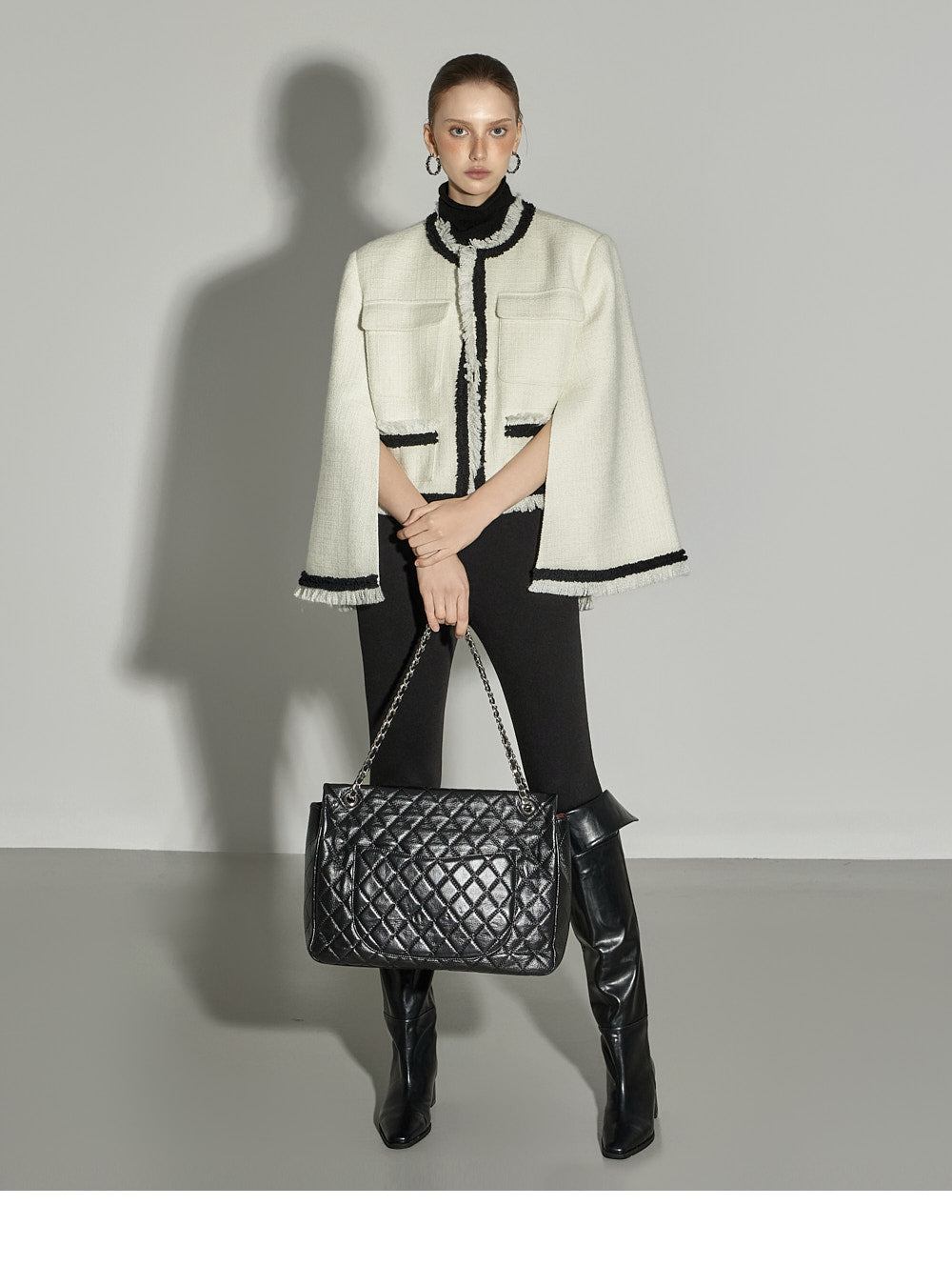 Model is 174cm tall and wearing size ONE, color IVORY.