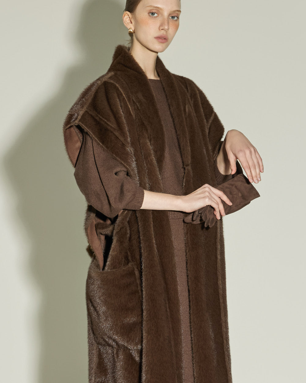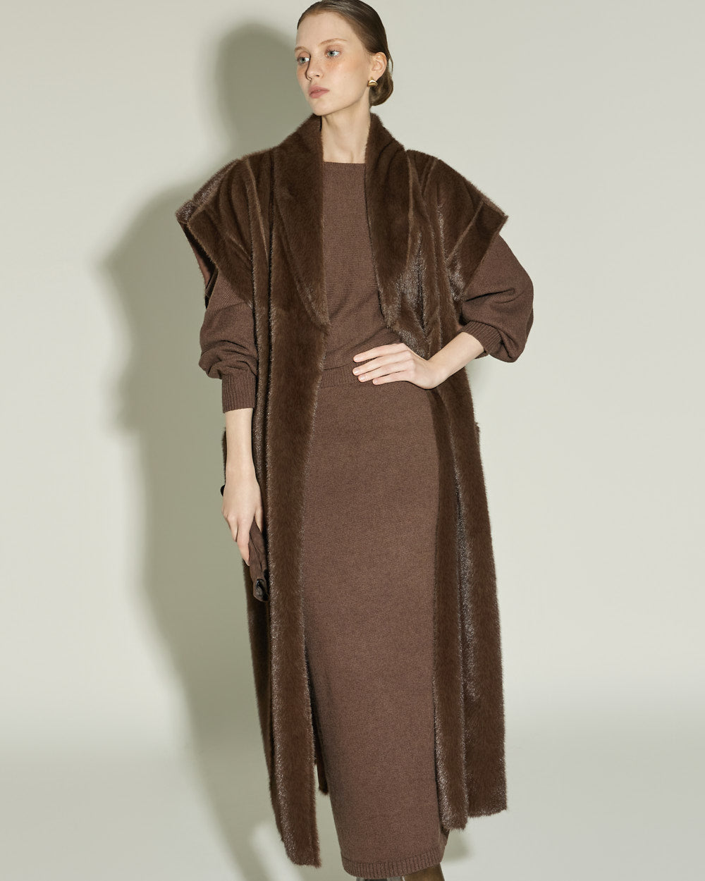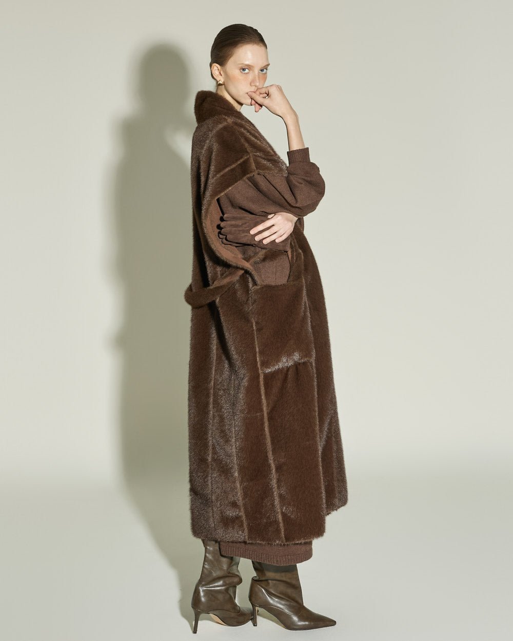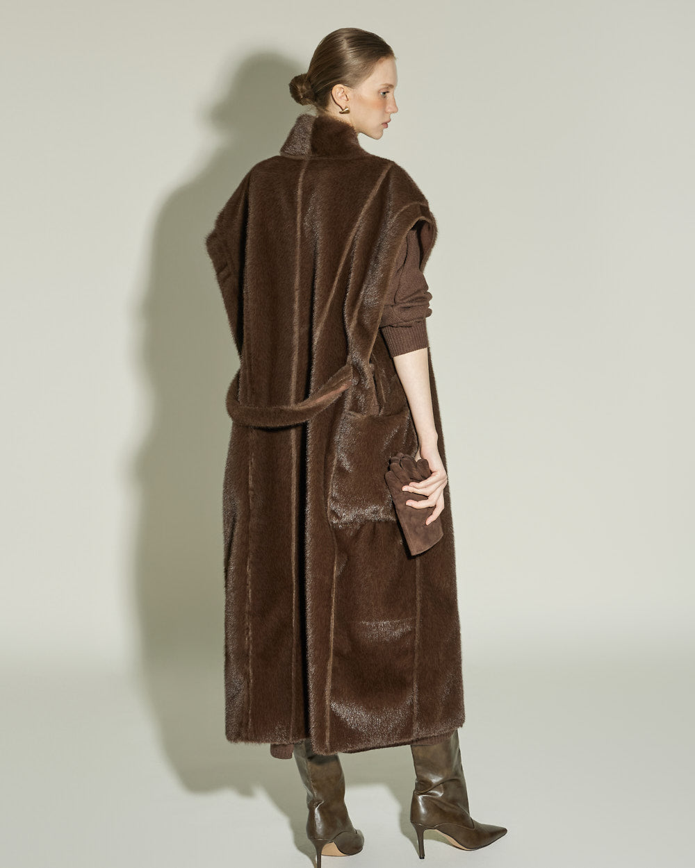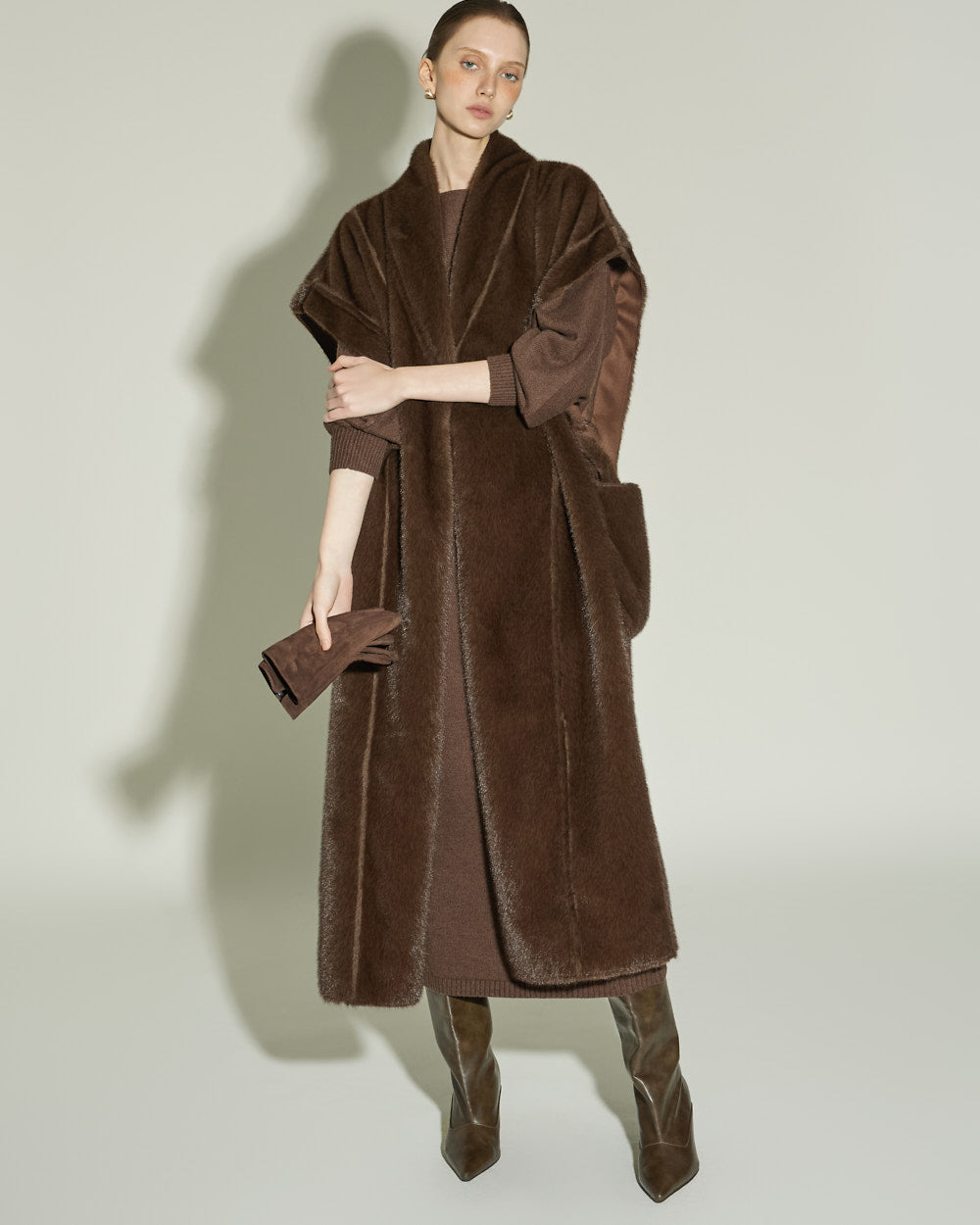 Removing the strap creates a natural yet sophisticated outerwear look,