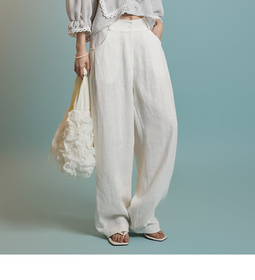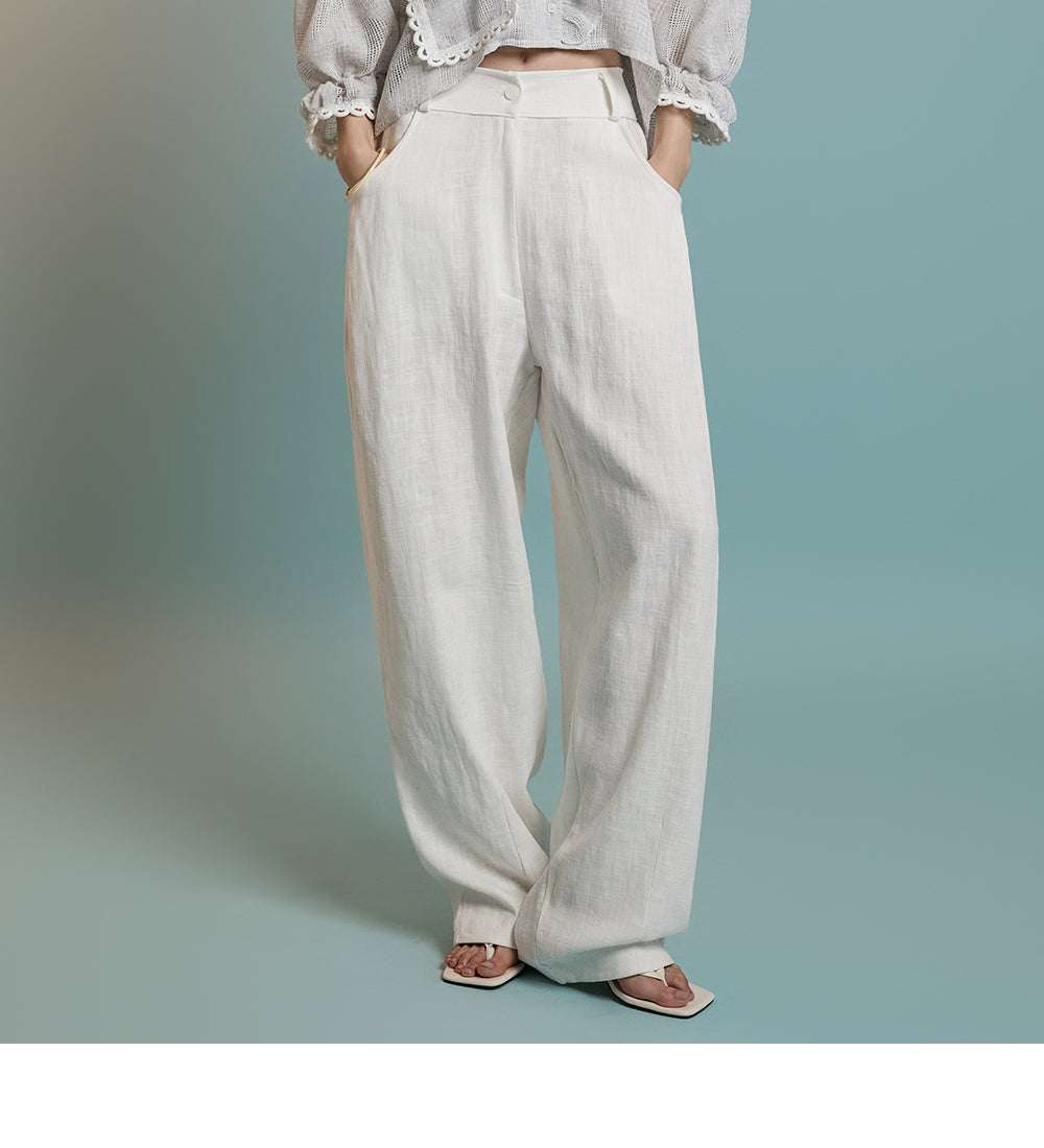 These casual wide-leg pants are made from breathable linen,