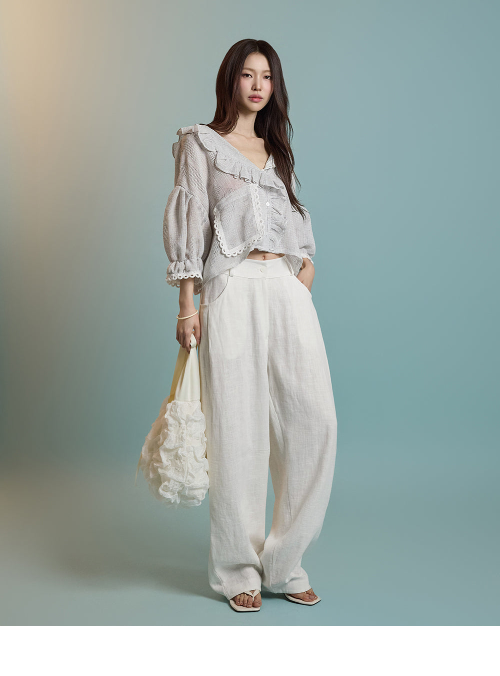Model is 171CM, wearing ONE size in WHITE.