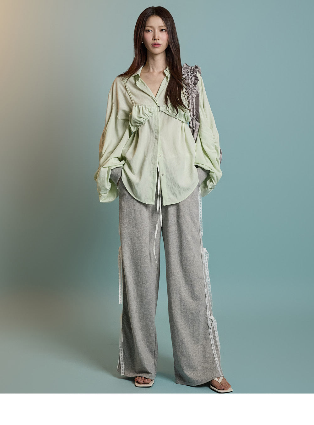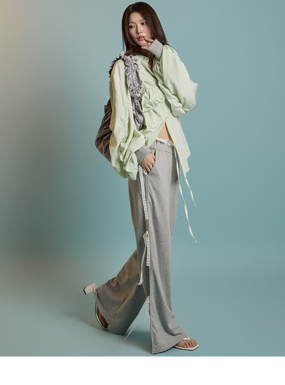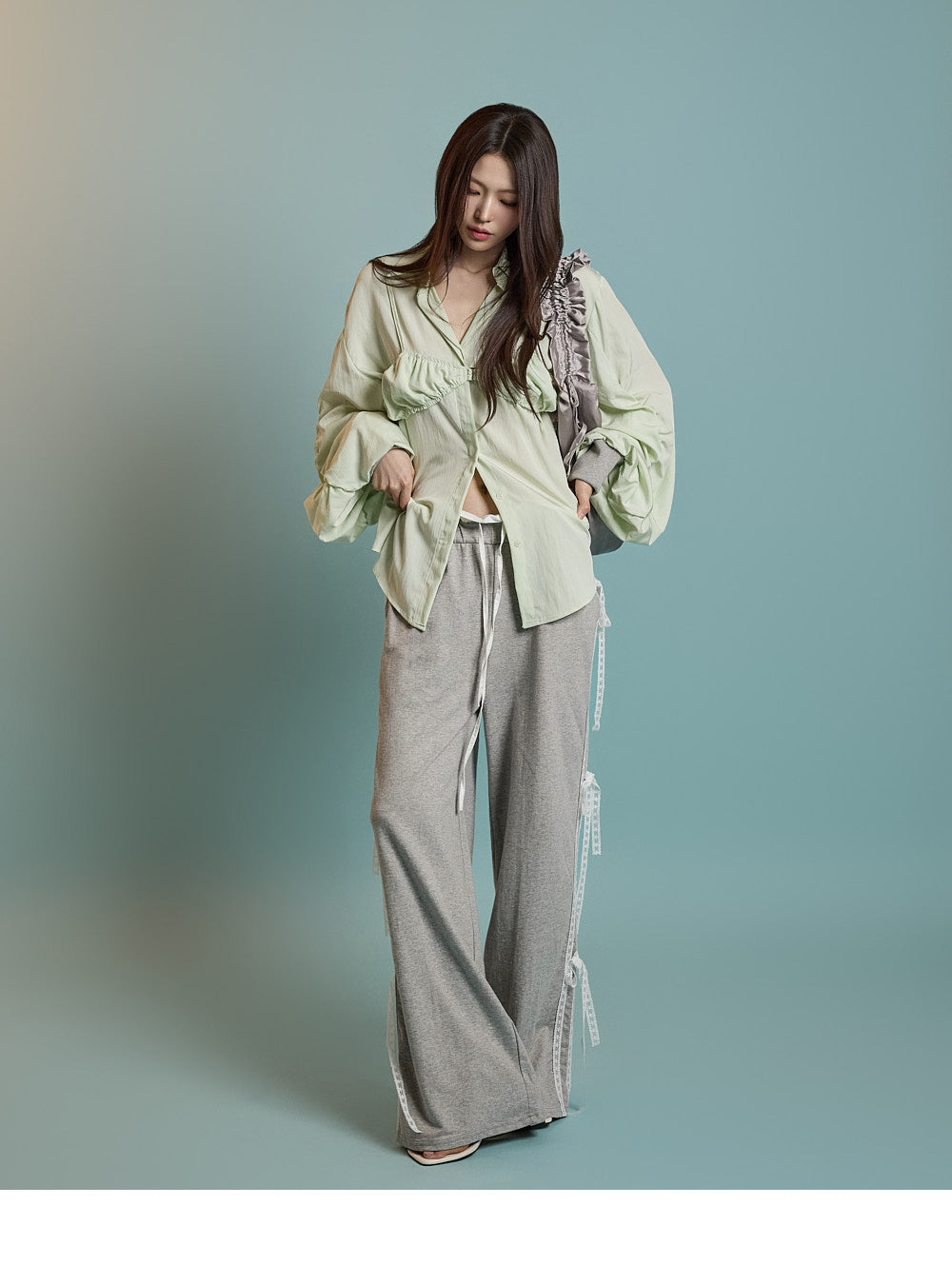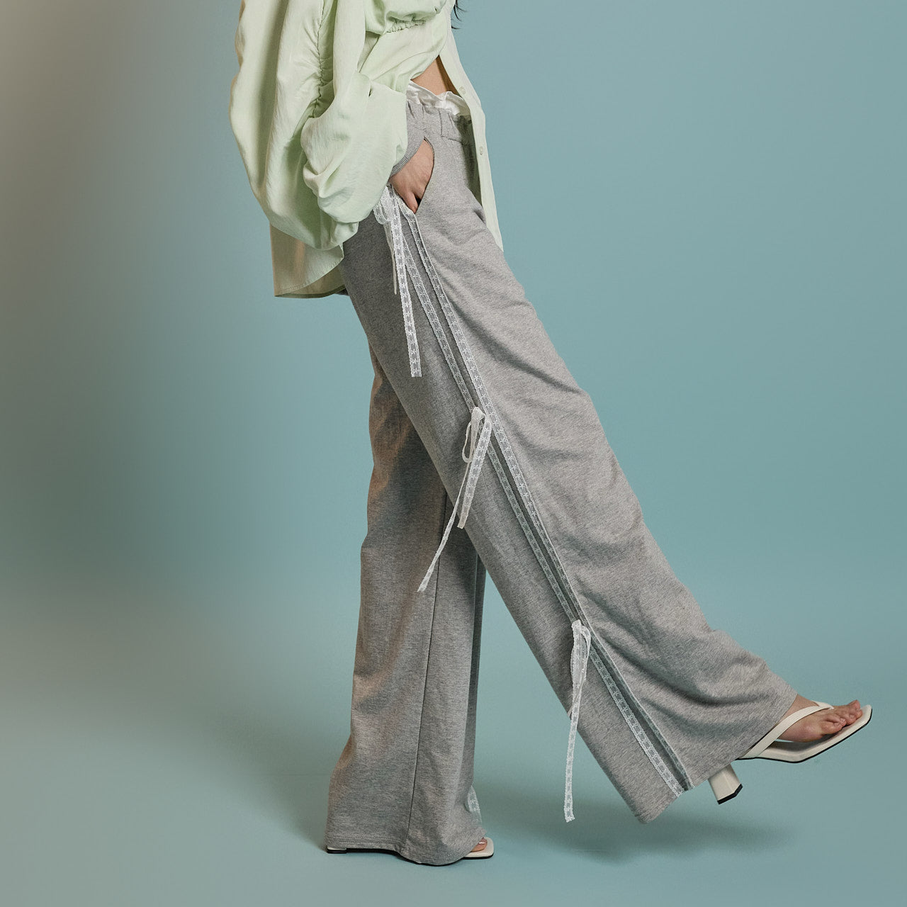 Lace ribbon details on the sides add a unique touch.