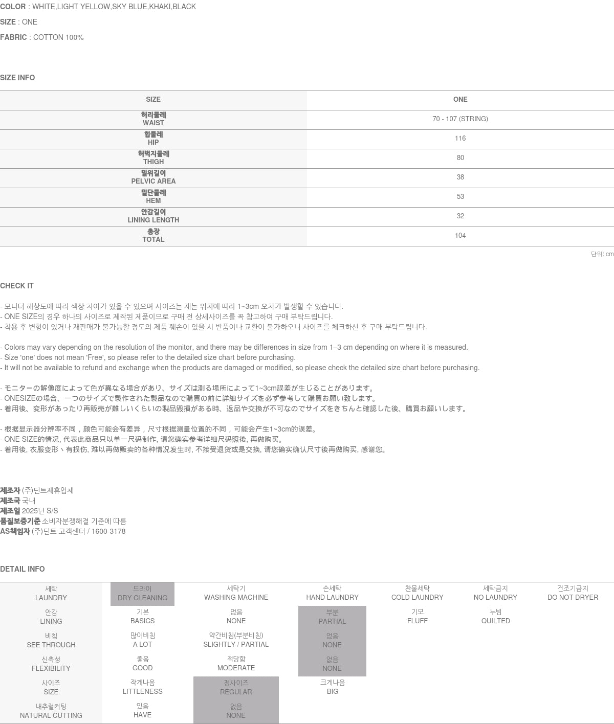 Clothing from DINT Co., Ltd. may become damaged or deformed if machine washed or tumble dried. We strongly recommend following the care instructions provided below.