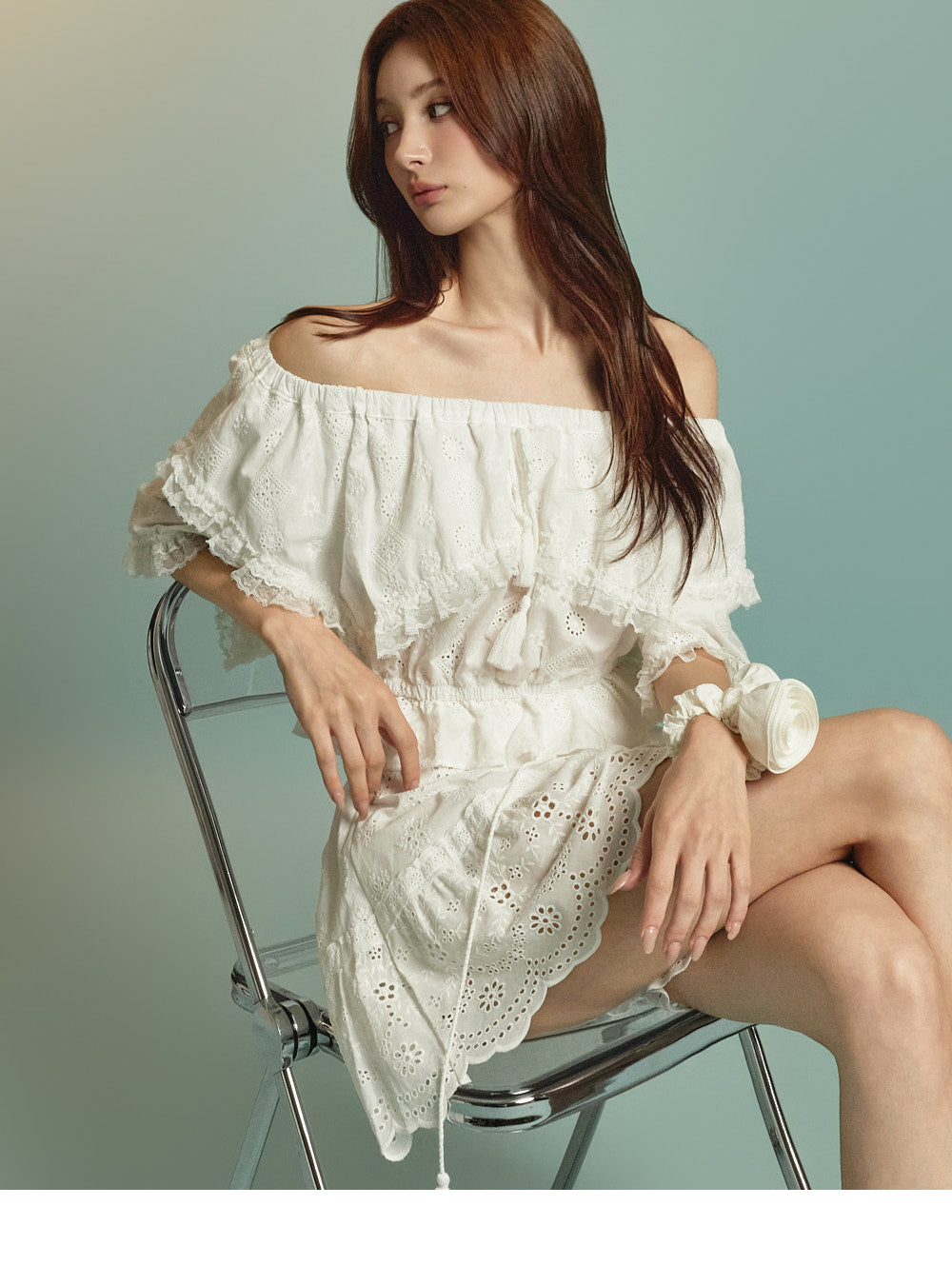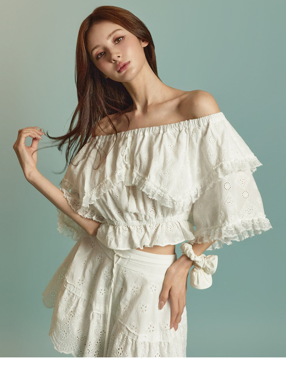 Model is 171cm tall and wears ONE size in WHITE.