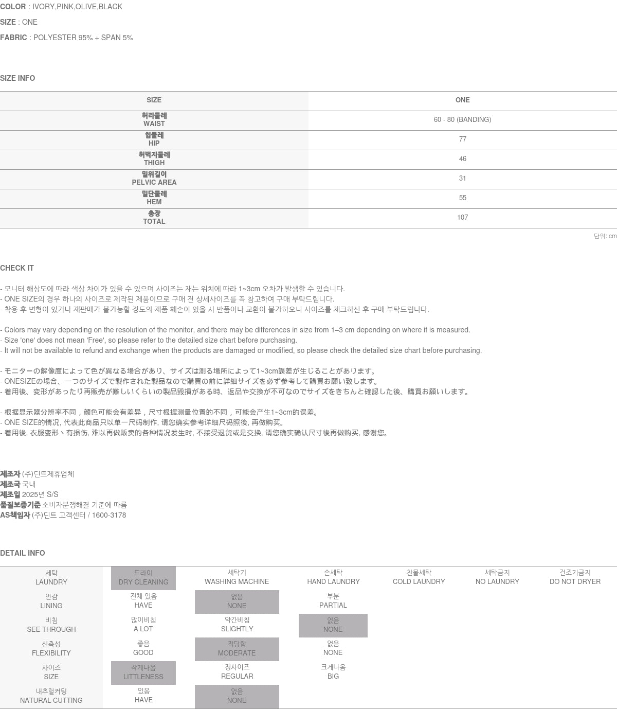 Clothing from DINT Co., Ltd. may become damaged or deformed if machine washed or tumble dried. We strongly recommend following the care instructions provided below.