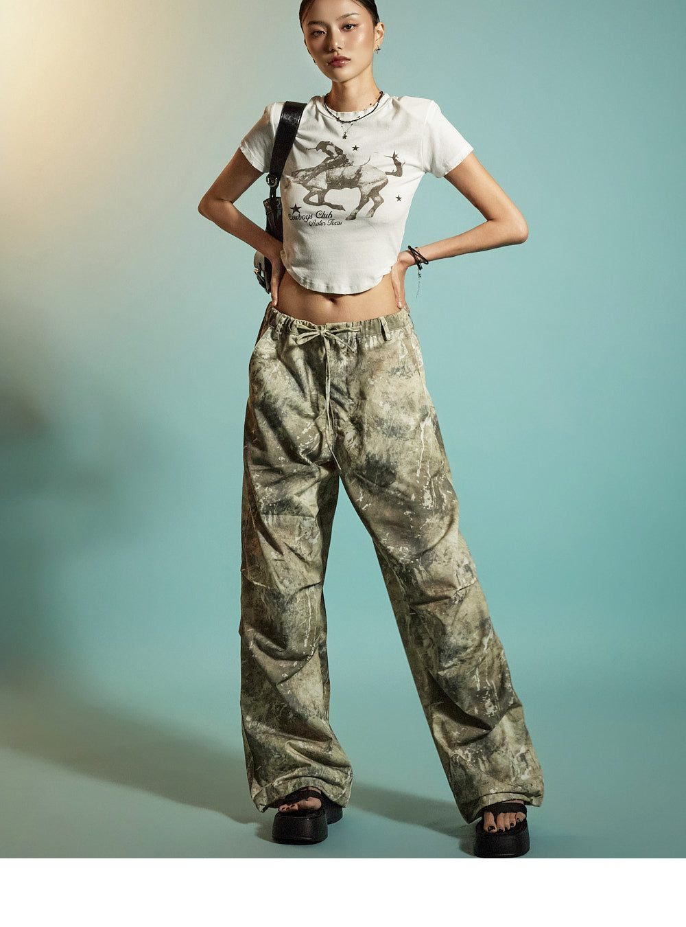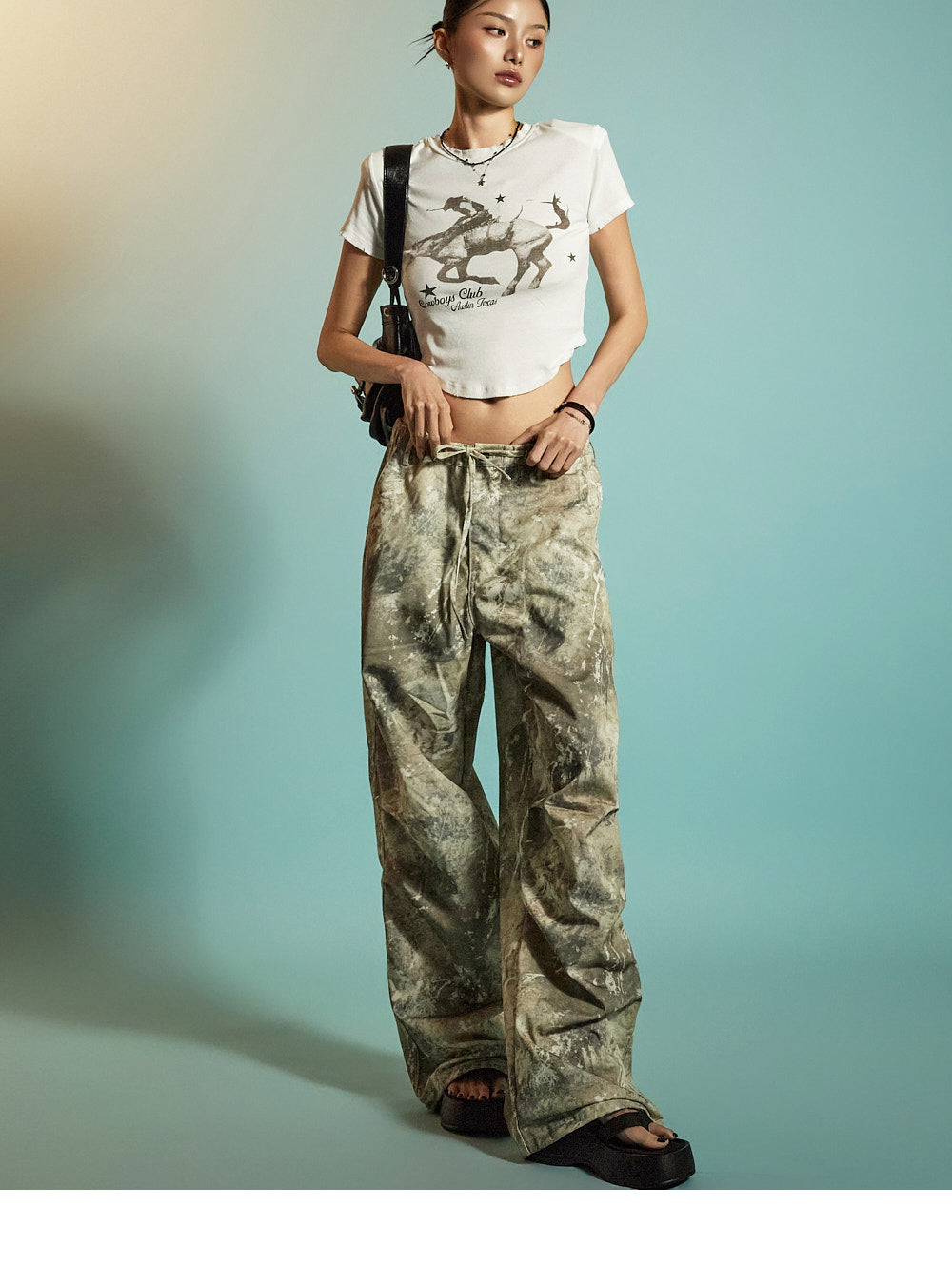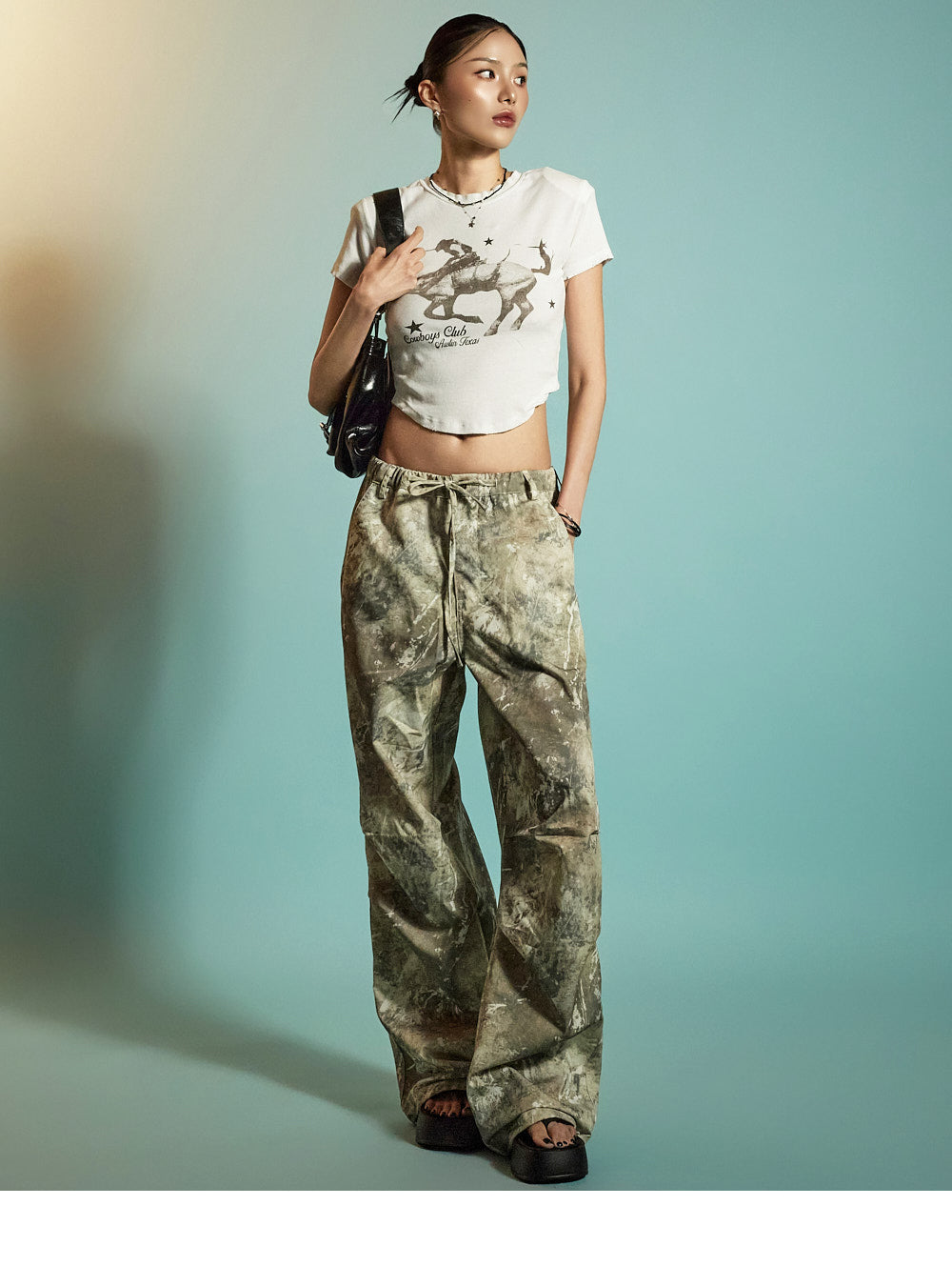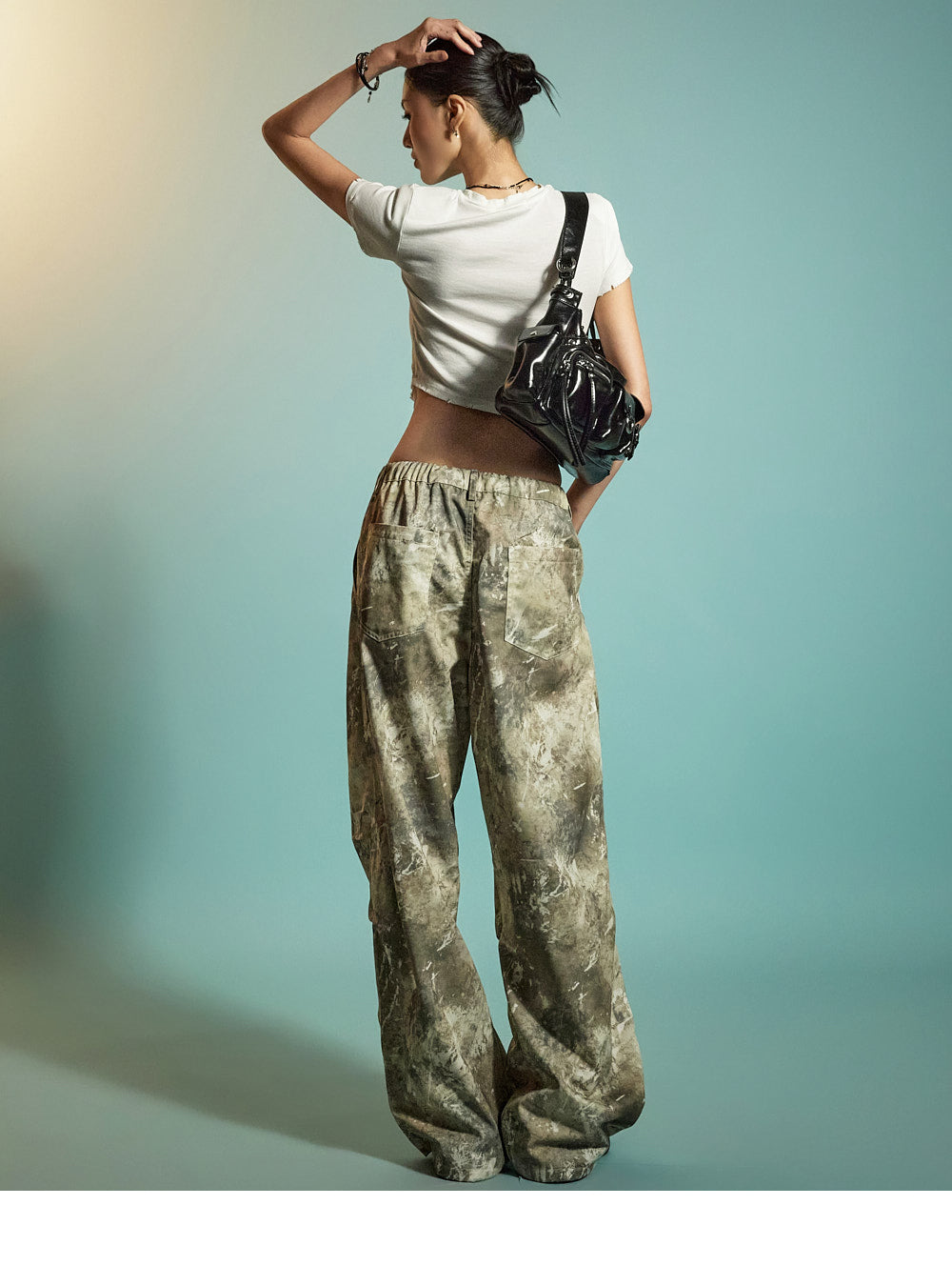 The loose wide-leg silhouette creates a trendy, structured look,