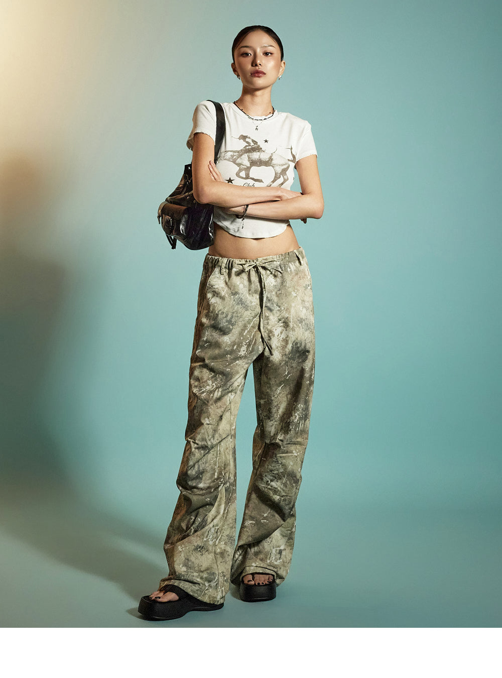 while the elastic waistband with drawstring allows for an adjustable and secure fit.