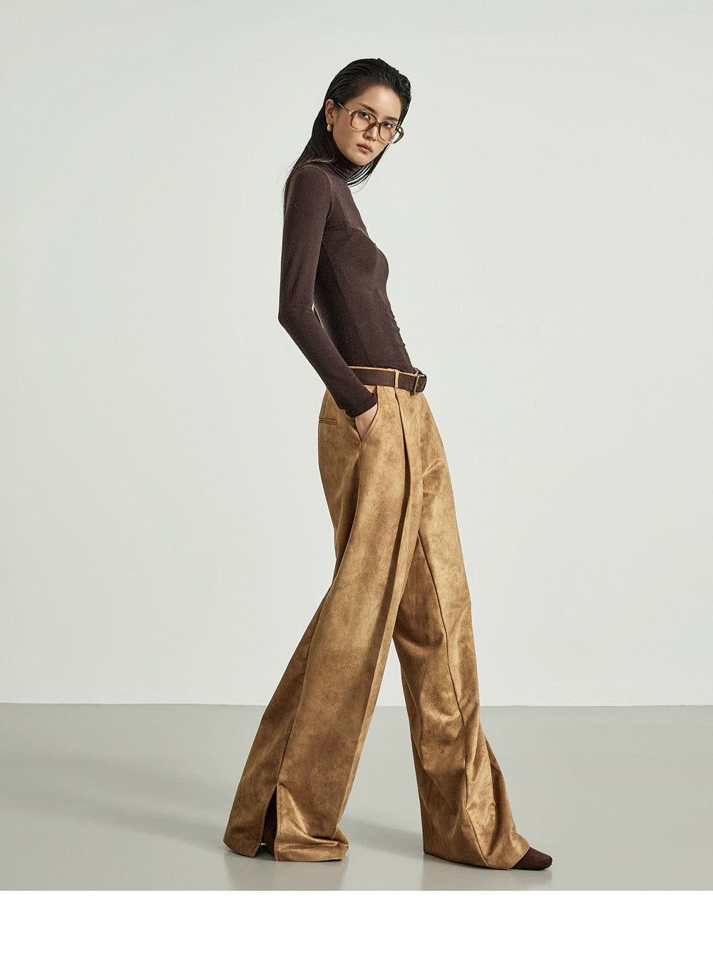 and the front pin tucks and side slits complete the sophisticated silhouette.