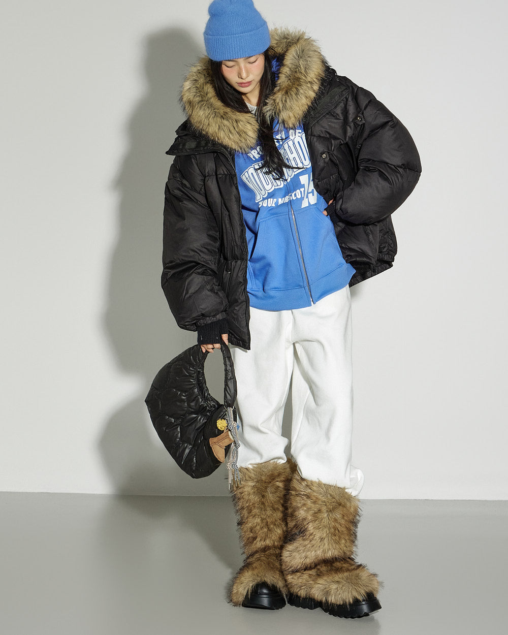 Denim (jeans, coated jeans) and other dark-dyed garments may experience color fading or transfer. Please take extra care before the first wash and while wearing them.