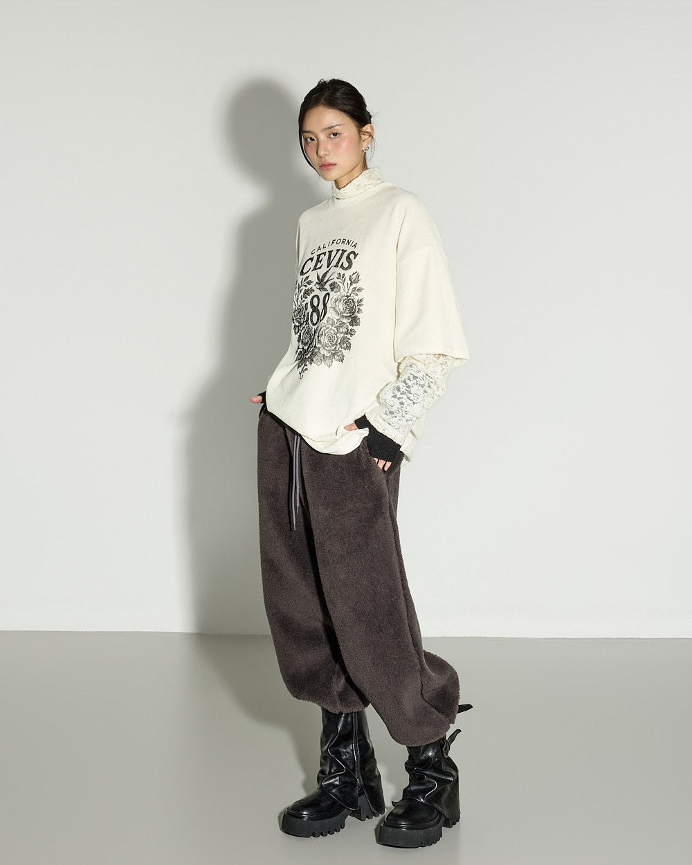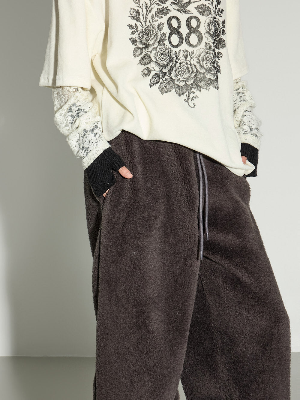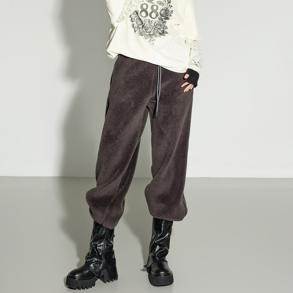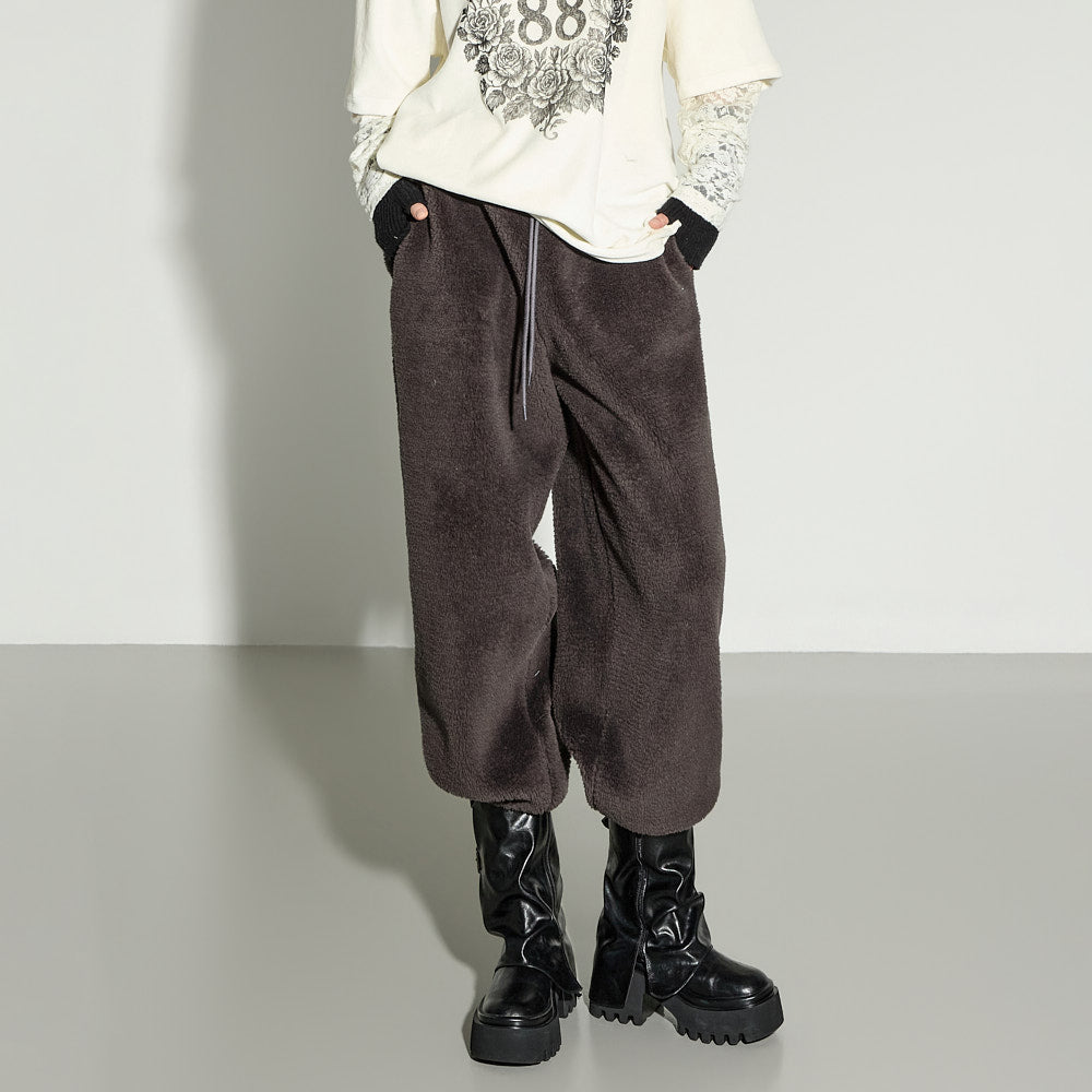 A casual boucle training pants with a relaxed mood.