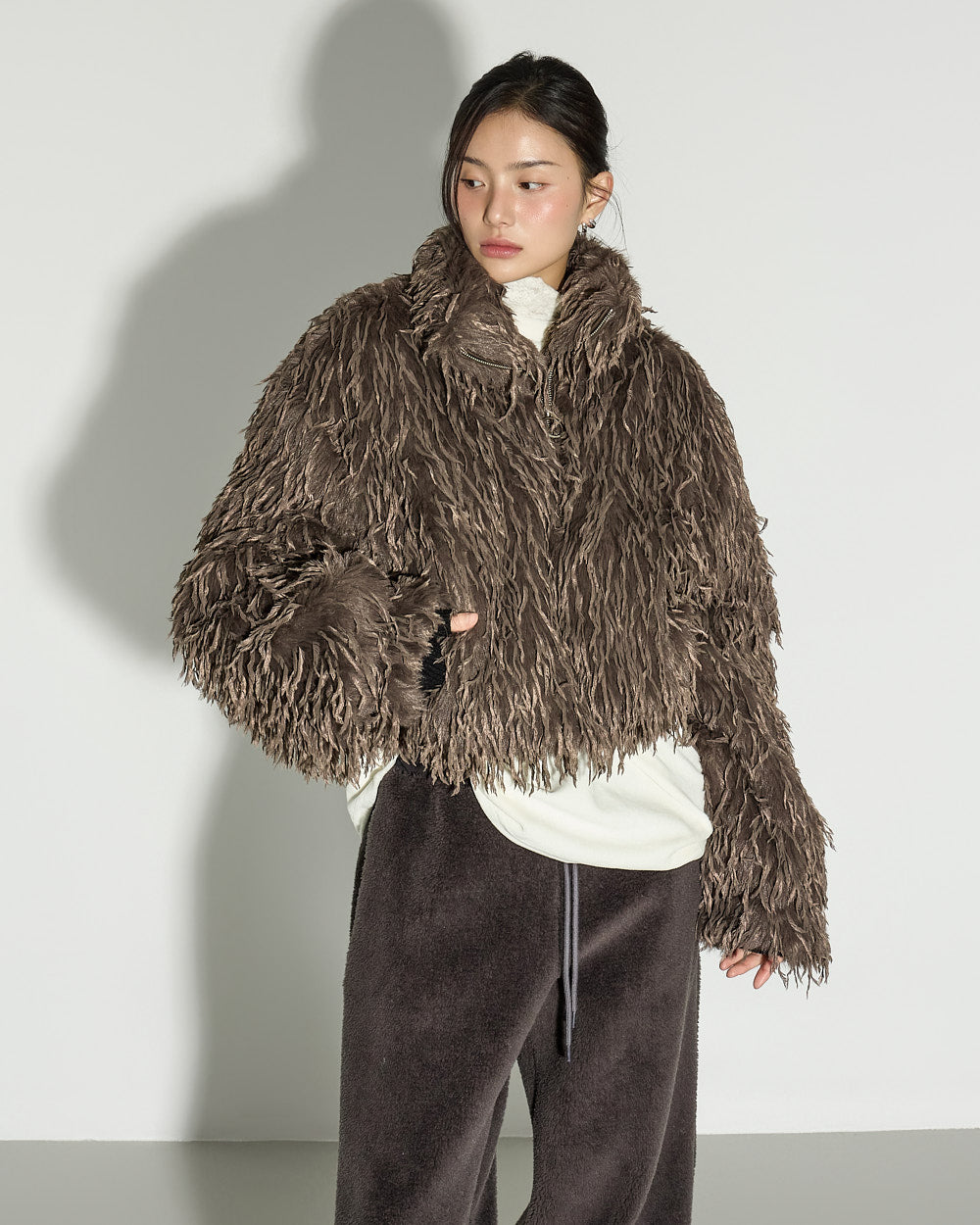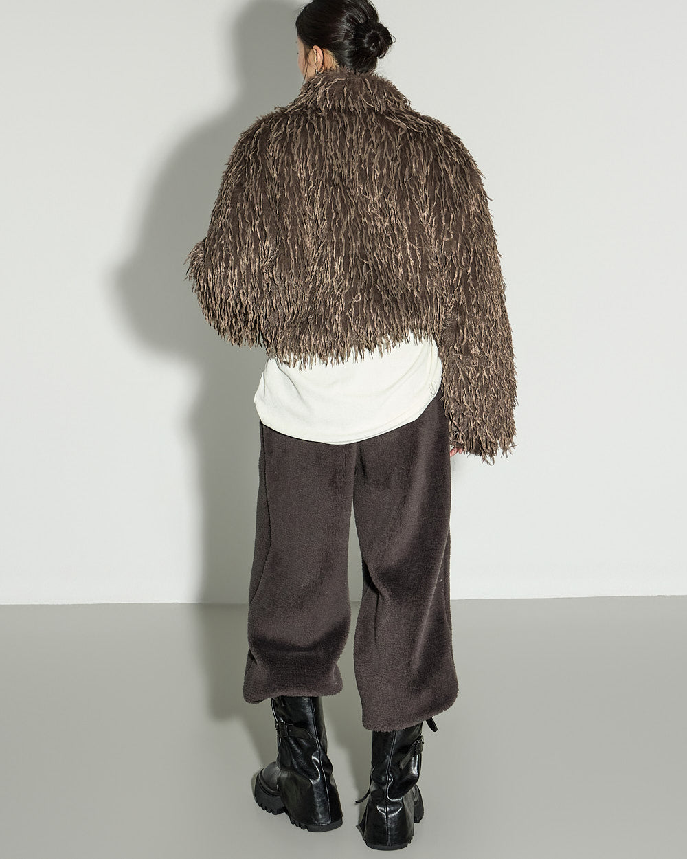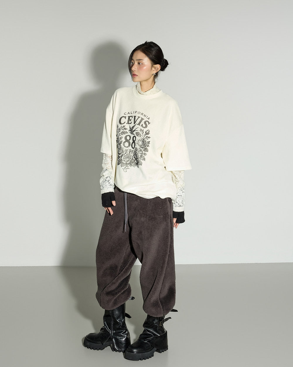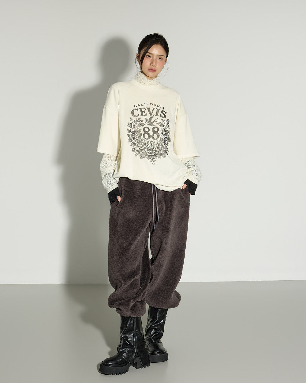 A casual boucle training pants with a relaxed mood.