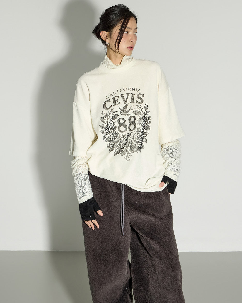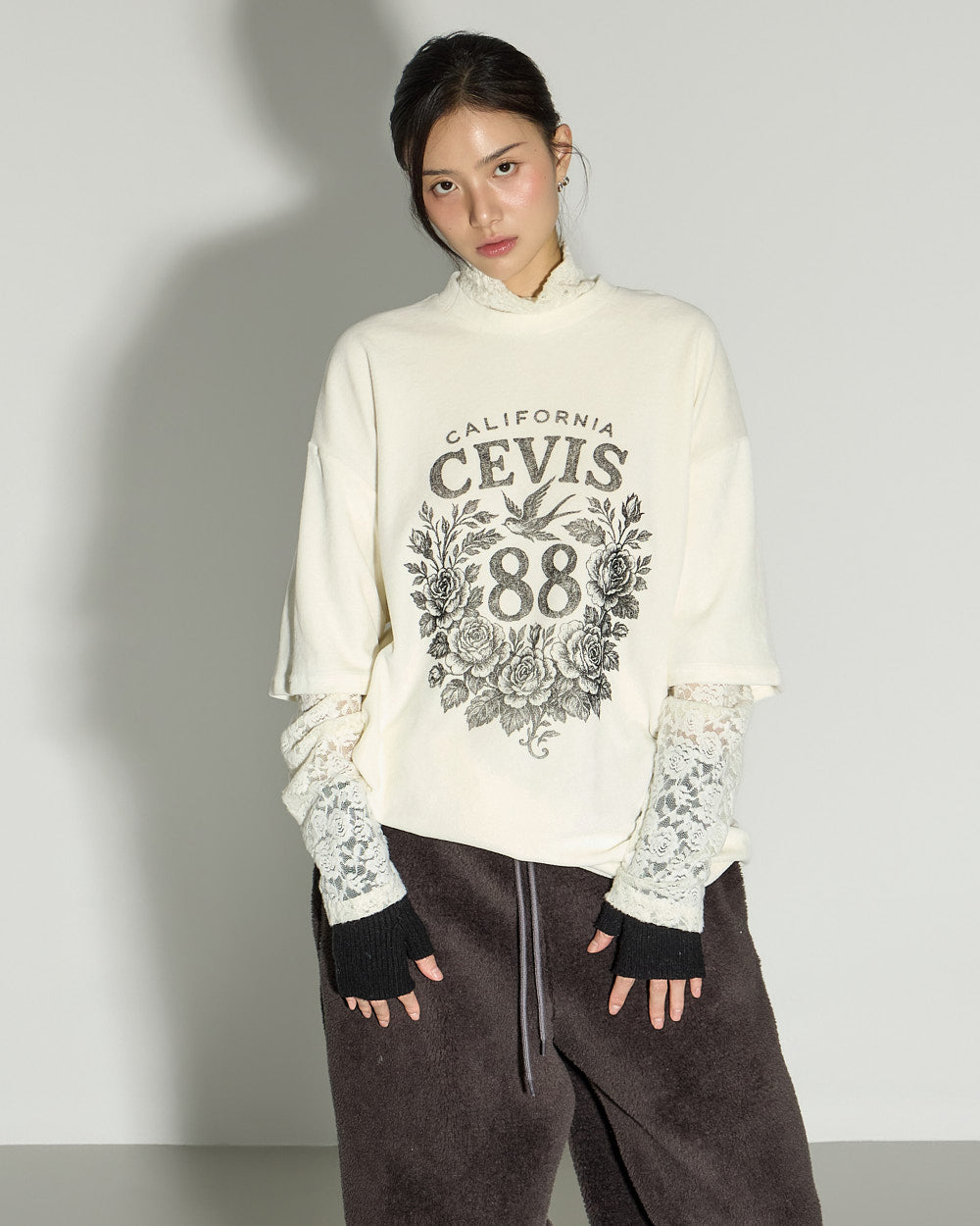 The loose-fit silhouette falls naturally,
