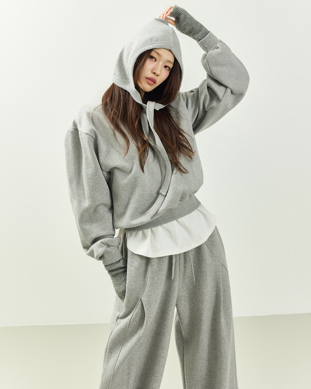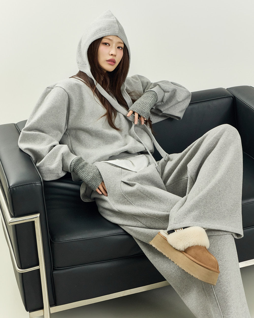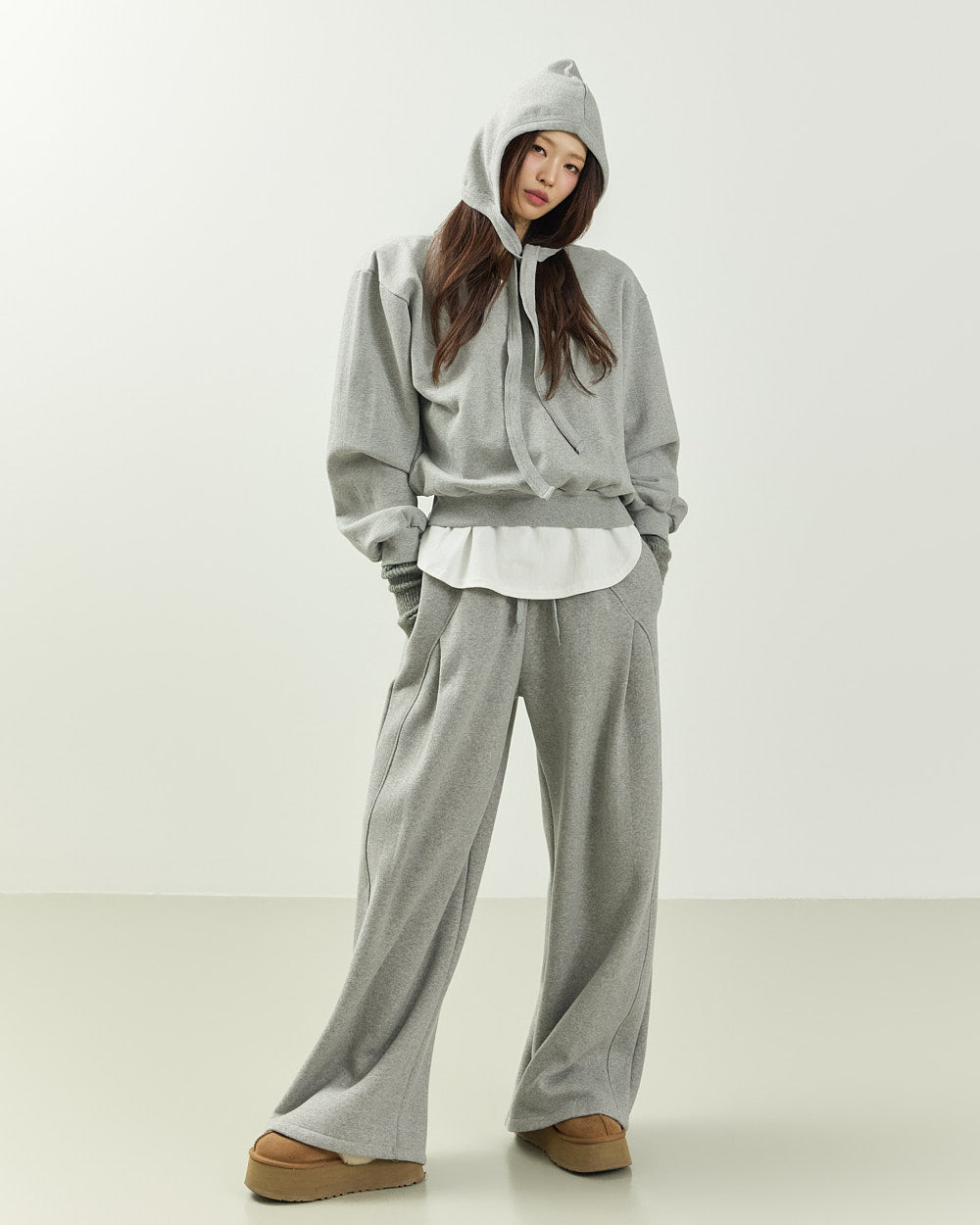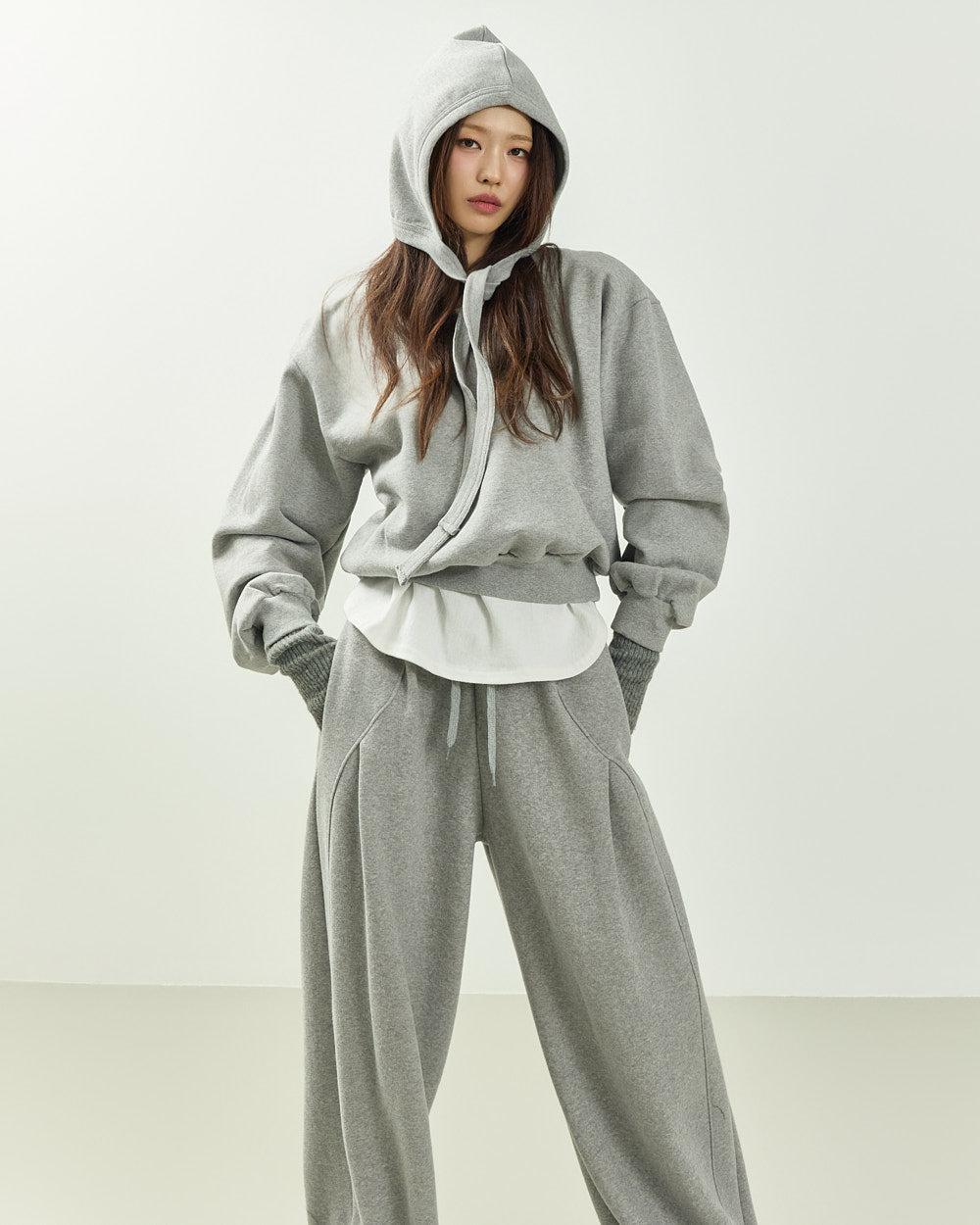 The 171cm model is wearing size ONE in GRAY.