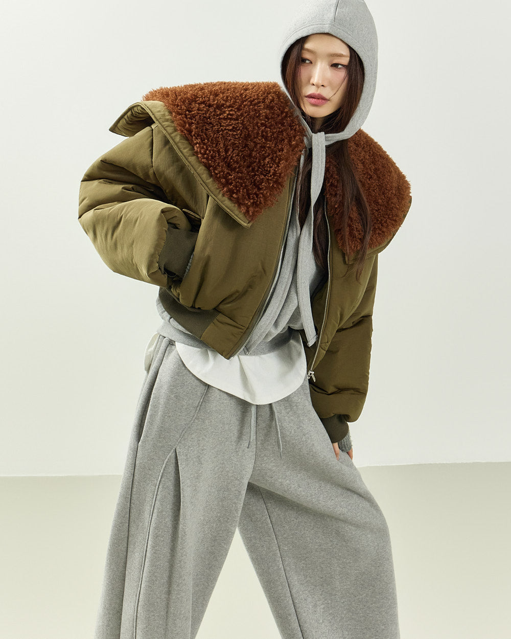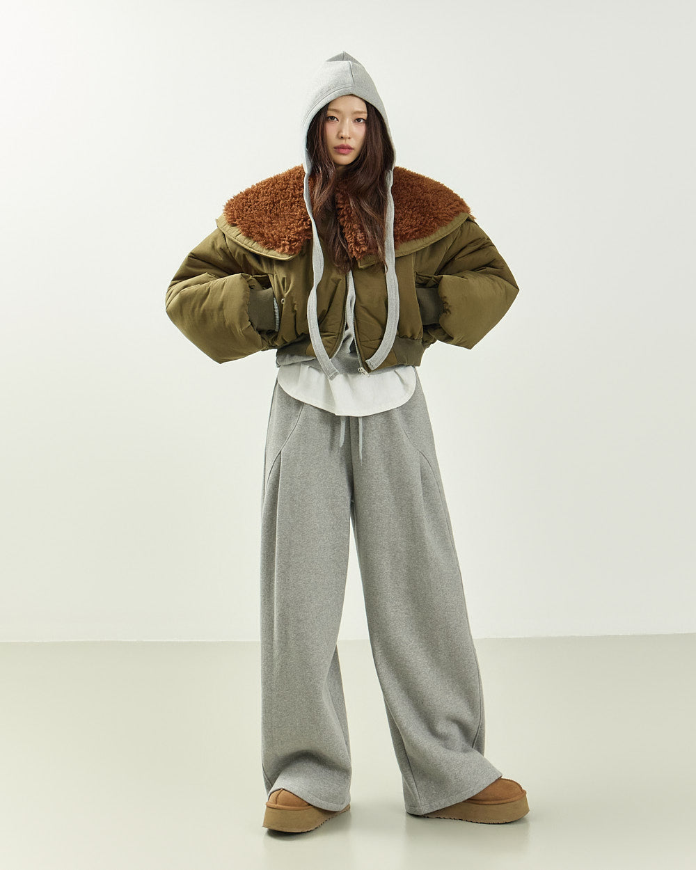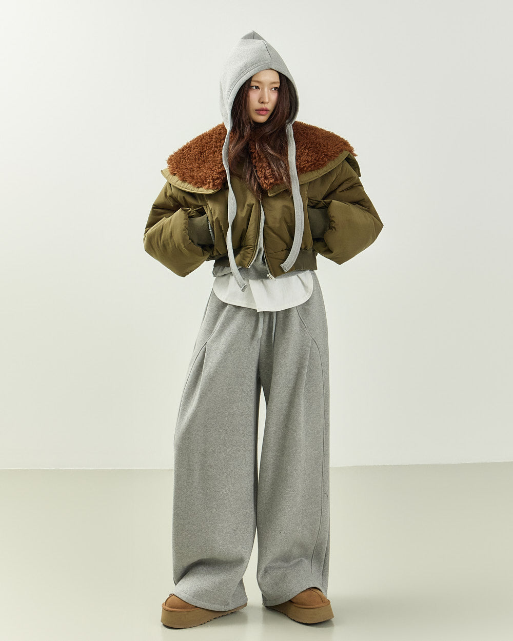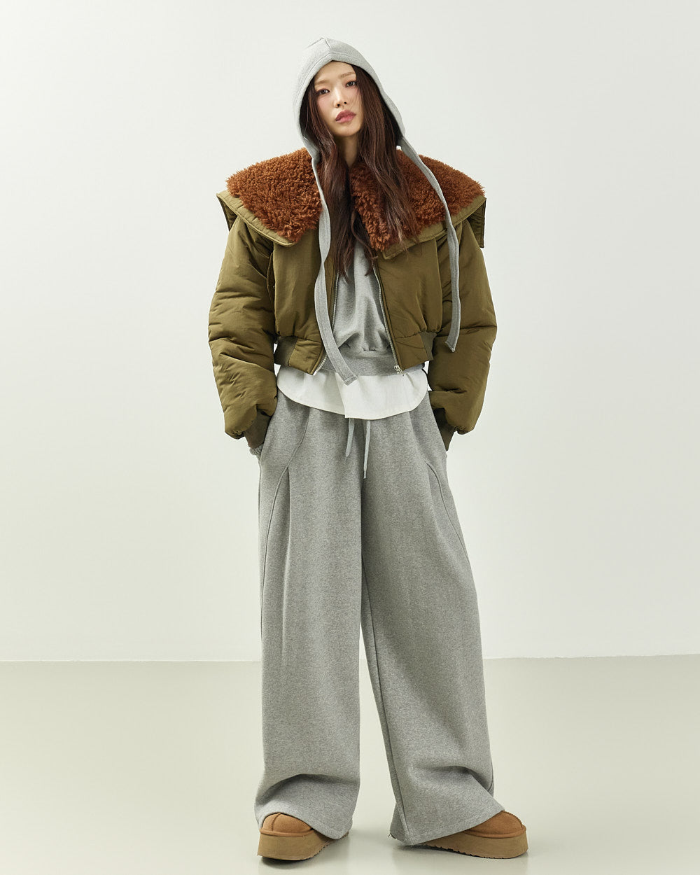 The 171cm model is wearing size ONE in GRAY.