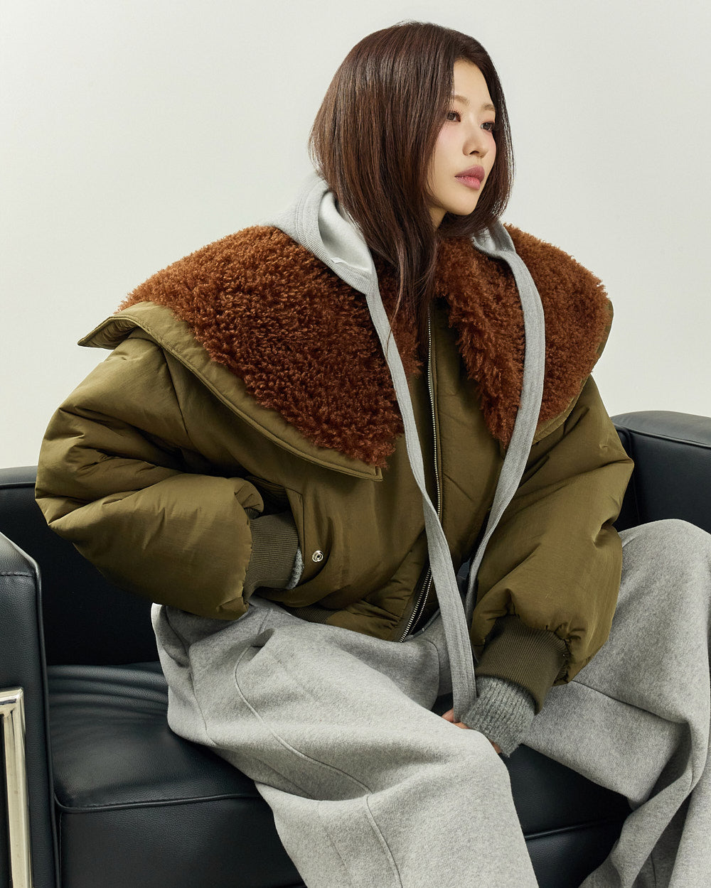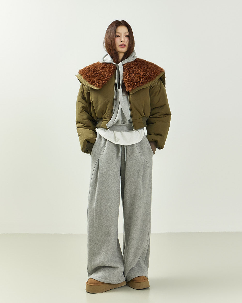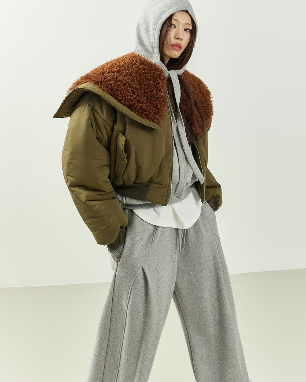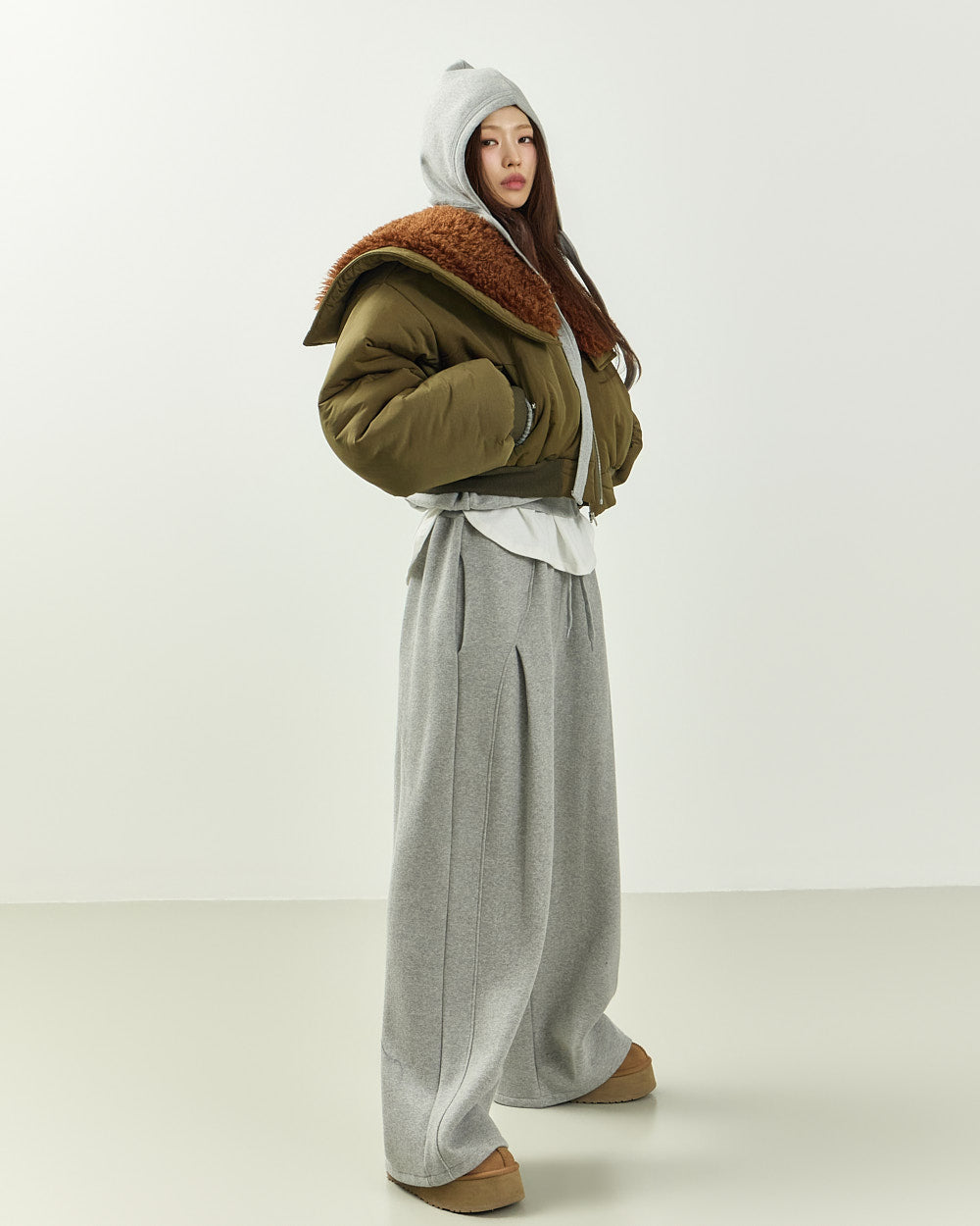 The 171cm model is wearing size ONE in GRAY.