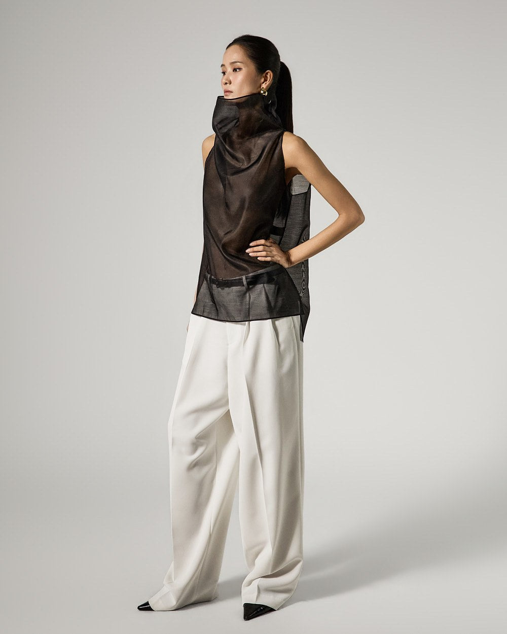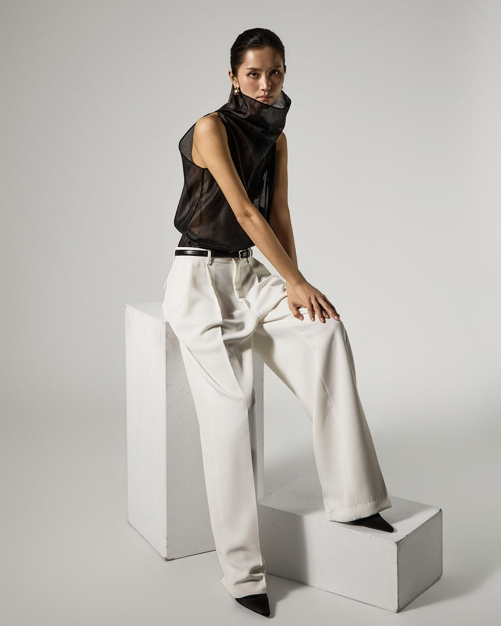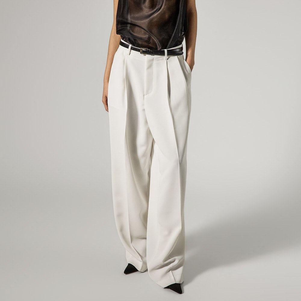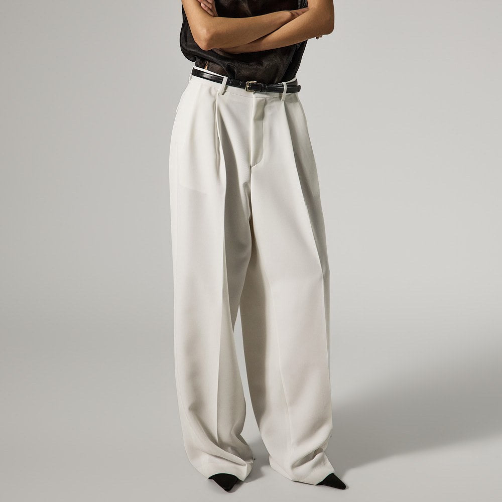 The wide-fit silhouette allows for a relaxed drape, while the front double-pleat detail creates a sophisticated silhouette.
