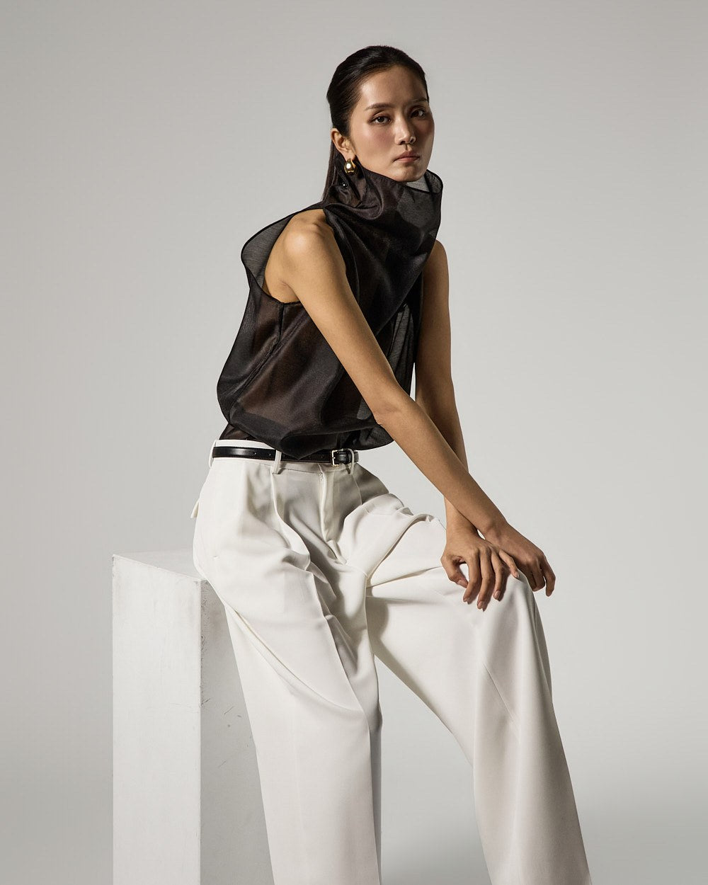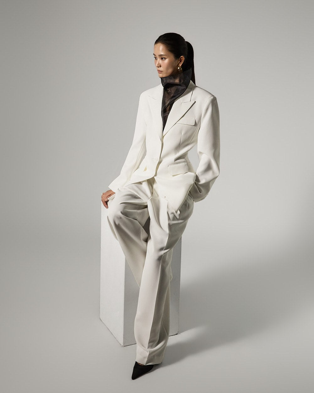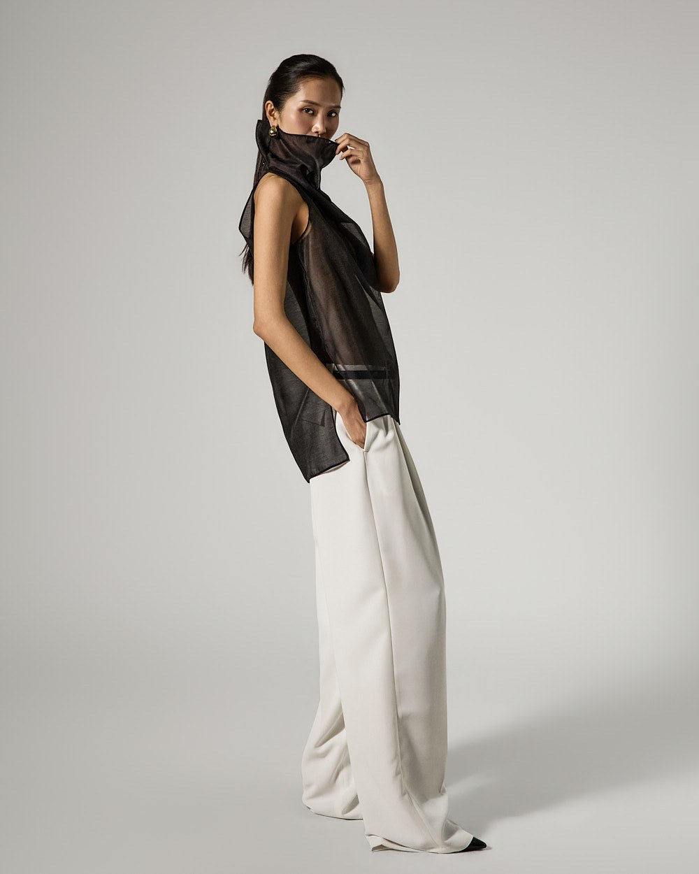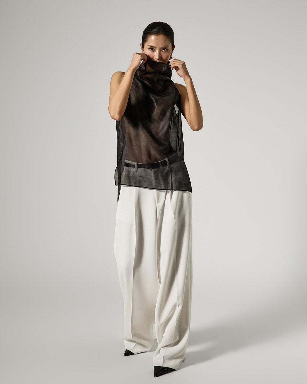 The wide-fit silhouette allows for a relaxed drape, while the front double-pleat detail creates a sophisticated silhouette.