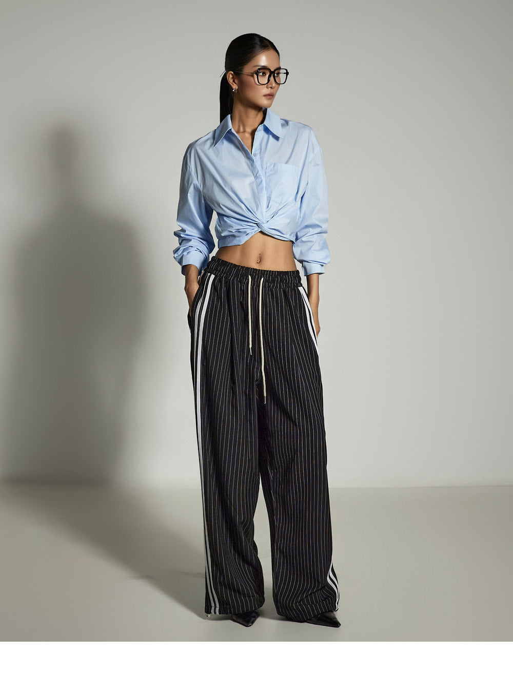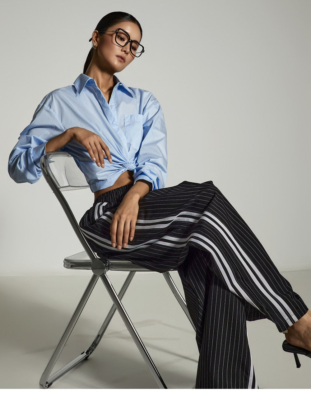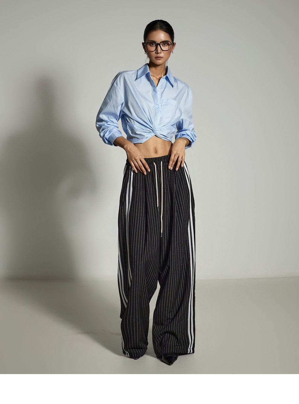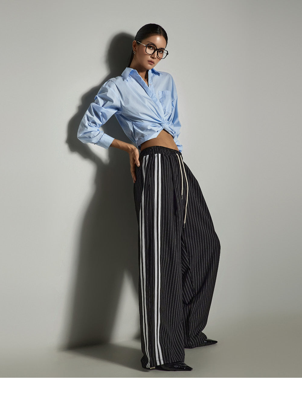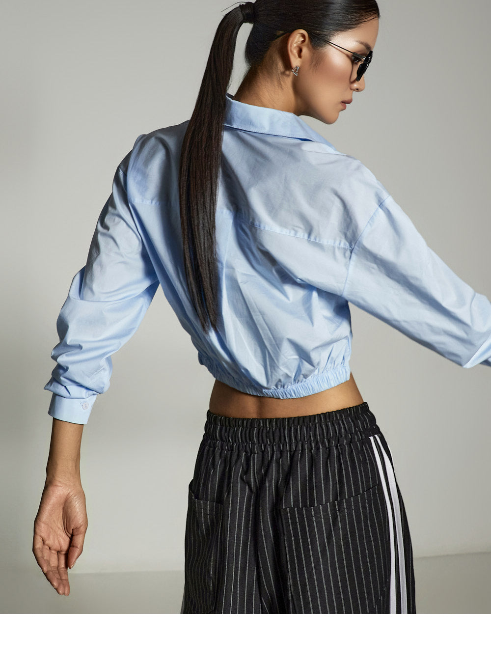 The model, 173cm tall, is wearing one size in the Sky Blue color.