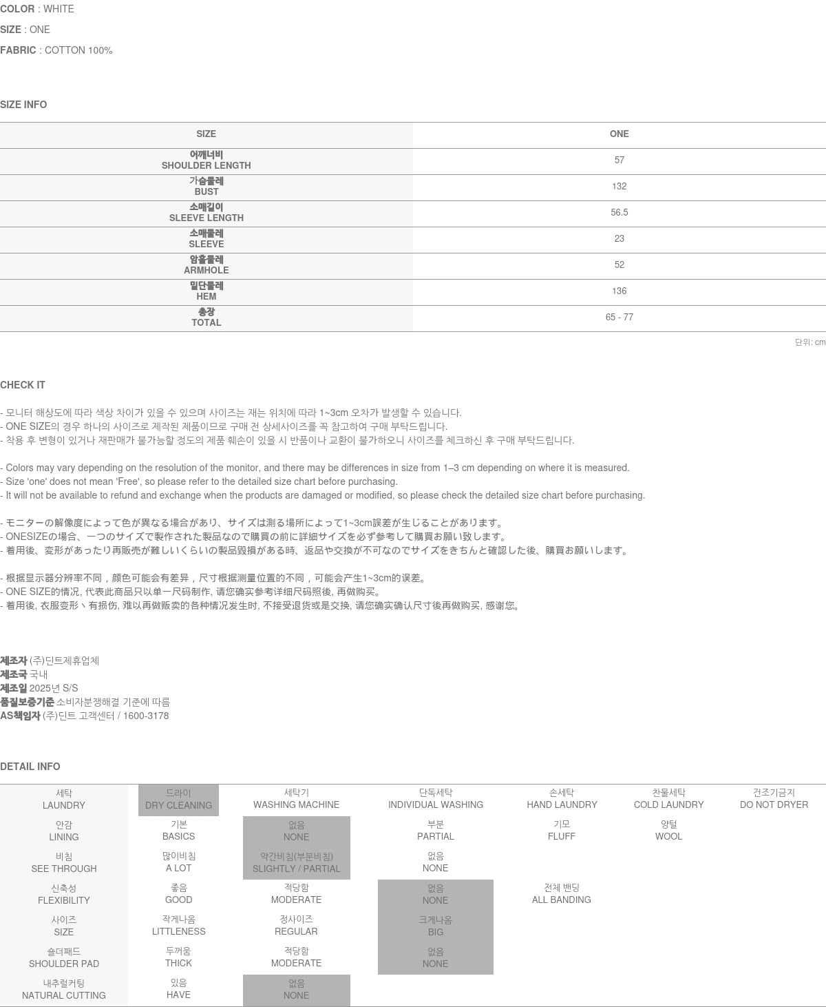 Clothing from DINT Co., Ltd. may become damaged or deformed if machine washed or tumble dried. We strongly recommend following the care instructions provided below.