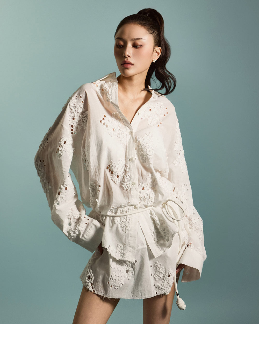The model is 171cm tall and is wearing ONE size in WHITE.