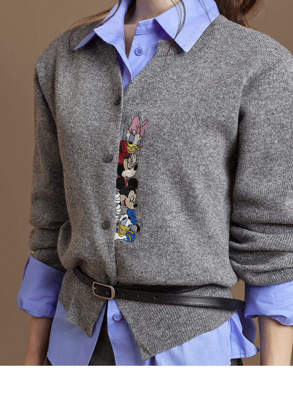 The button fastenings on the front and sleeves make it easy to wear,