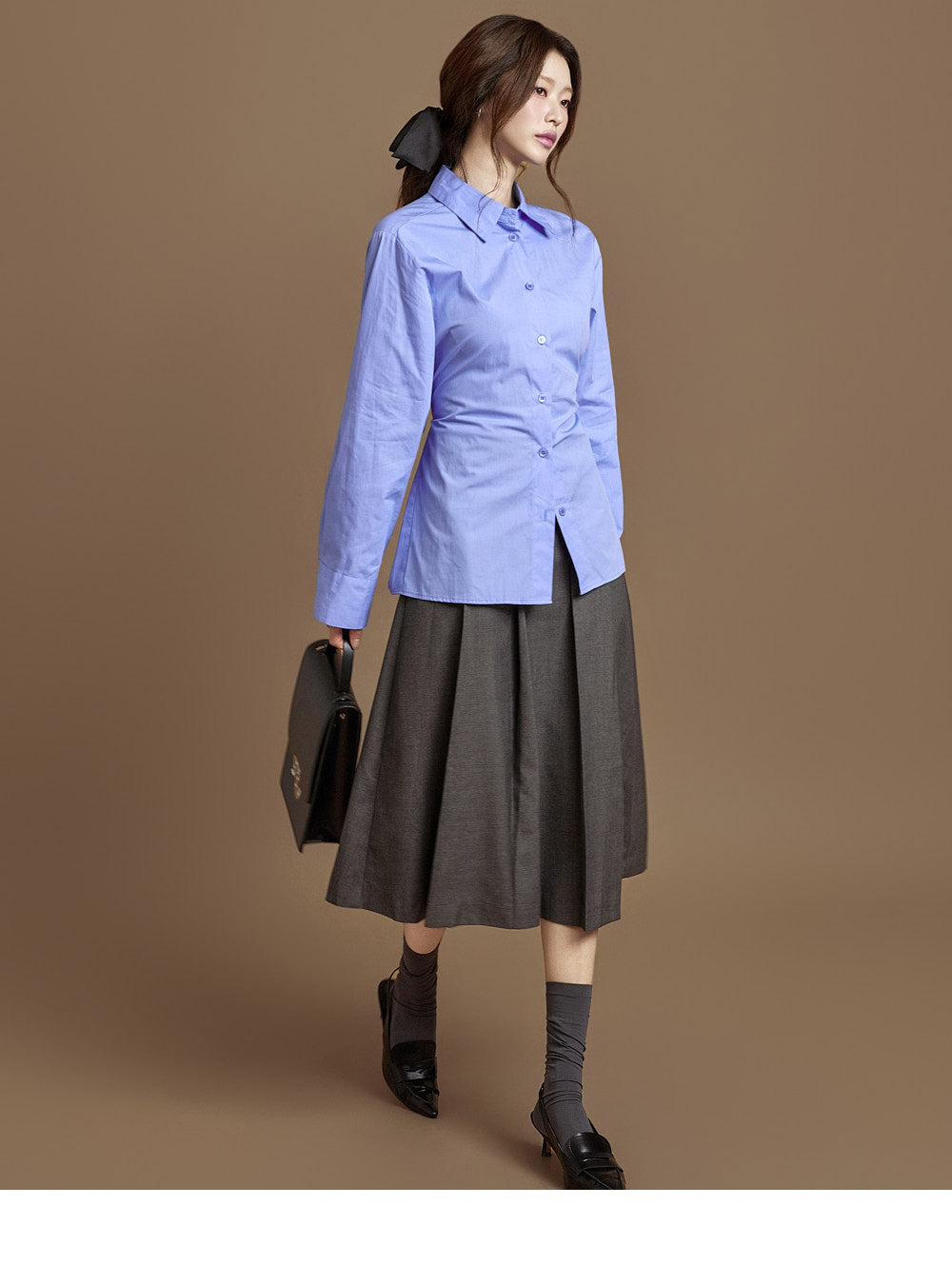 The integrated belt at the back of the waist allows for adjustable silhouettes.