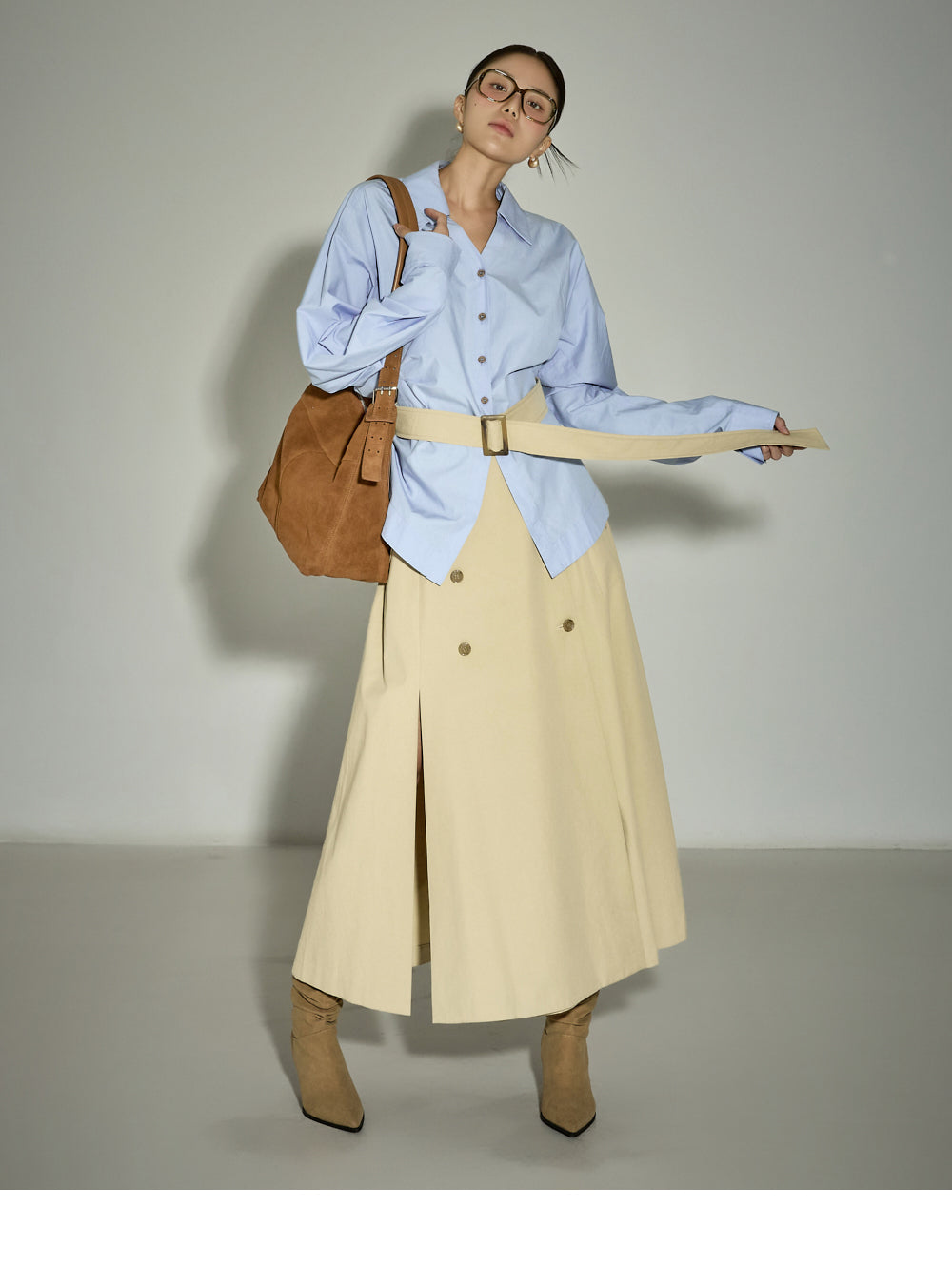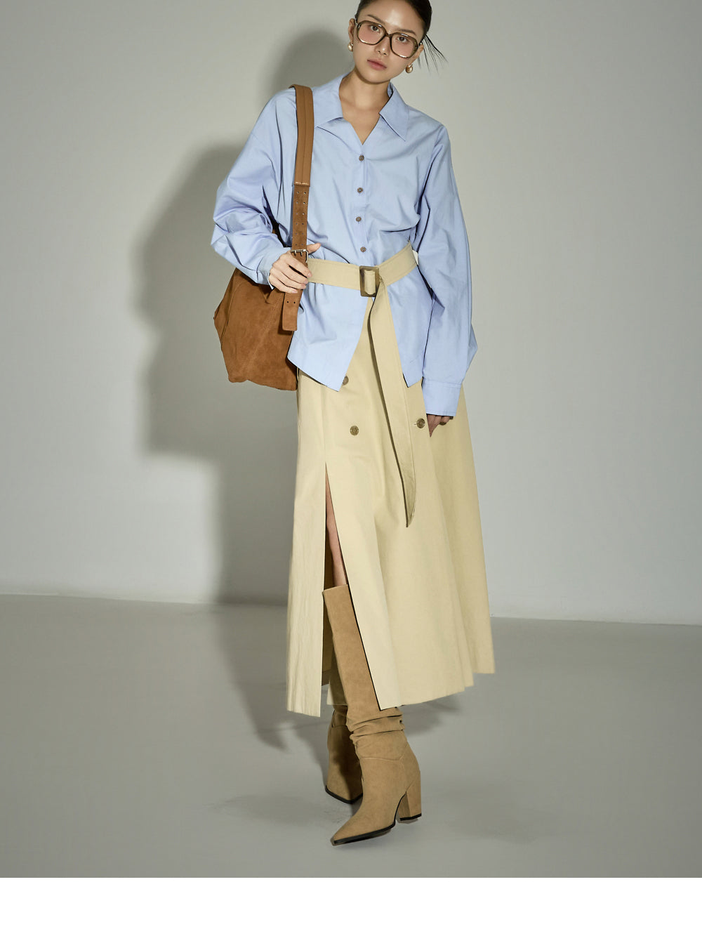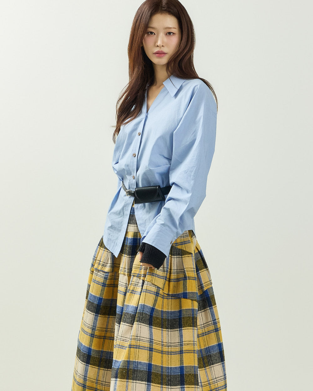 The 171cm model is wearing size ONE in SKY BLUE.