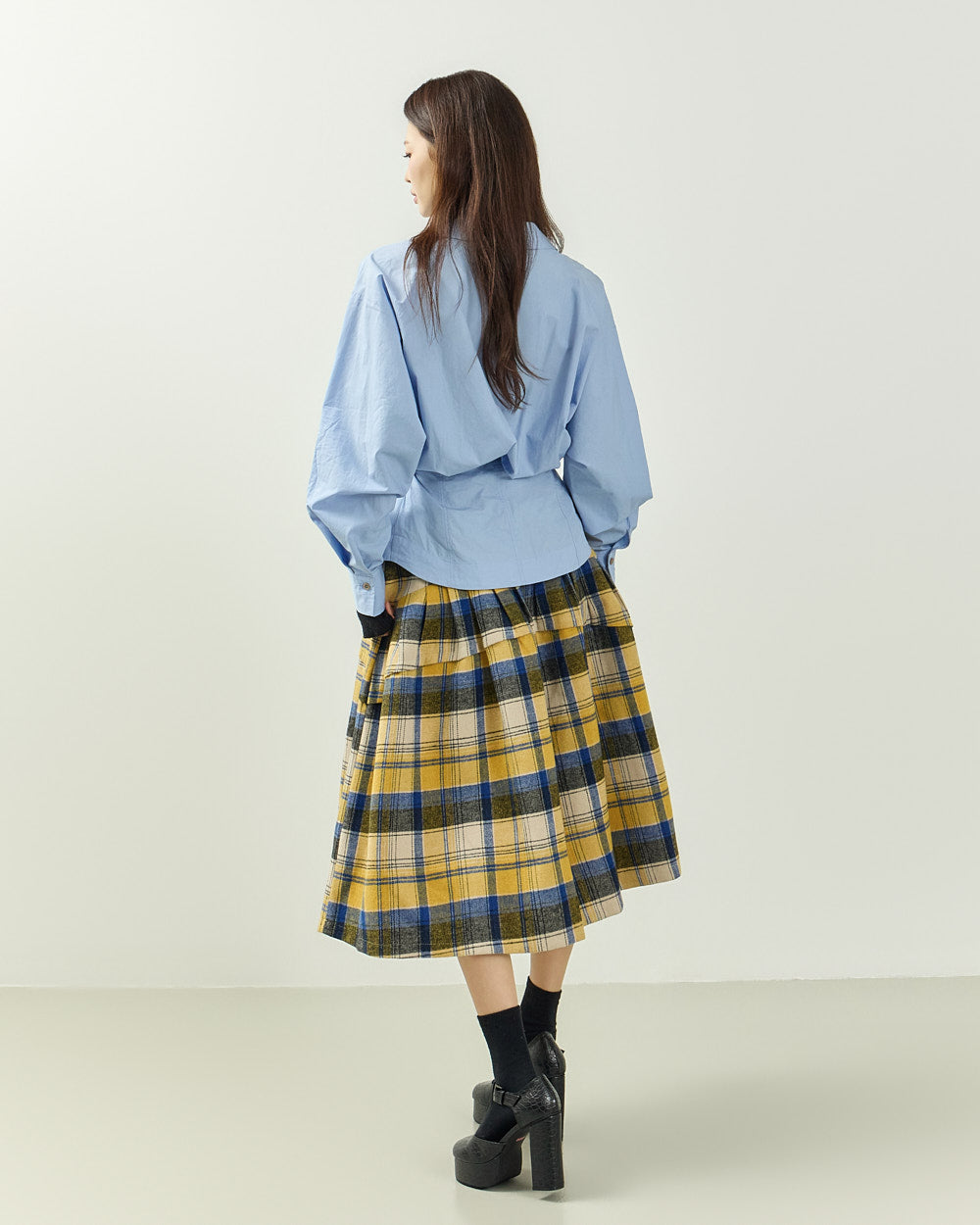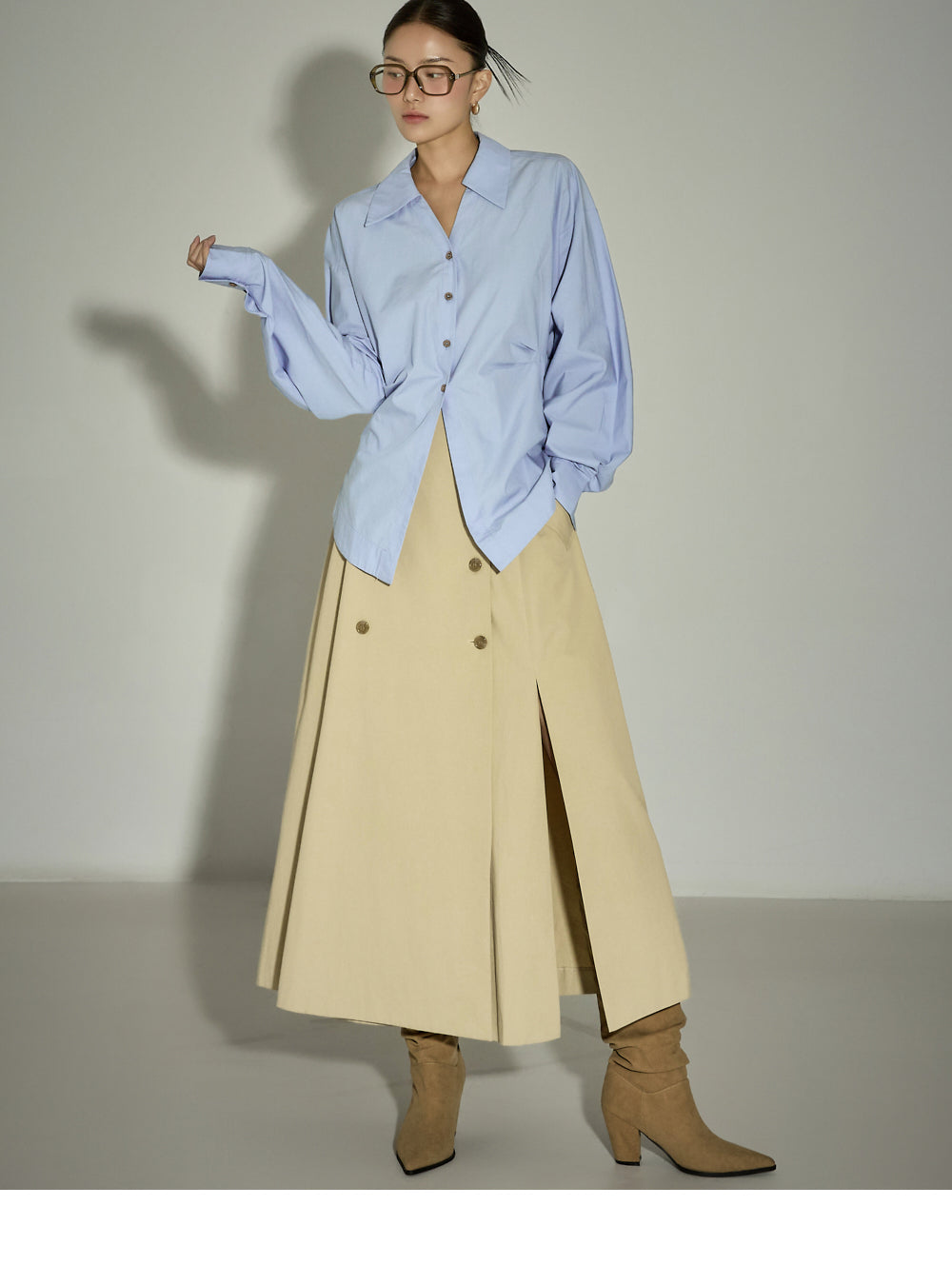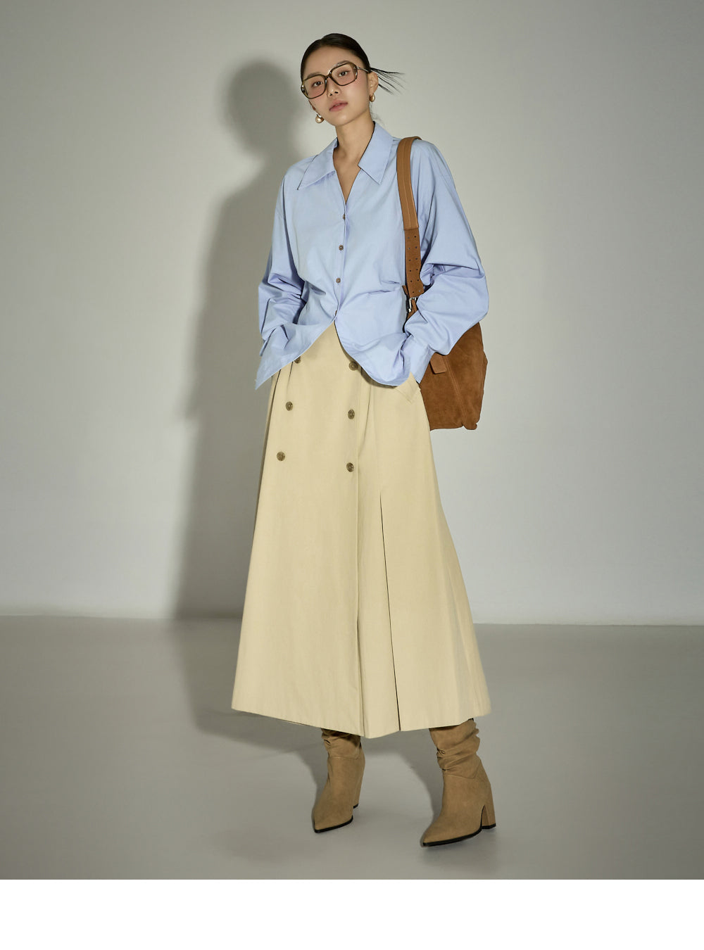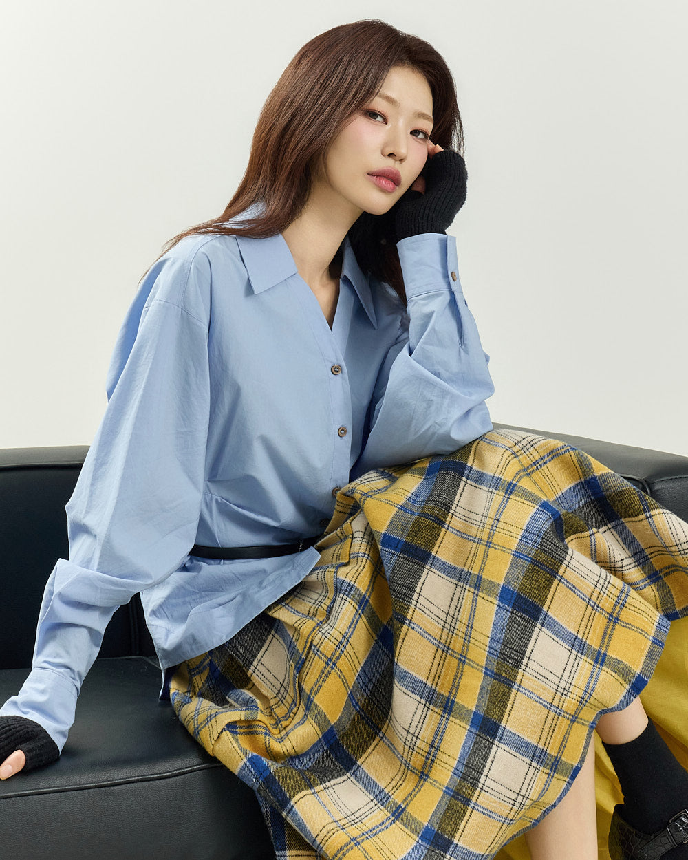 The 171cm model is wearing size ONE in SKY BLUE.