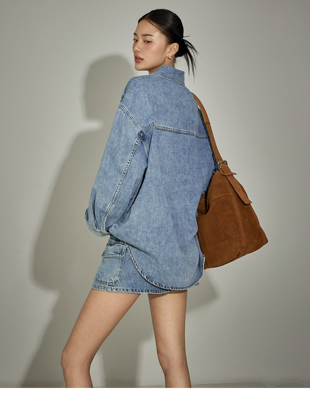 This denim shirt exudes a casual vibe.