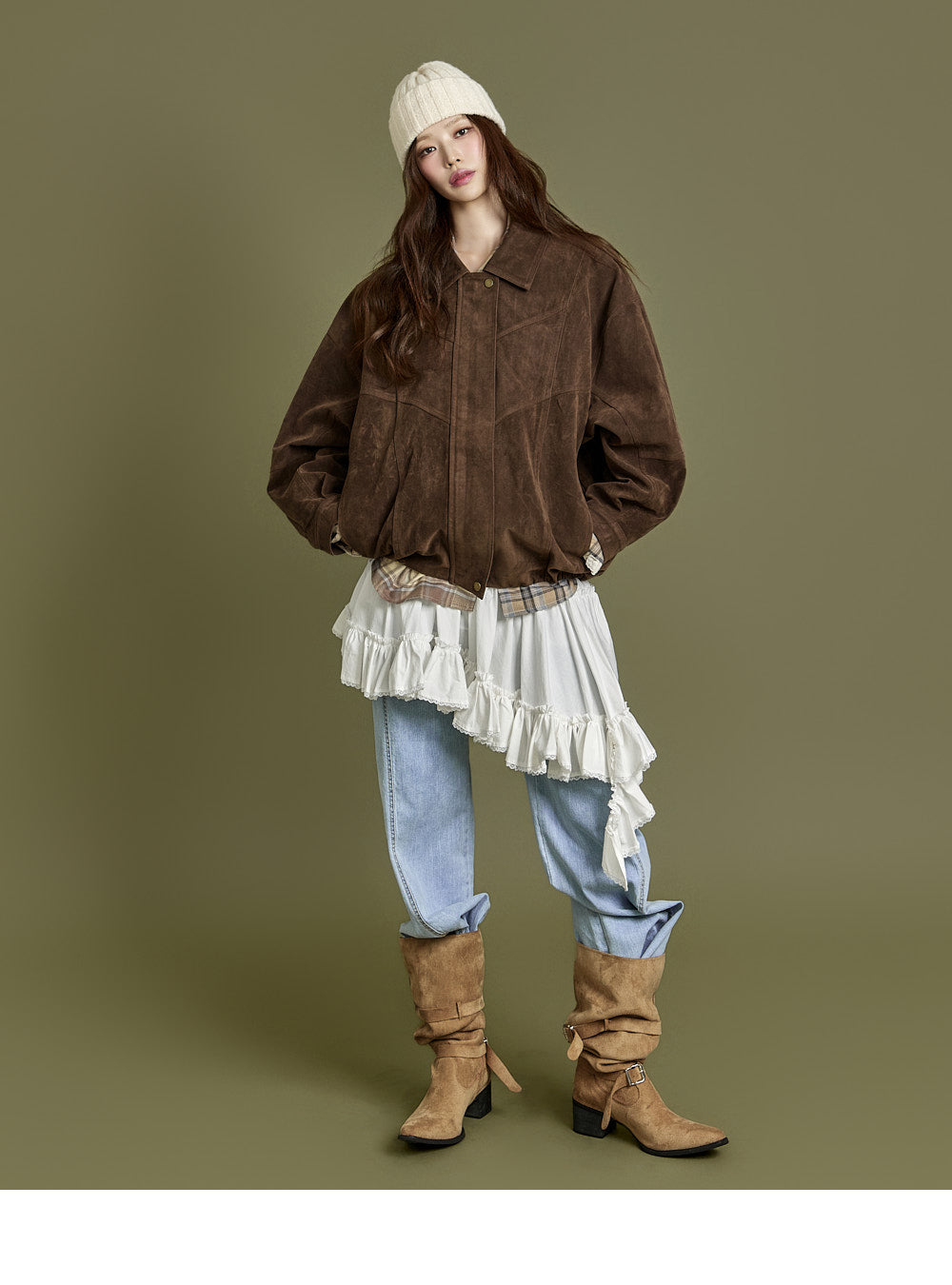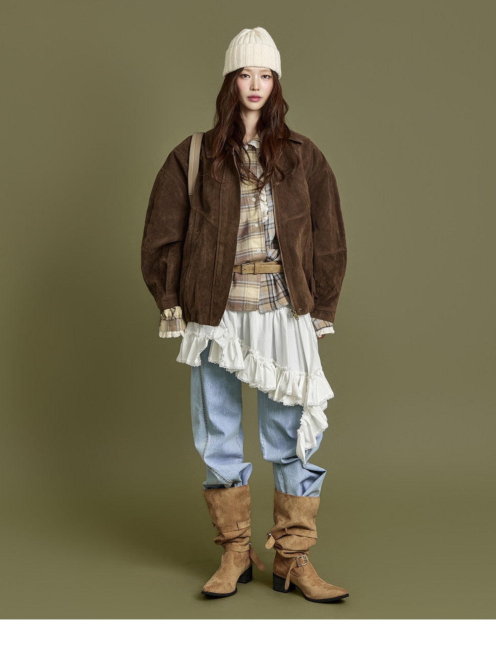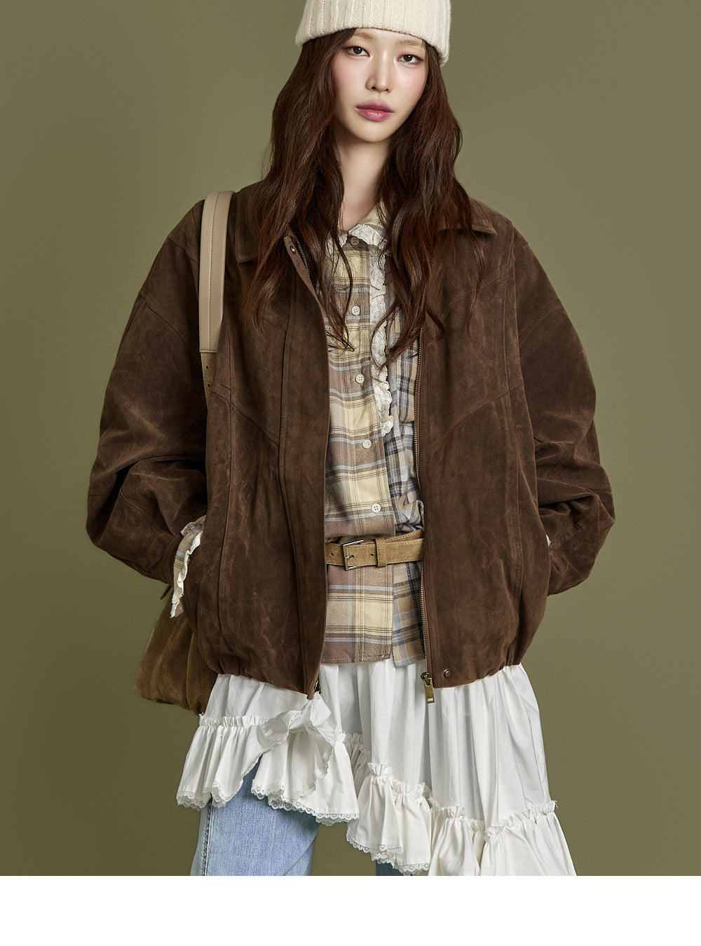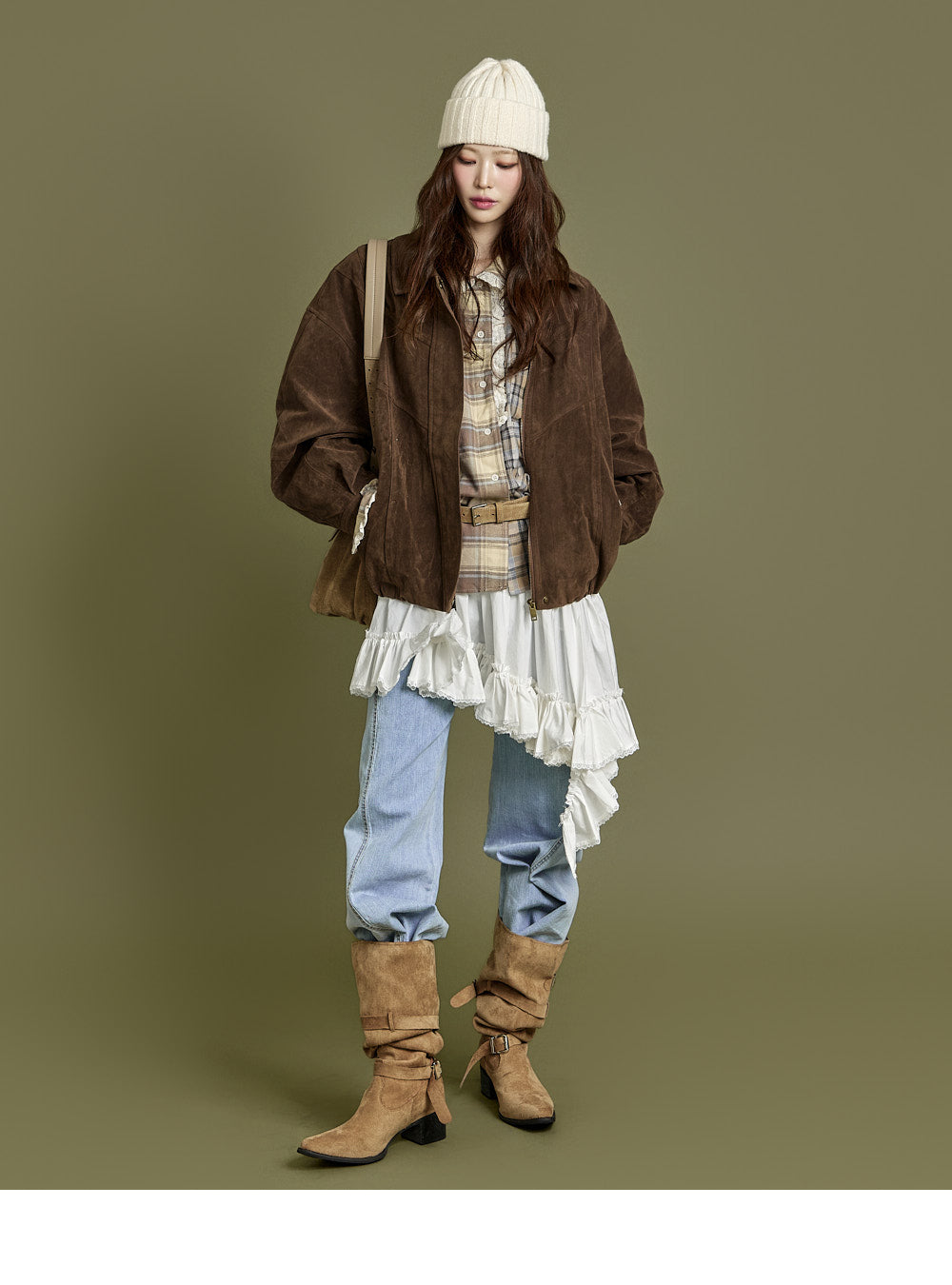 The 171cm model is wearing size ONE, beige.