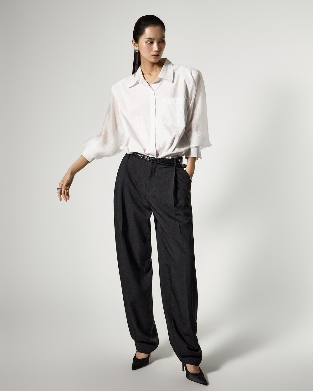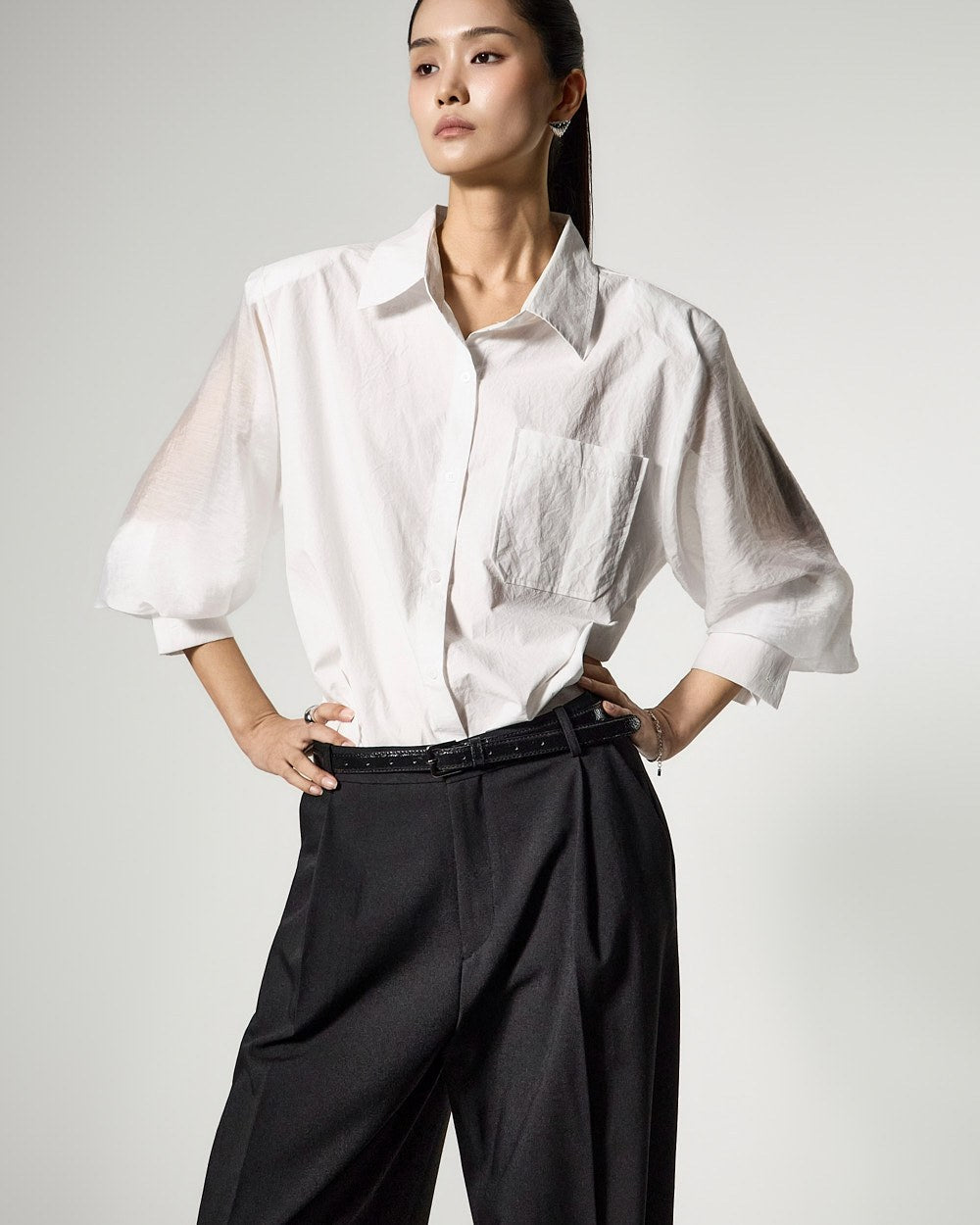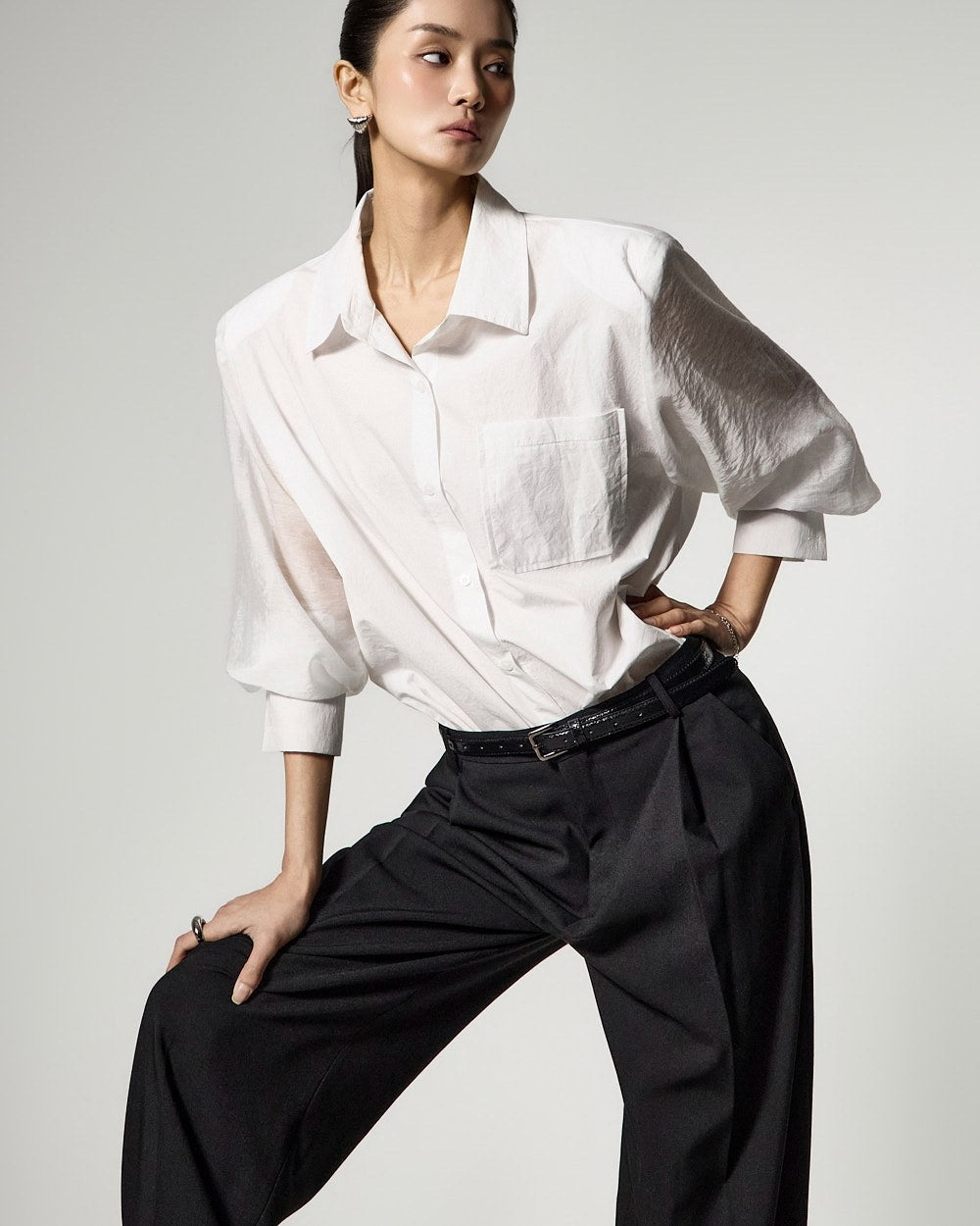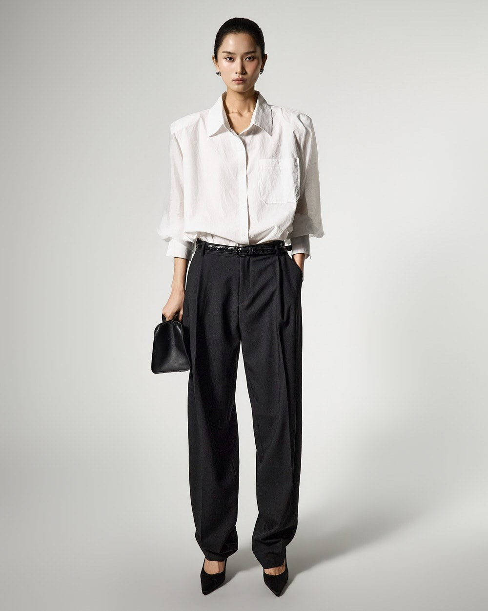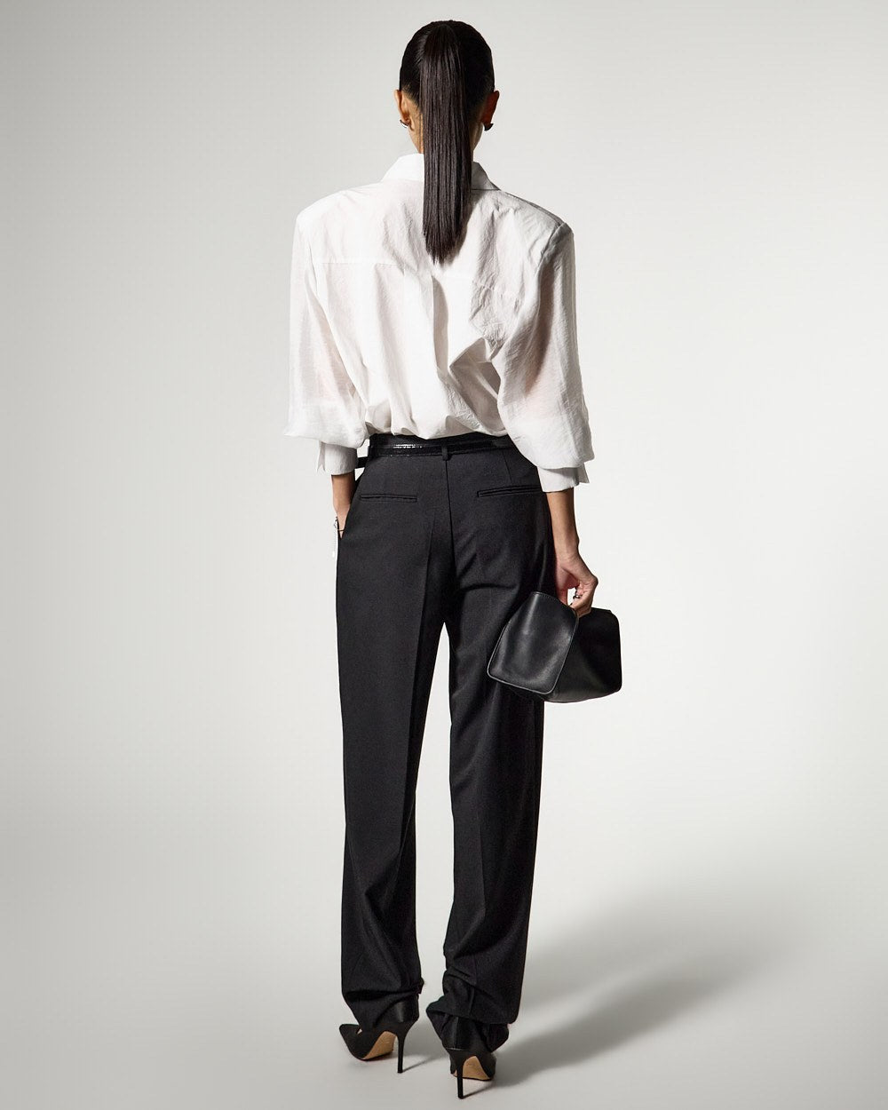 and completes a clean fit with a bust pocket and moderate shoulder pads.
