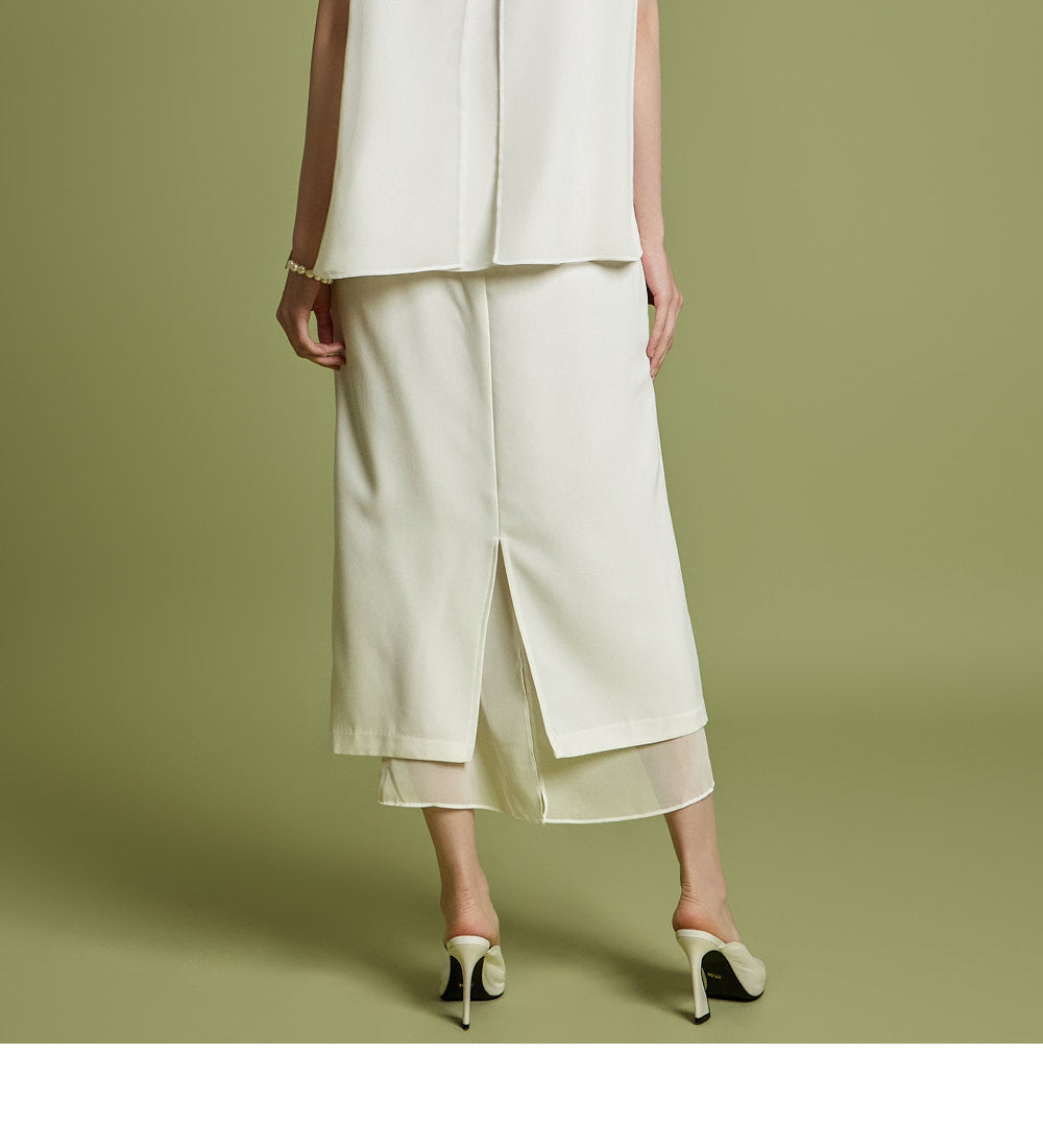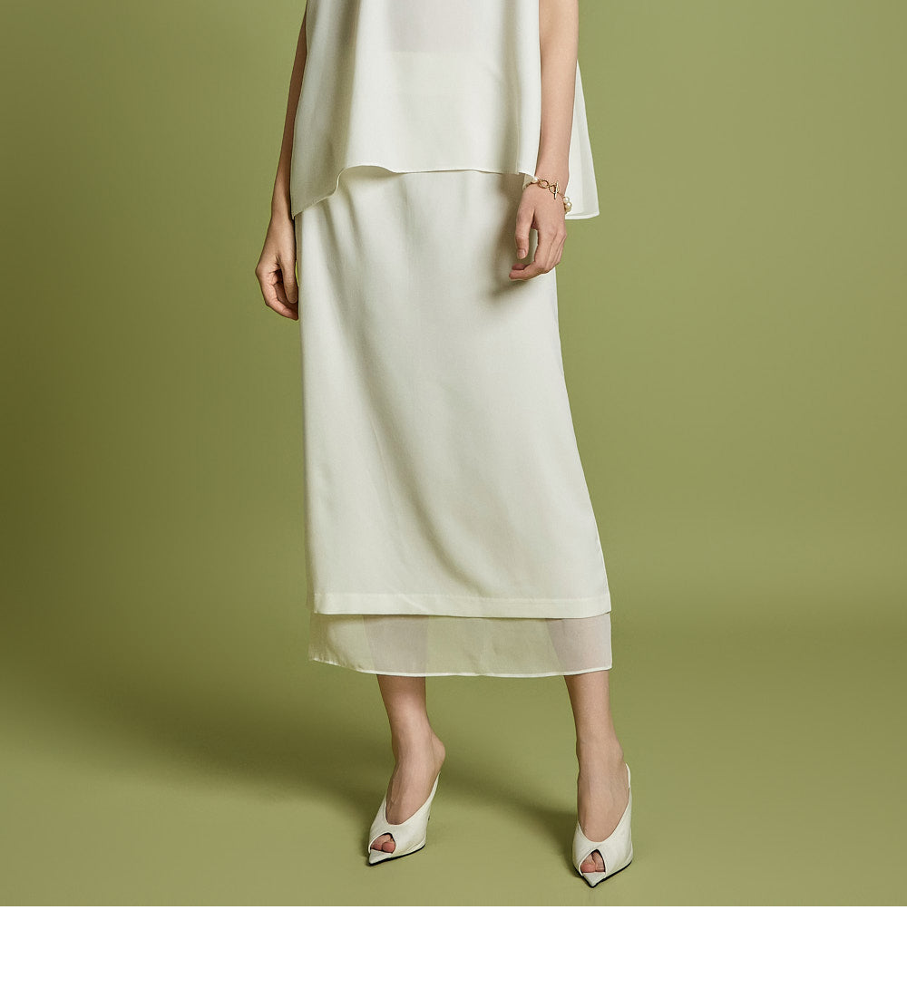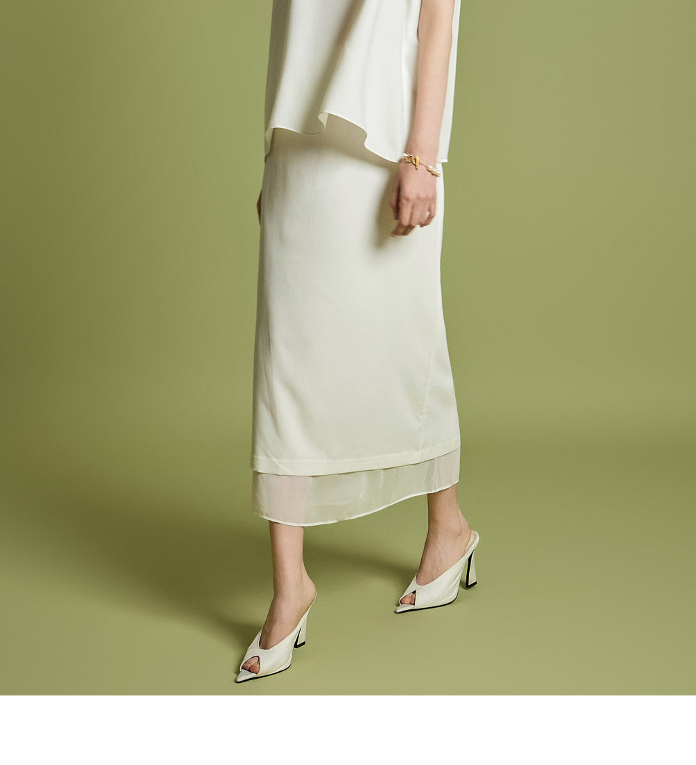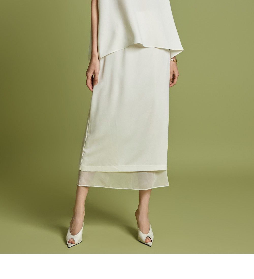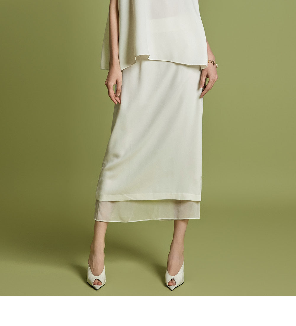 This skirt captures a modern mood with its chic sheer panel detailing.