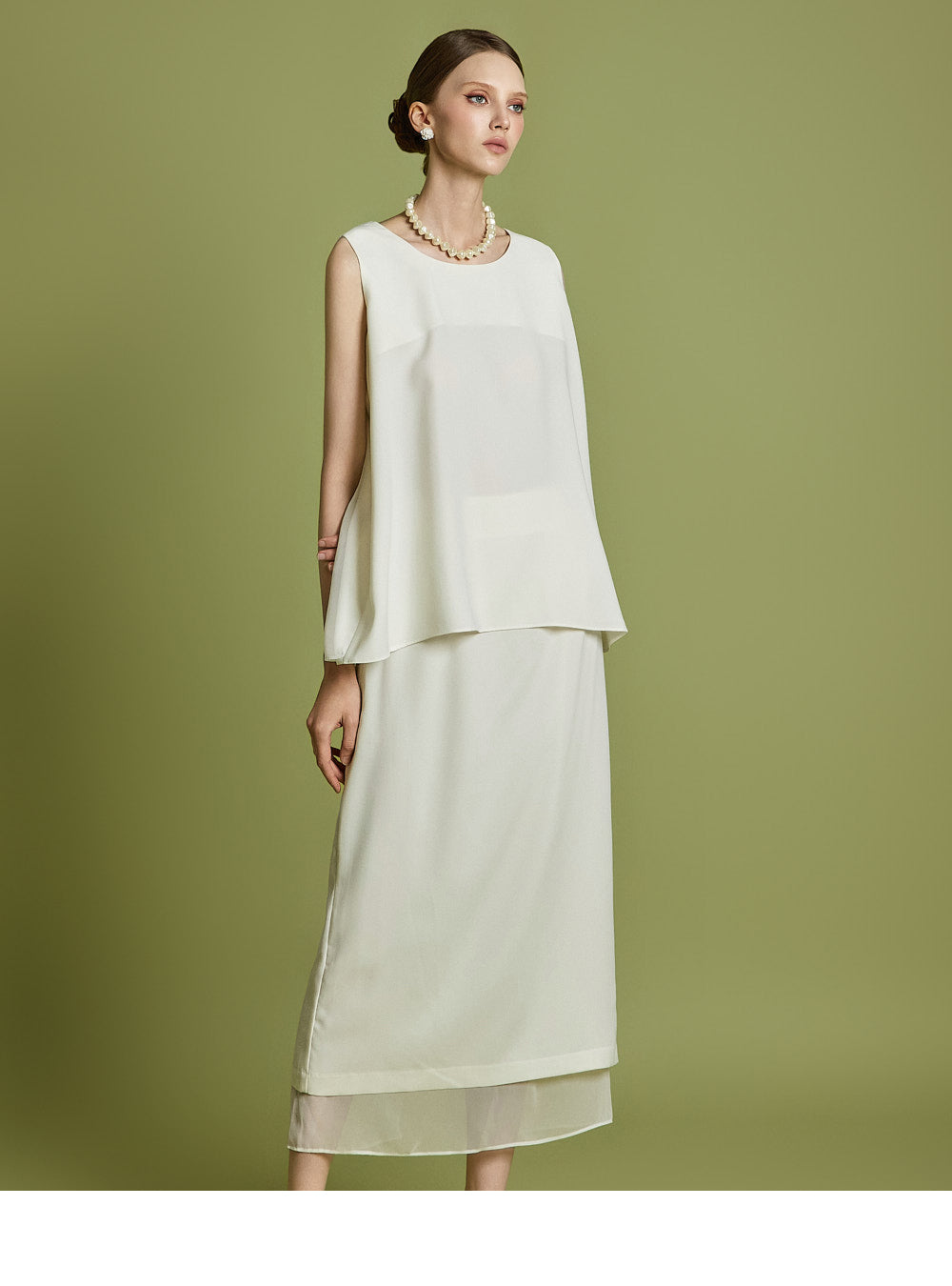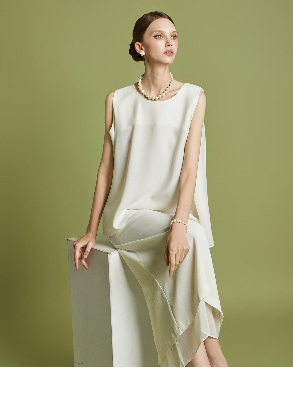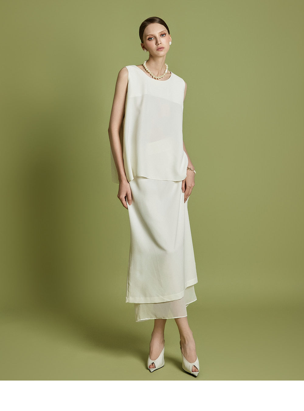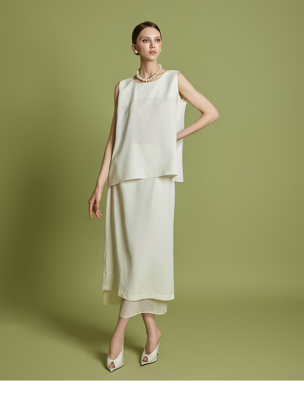 while sheer fabric at the hem adds a sophisticated visual accent.