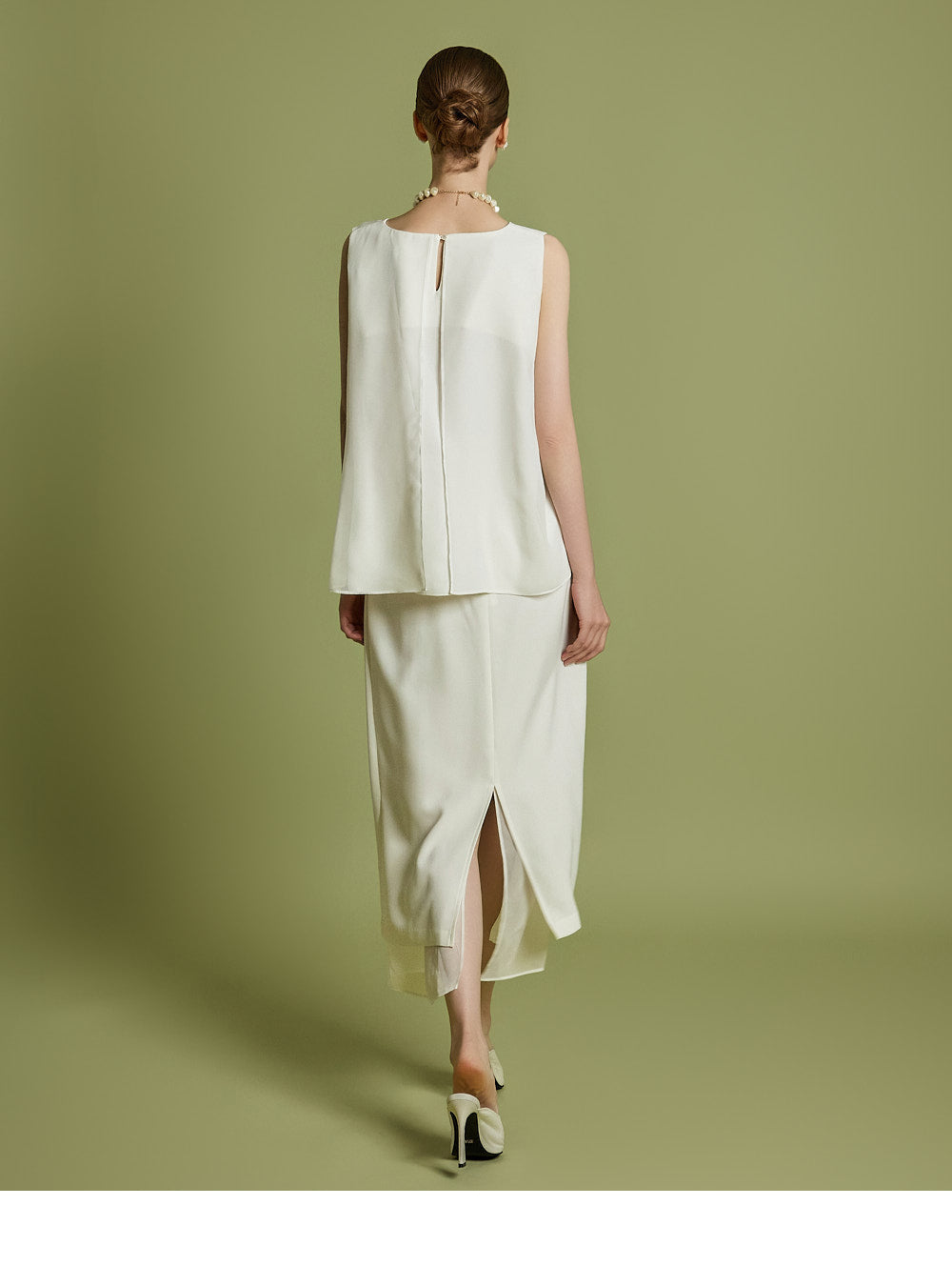 The back zipper and slit enhance both ease of movement and everyday functionality.