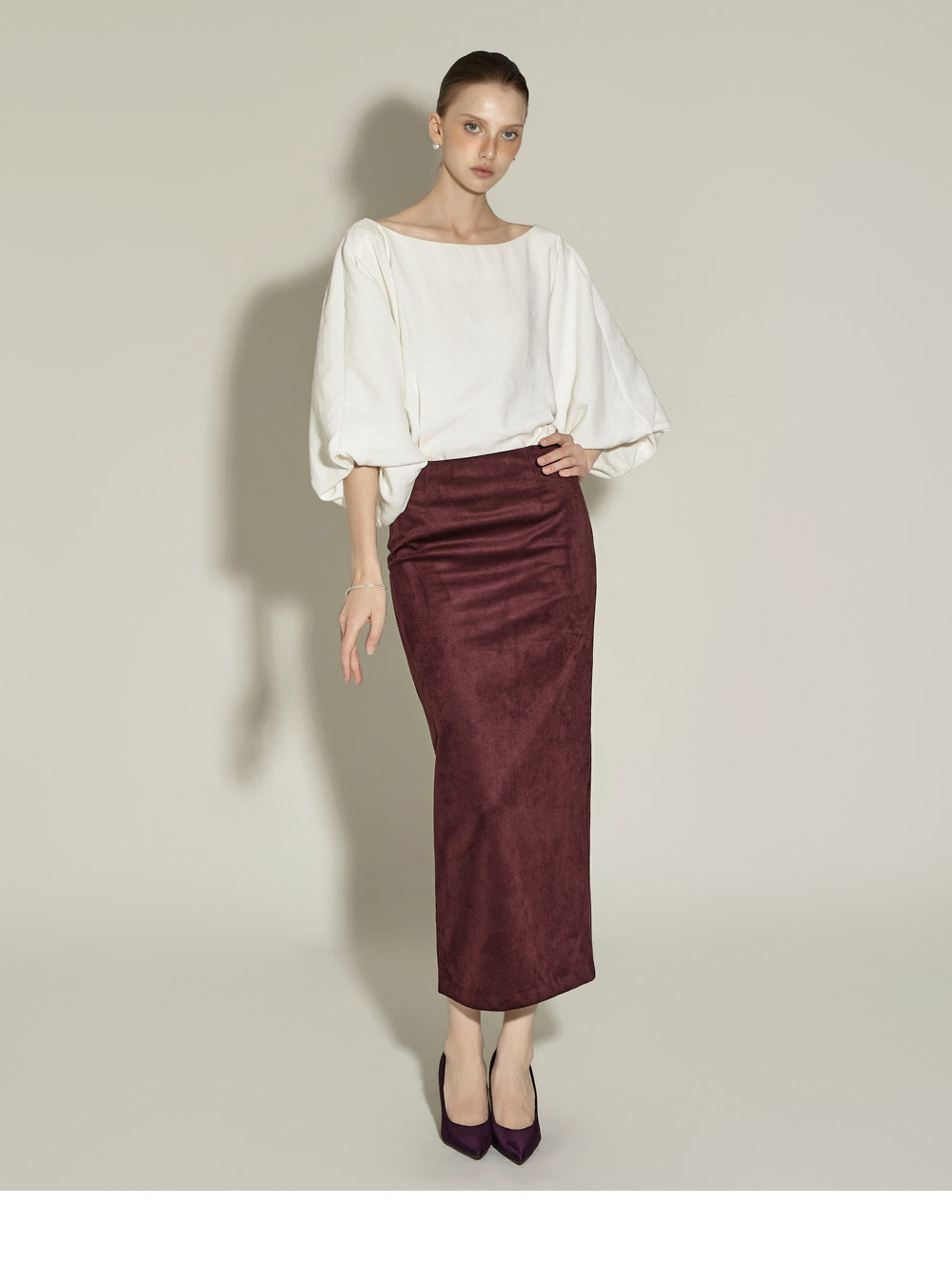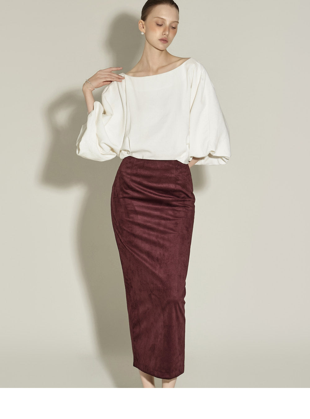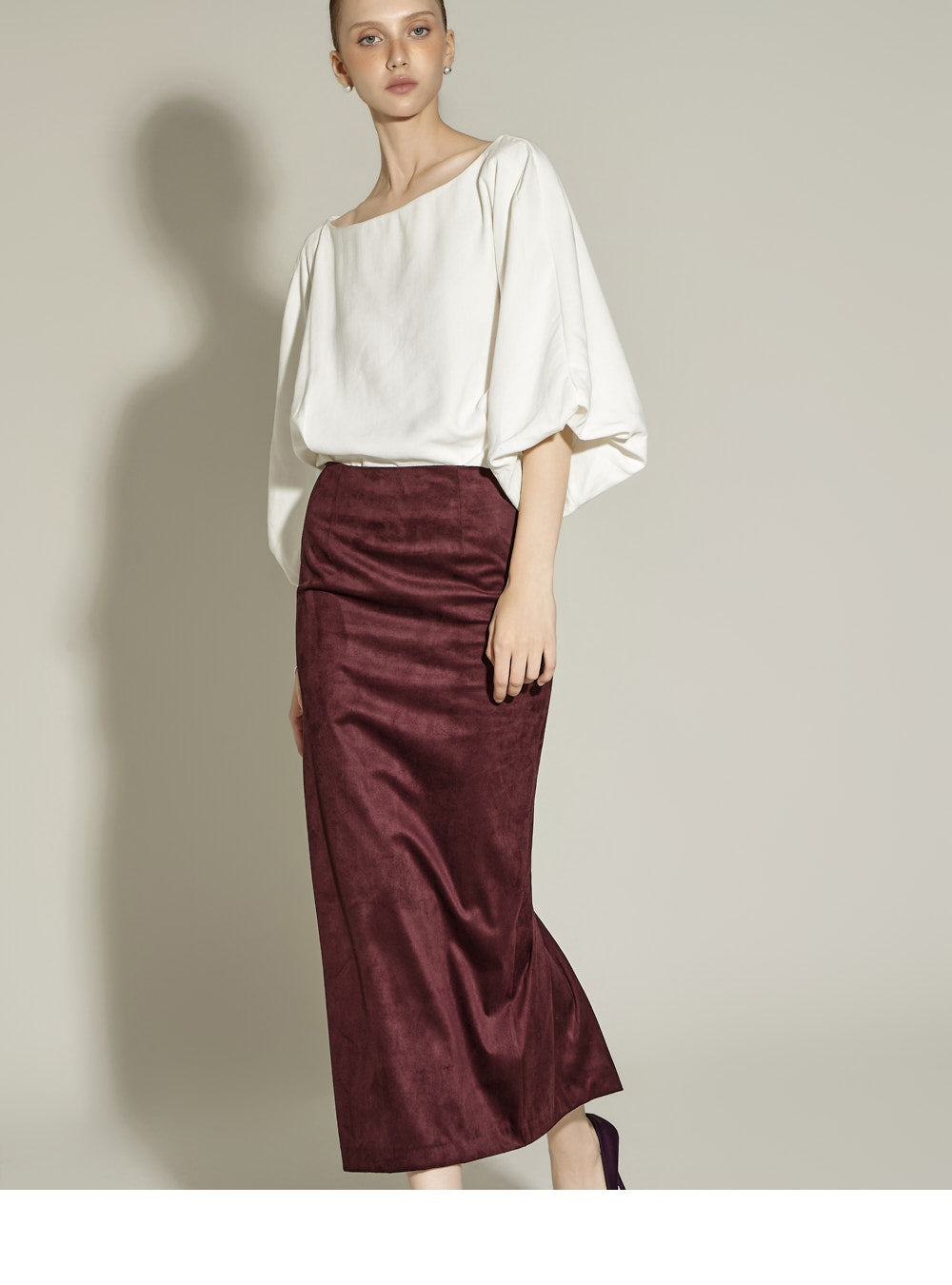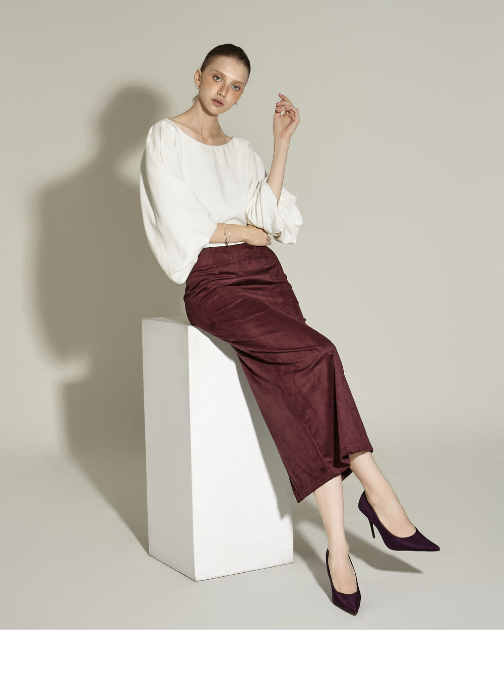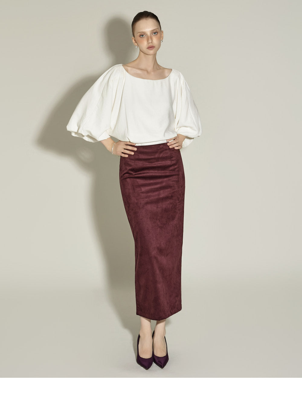 The midi length and H-line silhouette create a neat and clean silhouette,