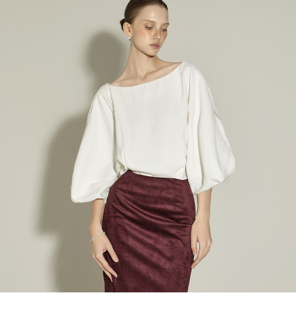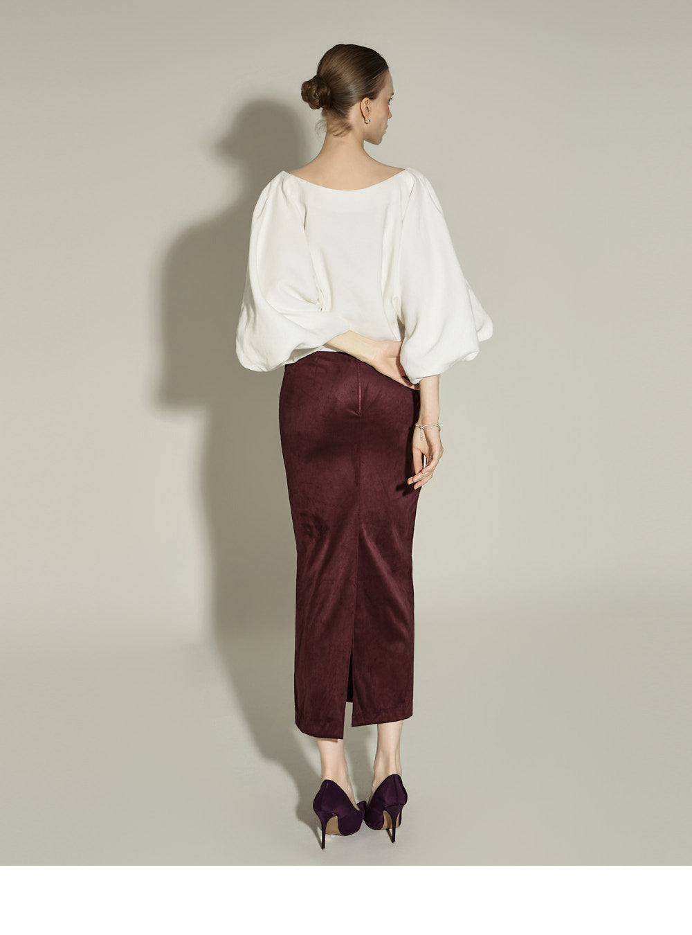 The back slit detail allows for easy movement, creating a feminine silhouette.