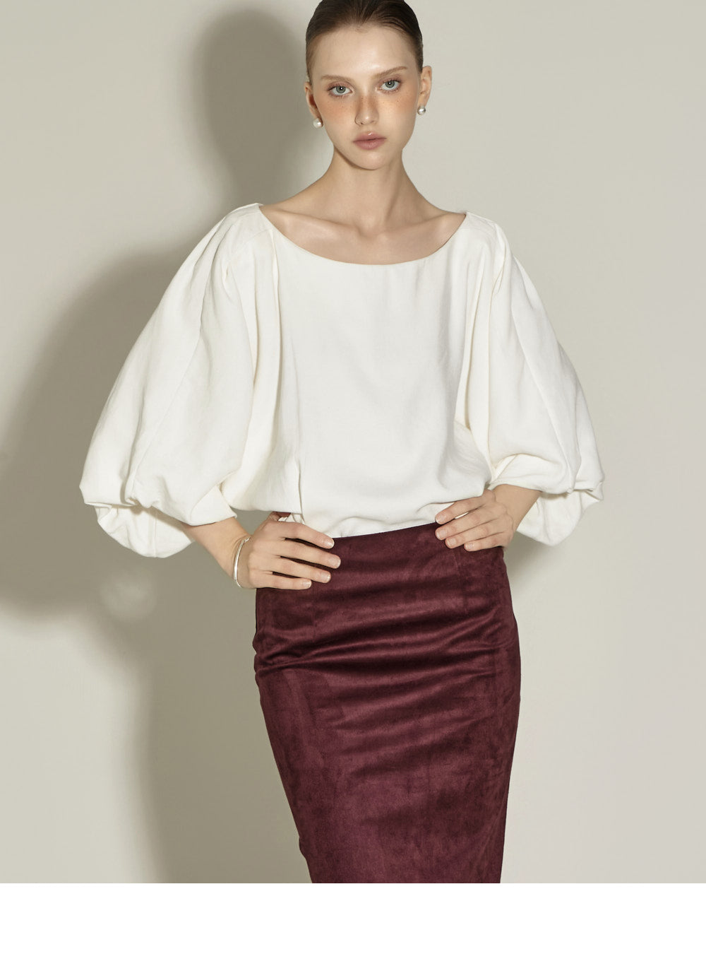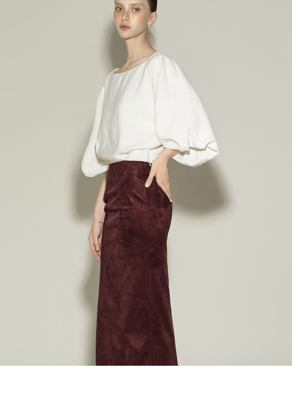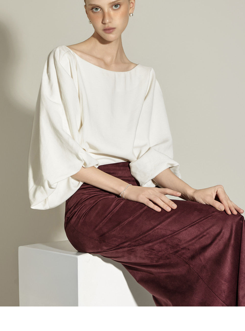 Model is 174cm tall and is wearing size S in the WINE color.