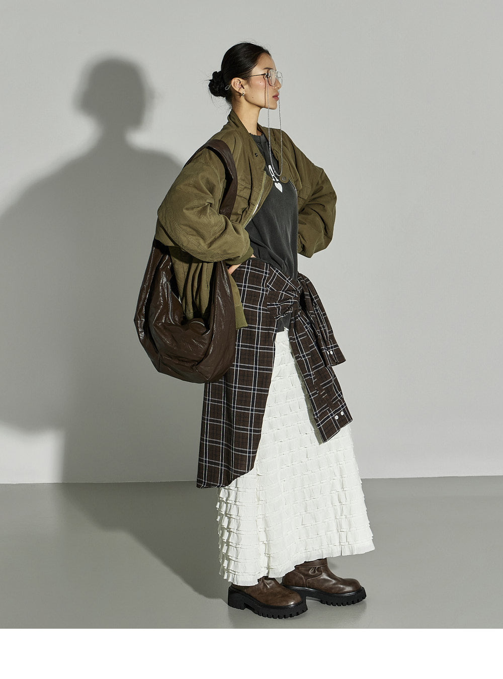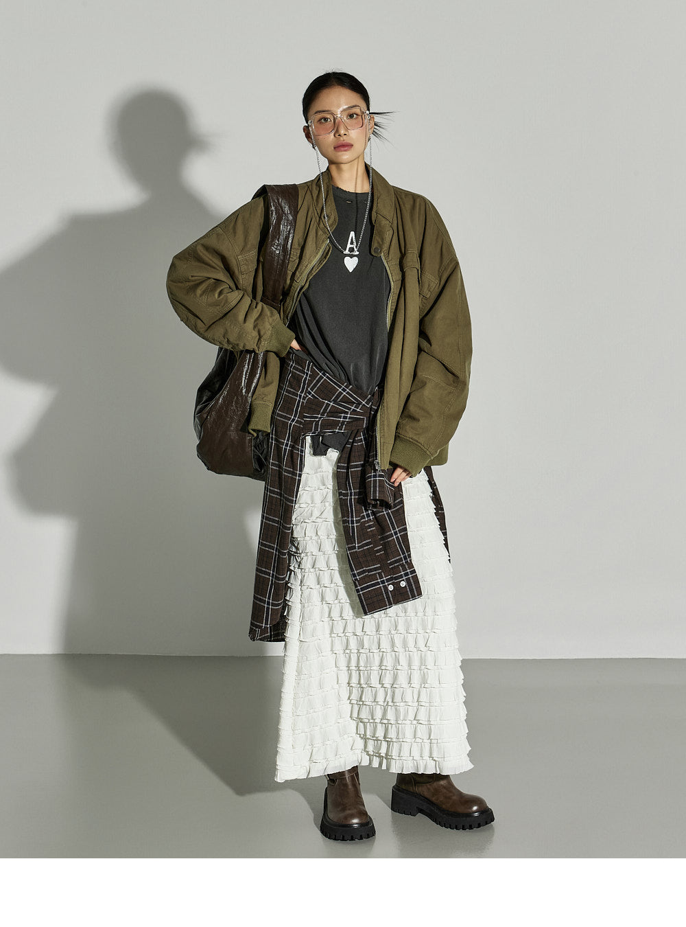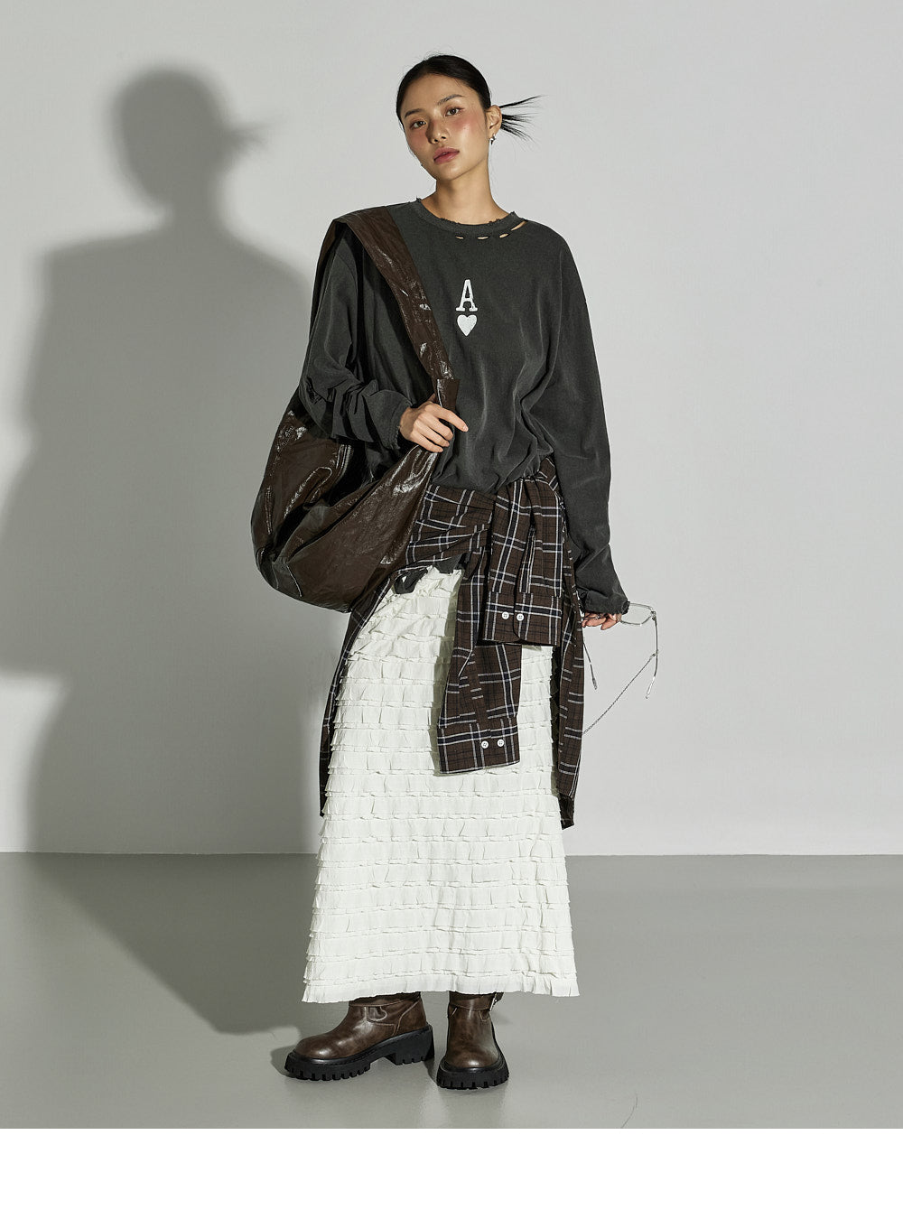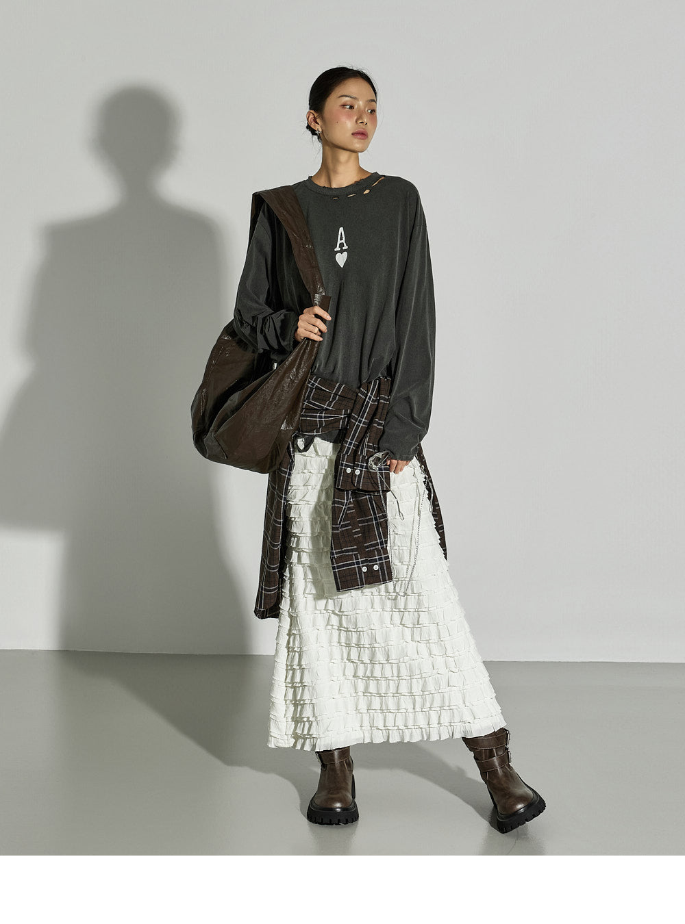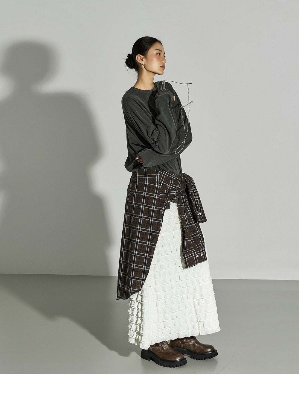This ruffled long skirt has a unique vibe.