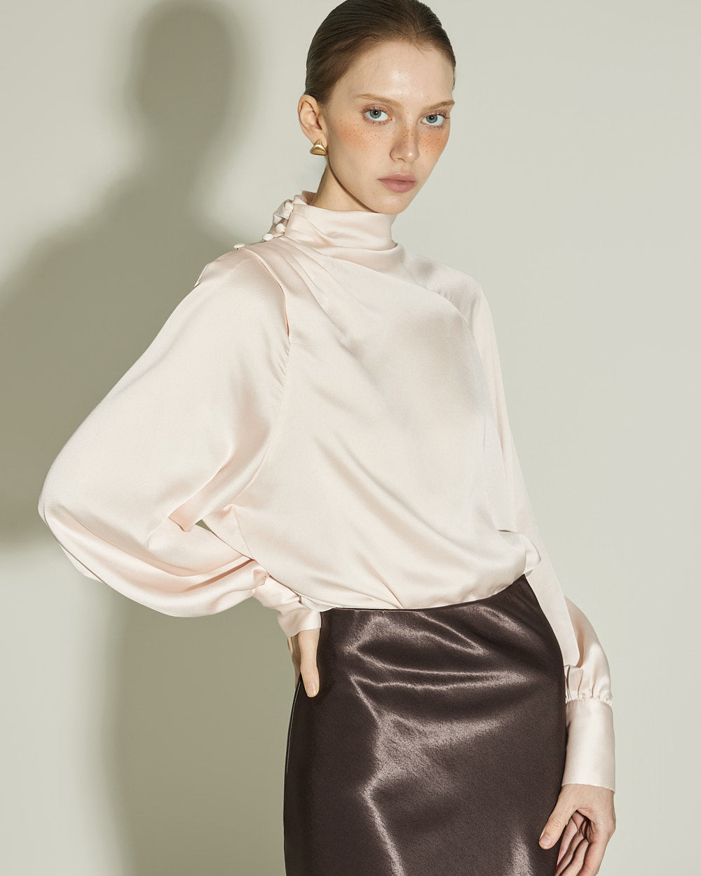 The 174cm model is wearing size ONE in DARK BROWN.