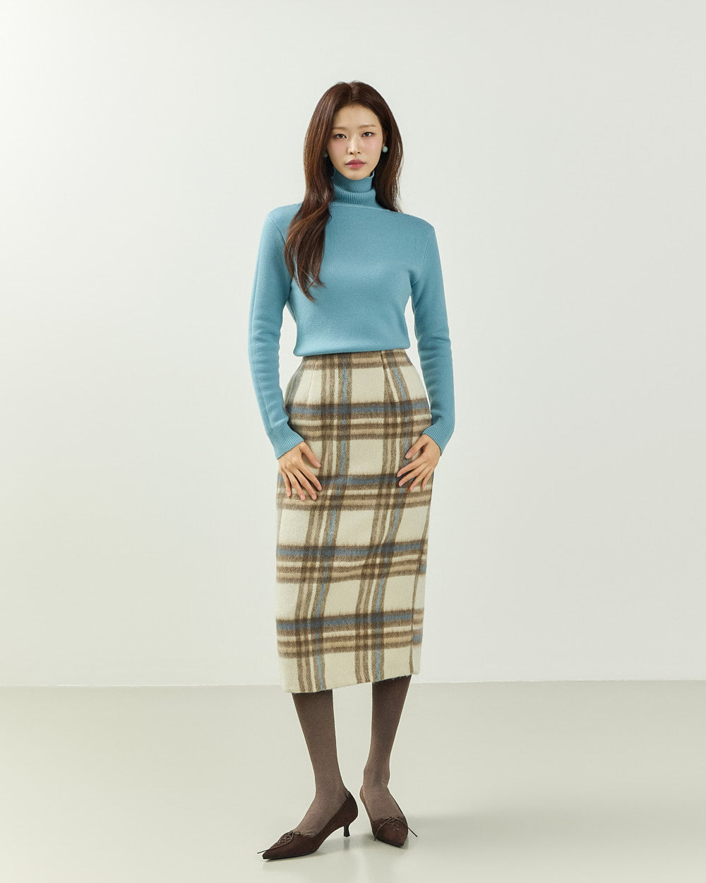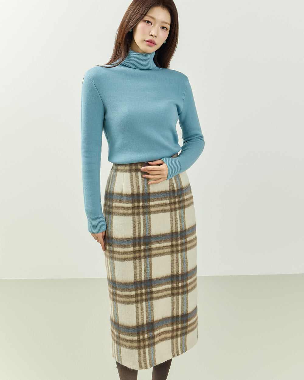 This classic check skirt exudes a casual vibe.