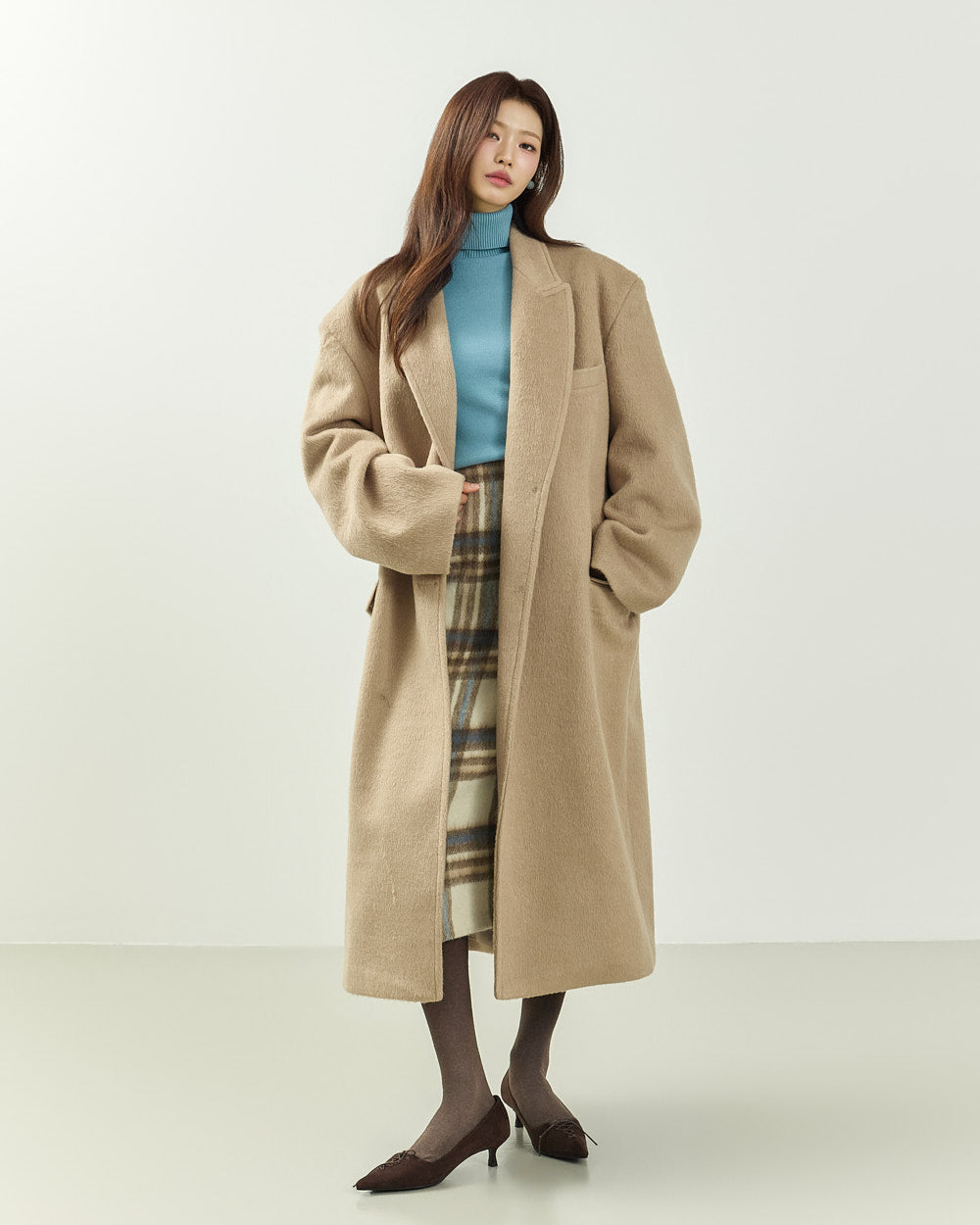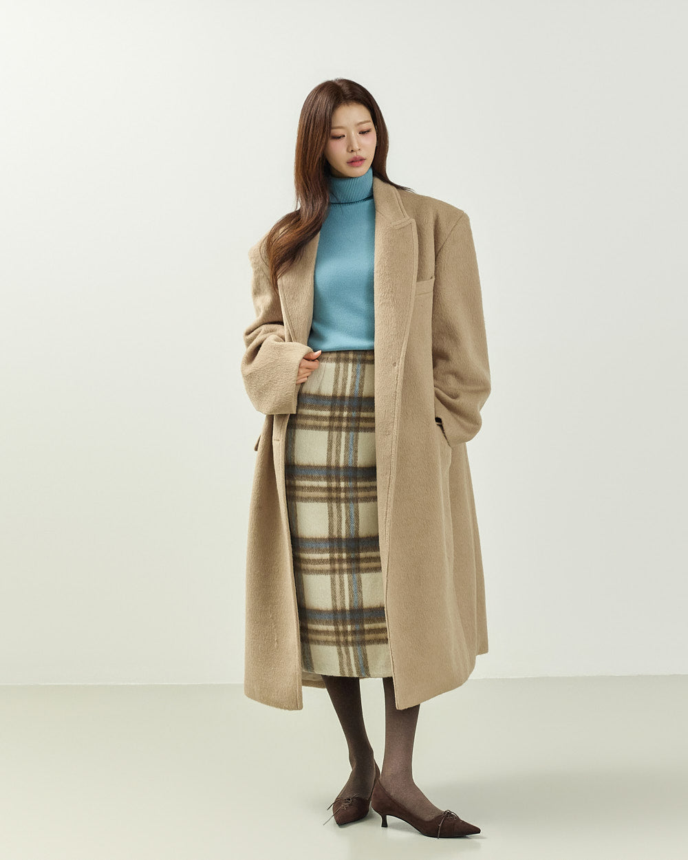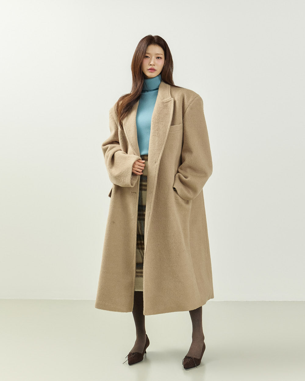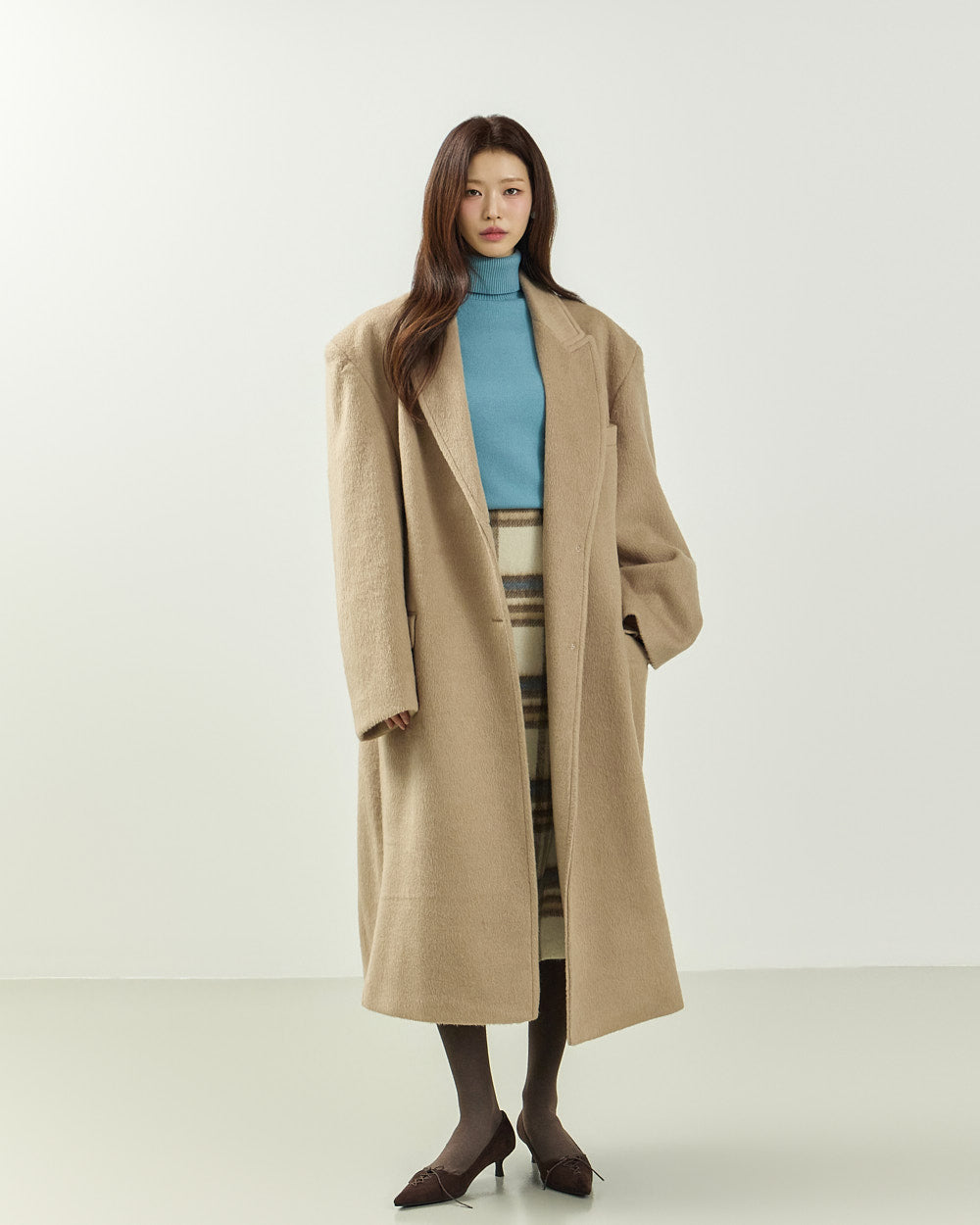 Model is 171cm tall and wearing size S in BEIGE.