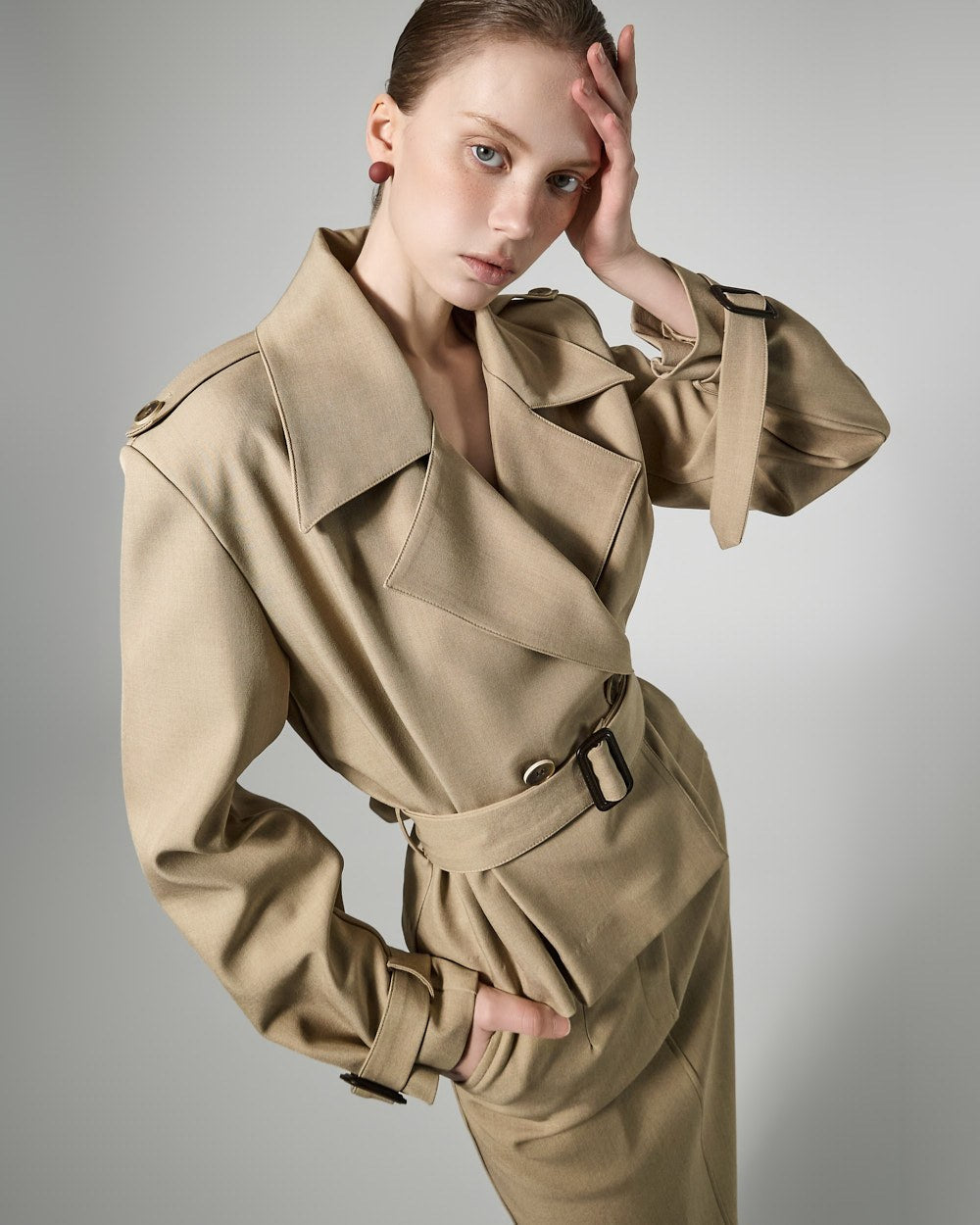 Model is 174cm tall and wearing size S in BEIGE.