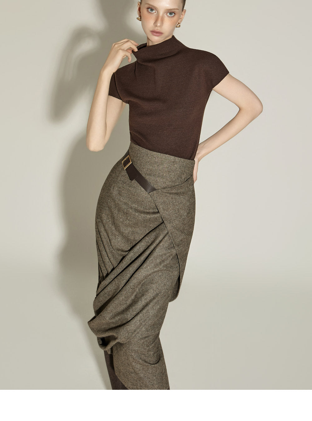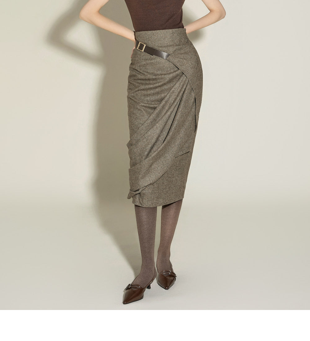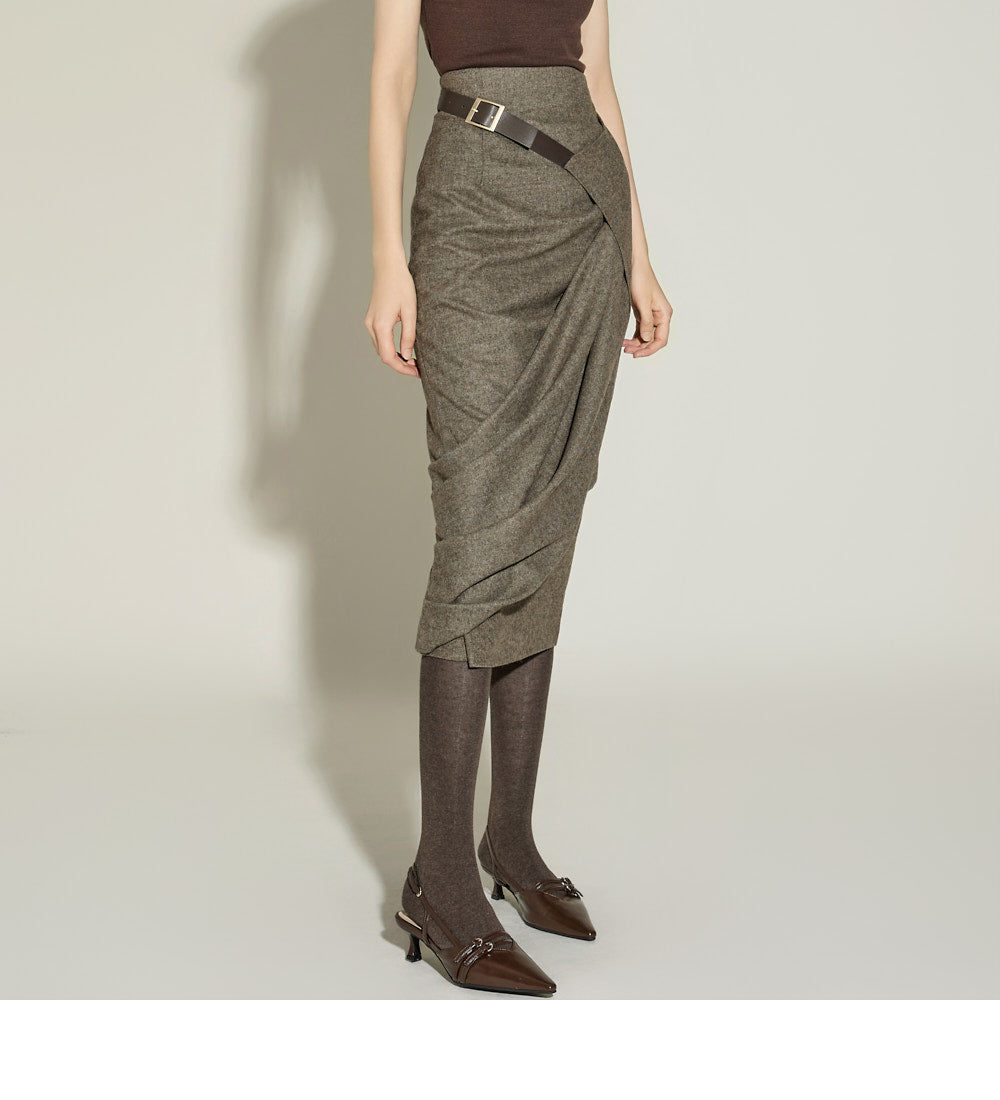 This elegant draped wrap belt skirt has a sophisticated feel.