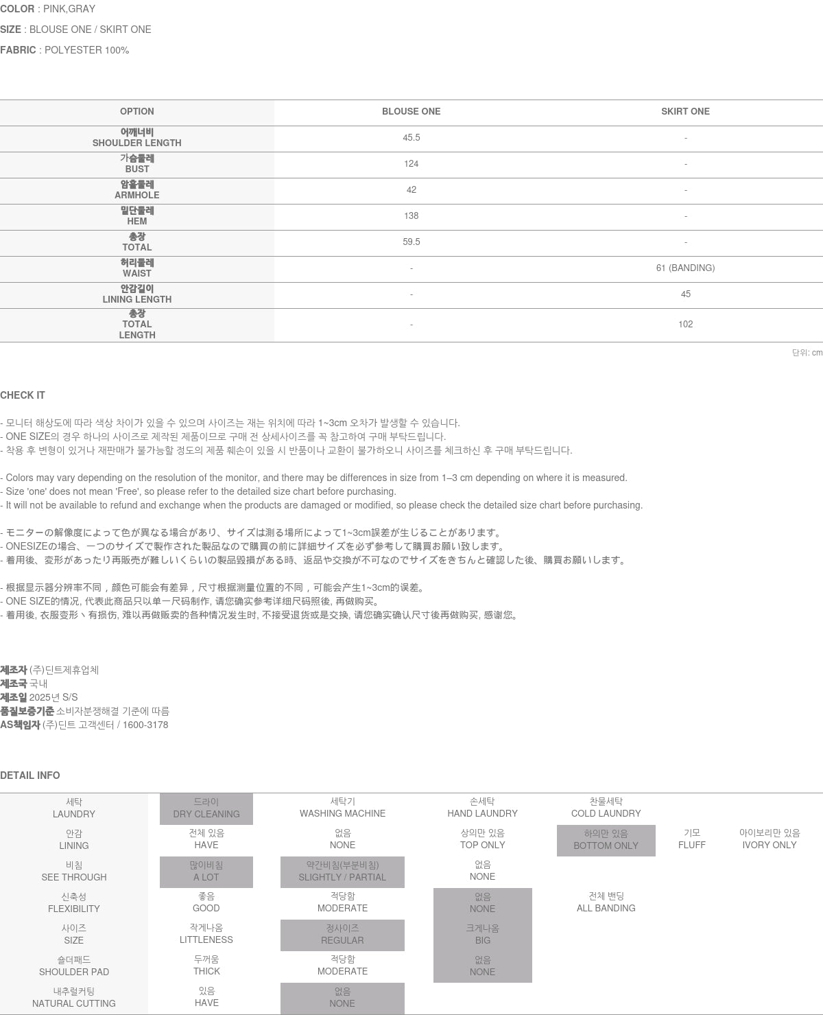 Clothing from DINT Co., Ltd. may become damaged or deformed if machine washed or tumble dried. We strongly recommend following the care instructions provided below.