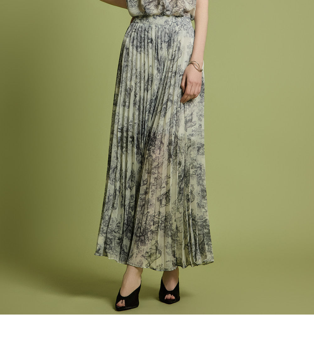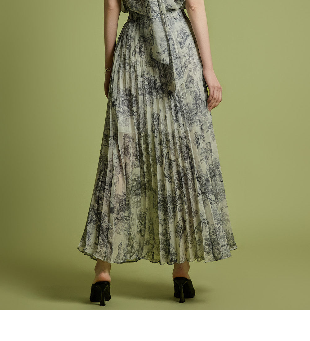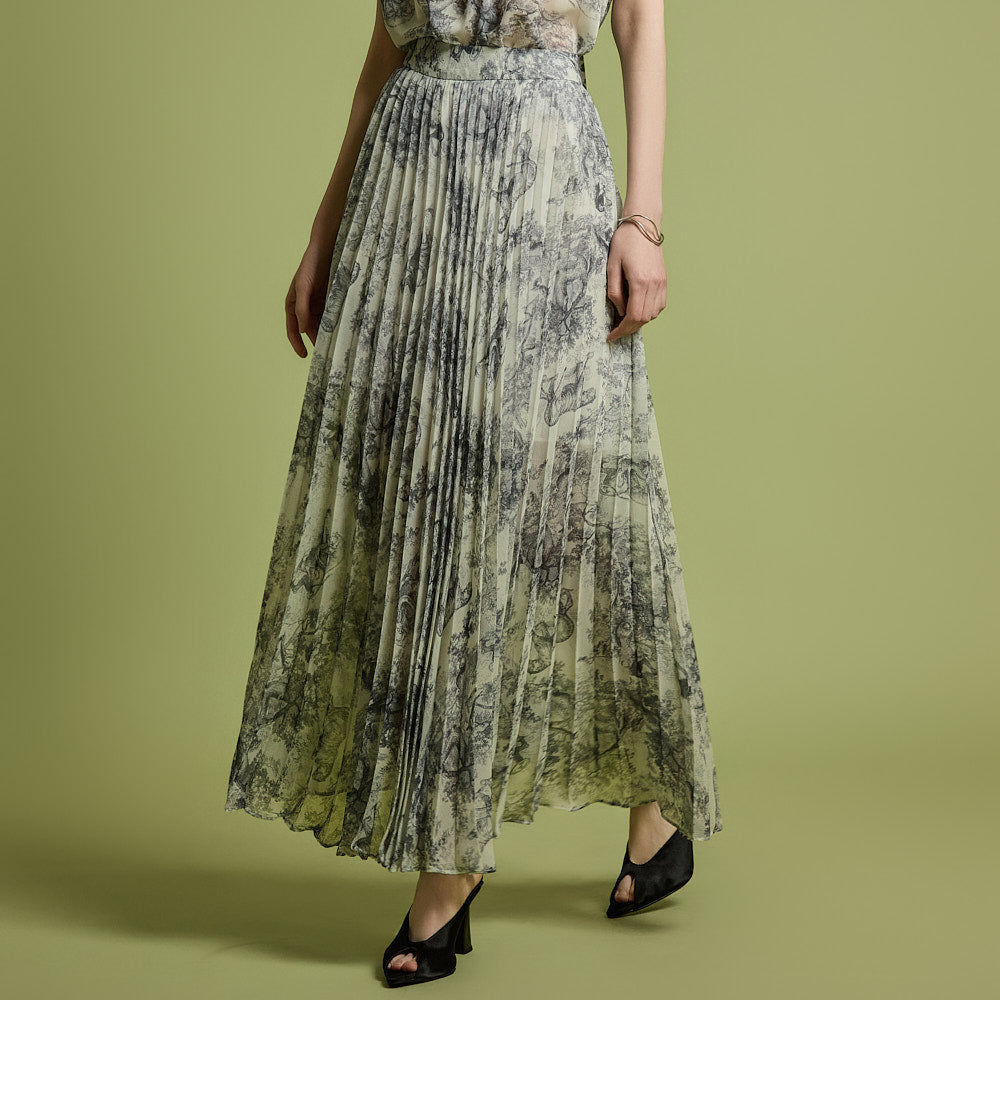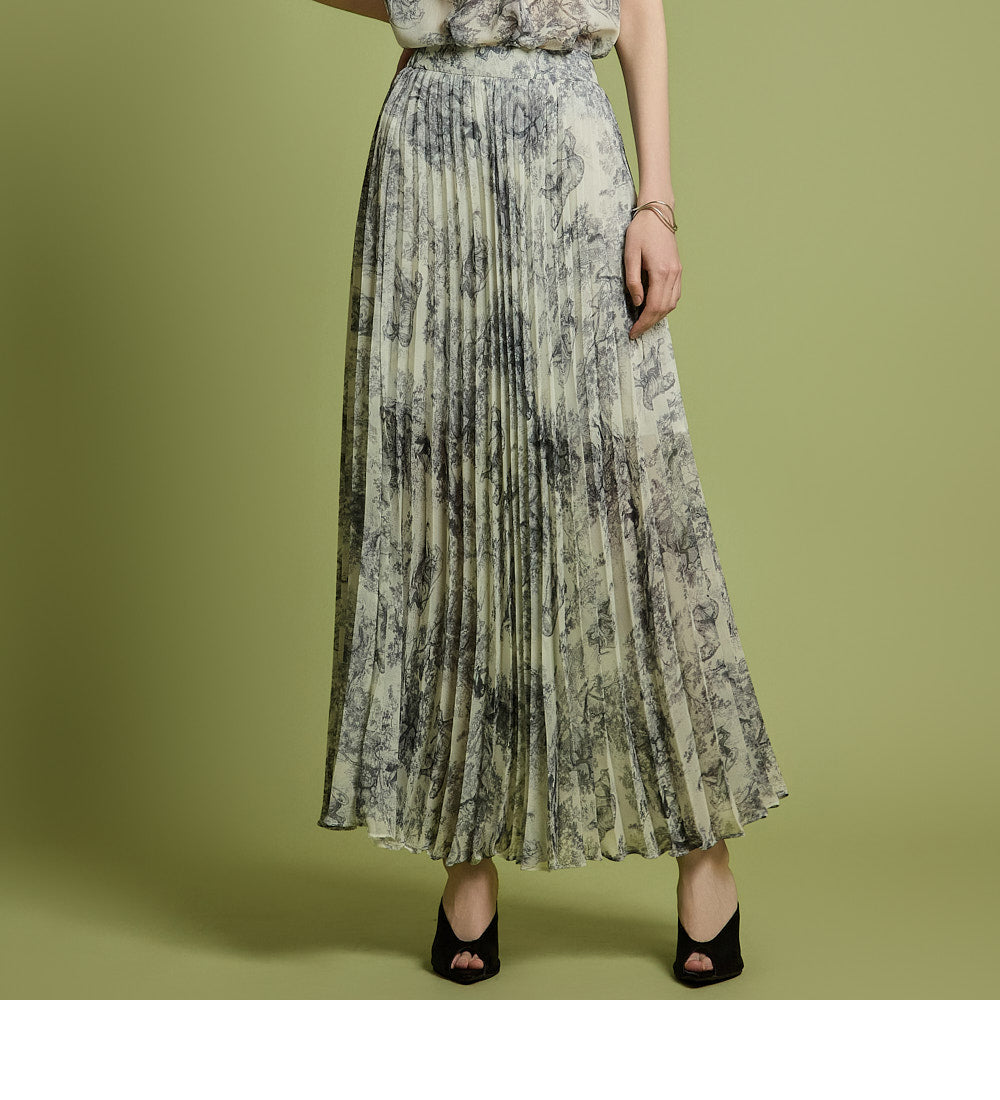 The skirt has a long pleated silhouette that creates a neat and elegant look,