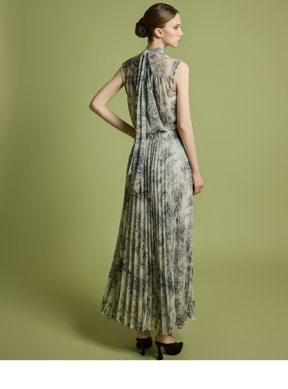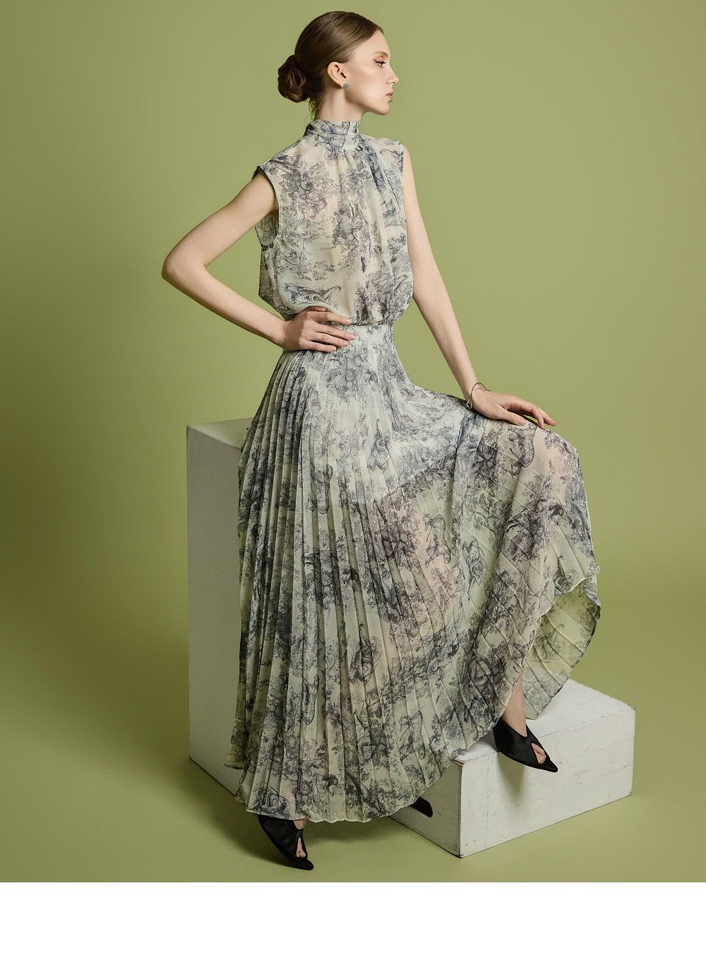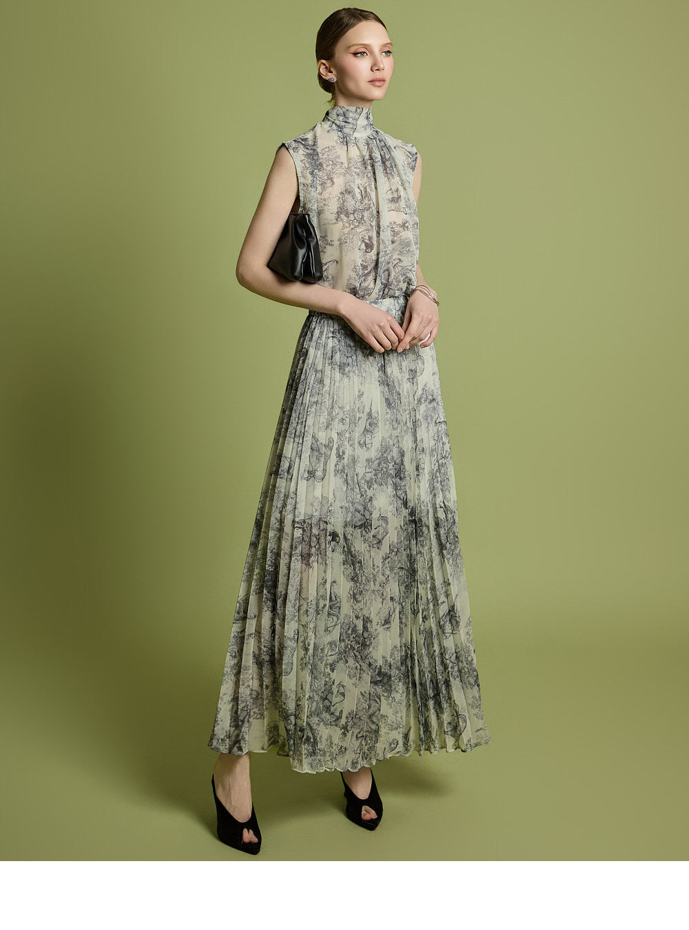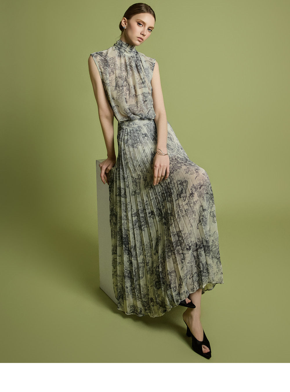 The skirt has a long pleated silhouette that creates a neat and elegant look,