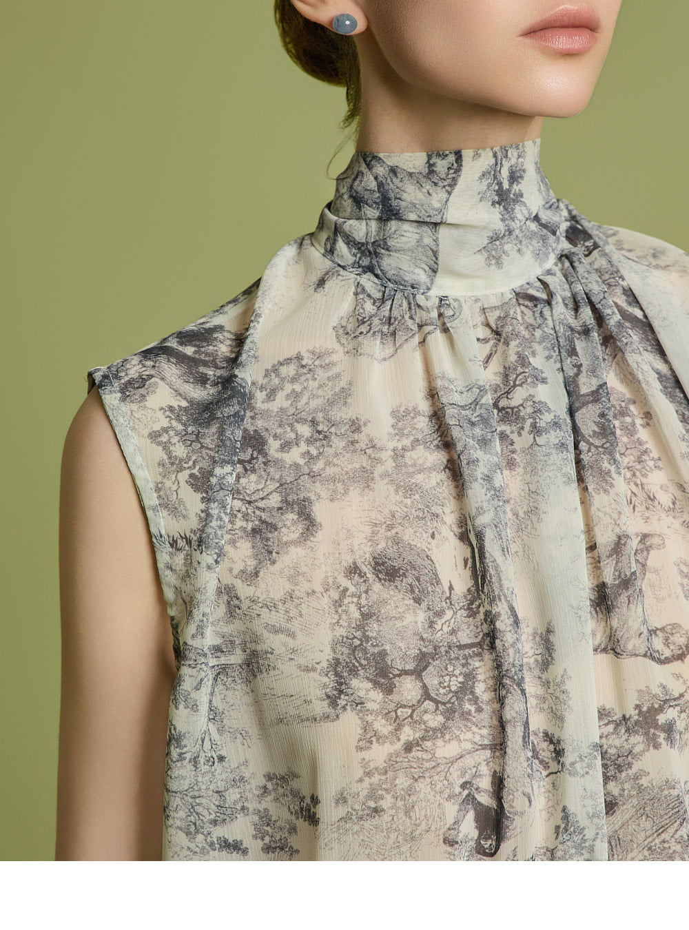 The blouse is made of 100% polyester, offering a light and flexible fit,